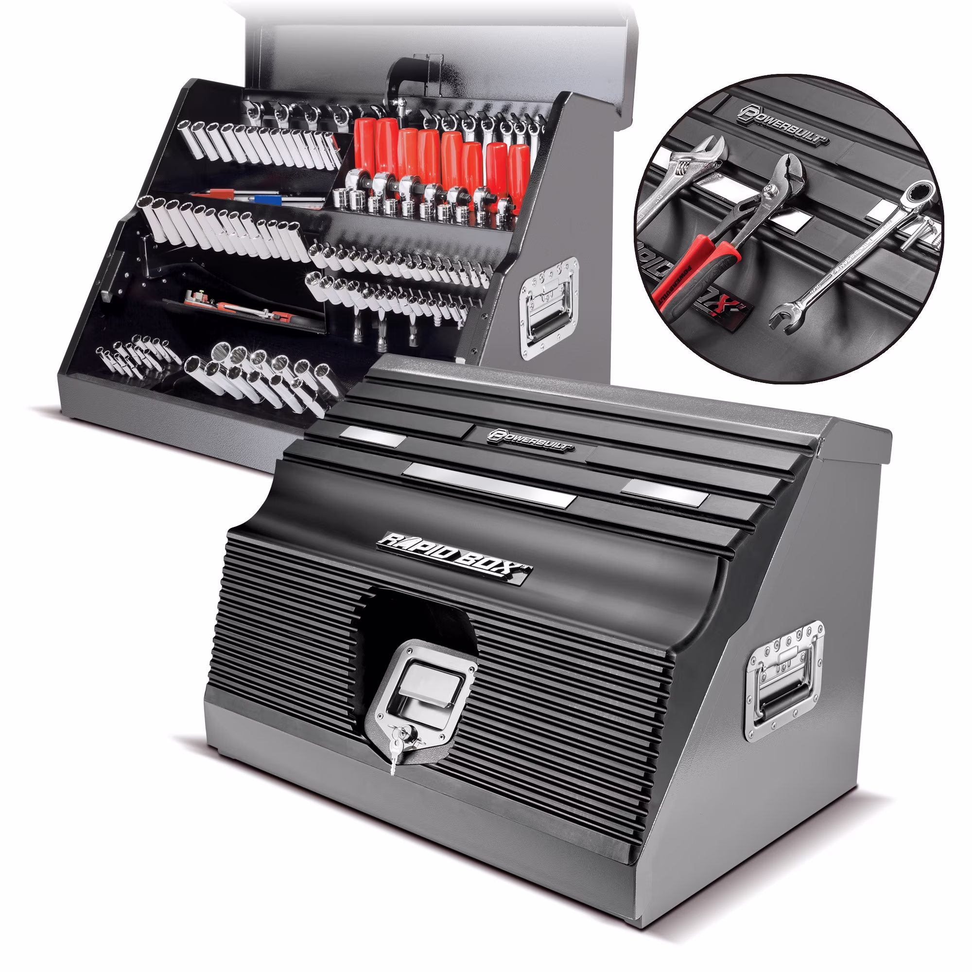 Powerbuilt 26 in Rapid Box Portable Slant Front Tool Box - Gray - 240111