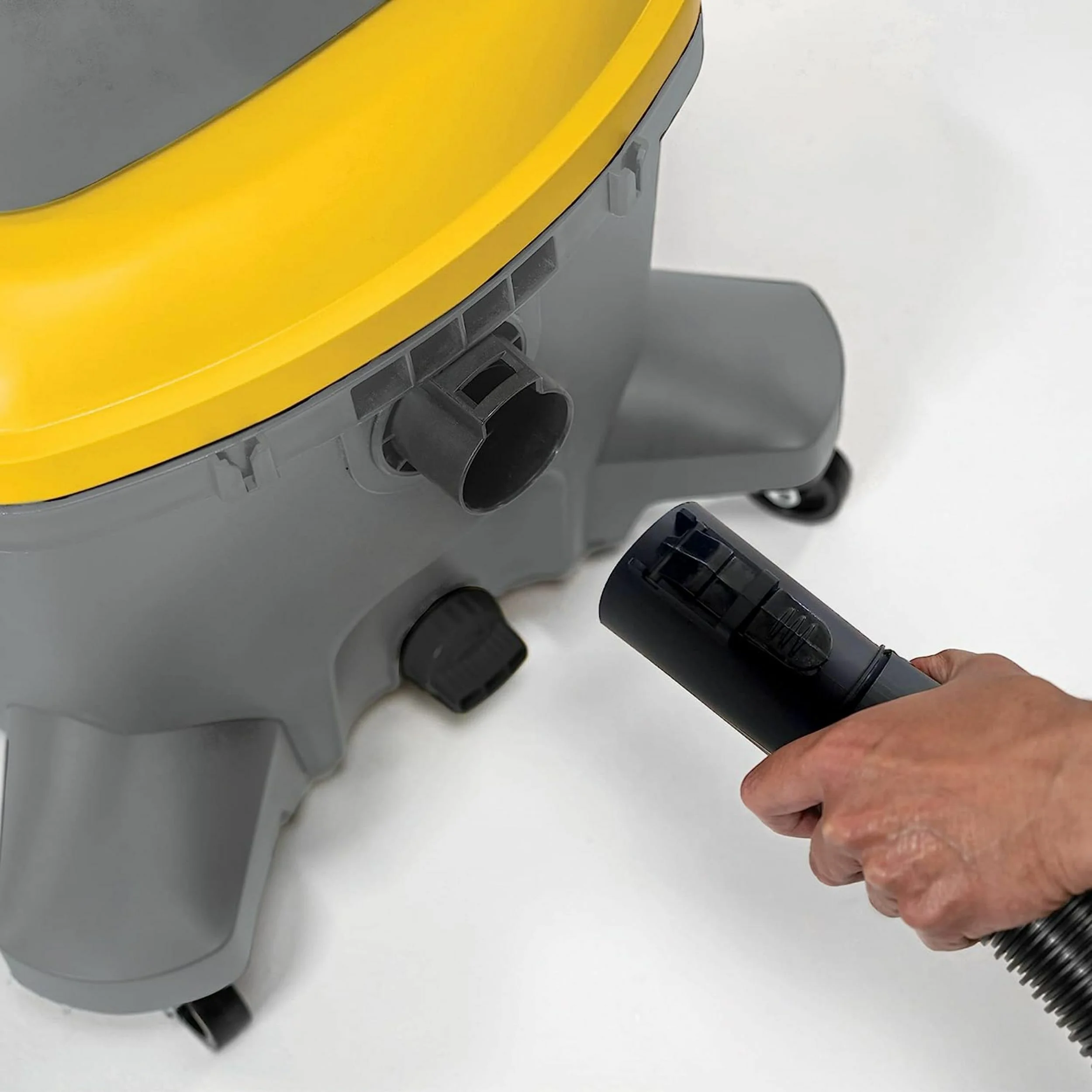 - Three-in-one shop vacuum sucks up dry, wet messes and easily converts into a blower mode