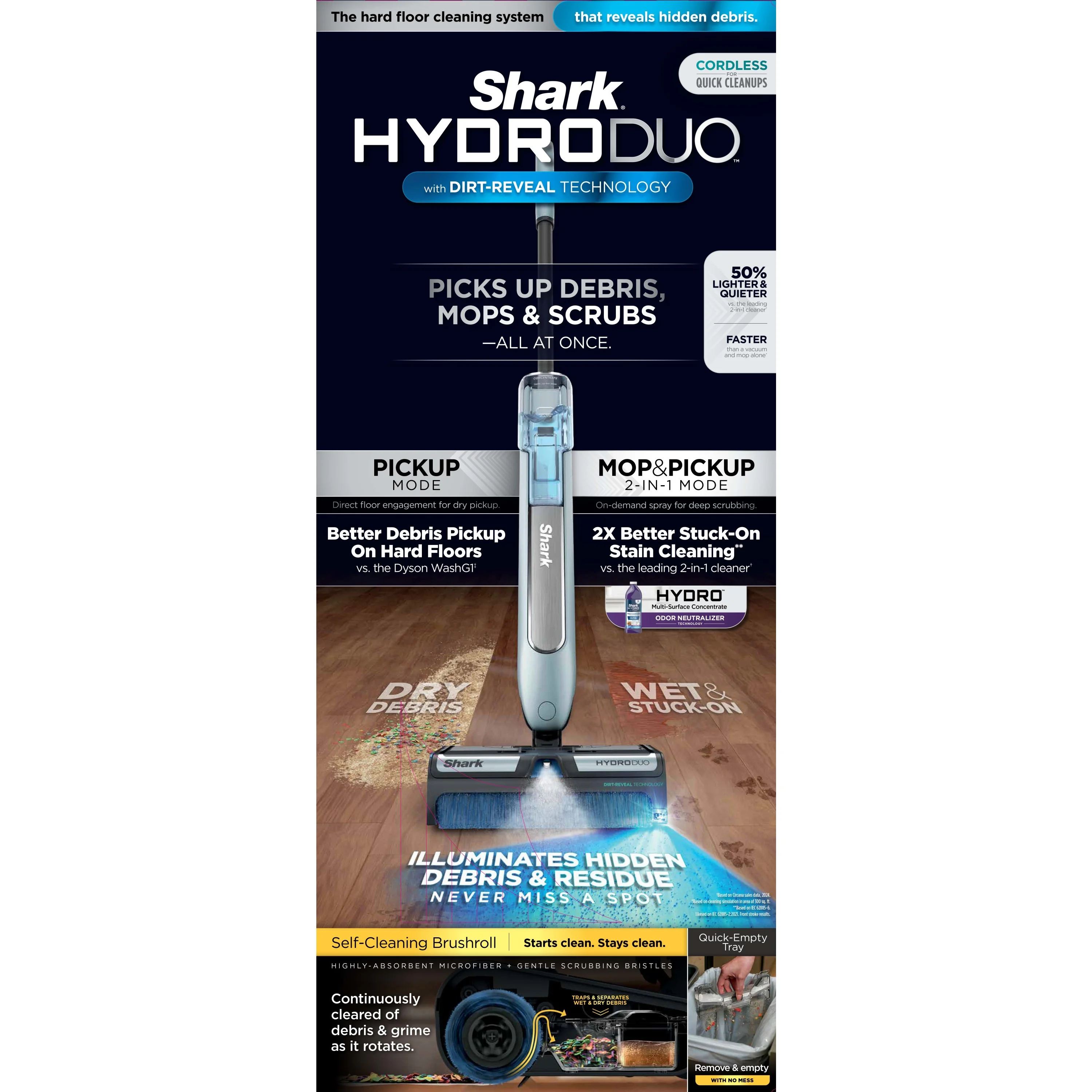 - DIRT-REVEAL TECHNOLOGY: Illuminates hidden debris and residue so you never miss a spot, for a more thorough and time-saving clean.
