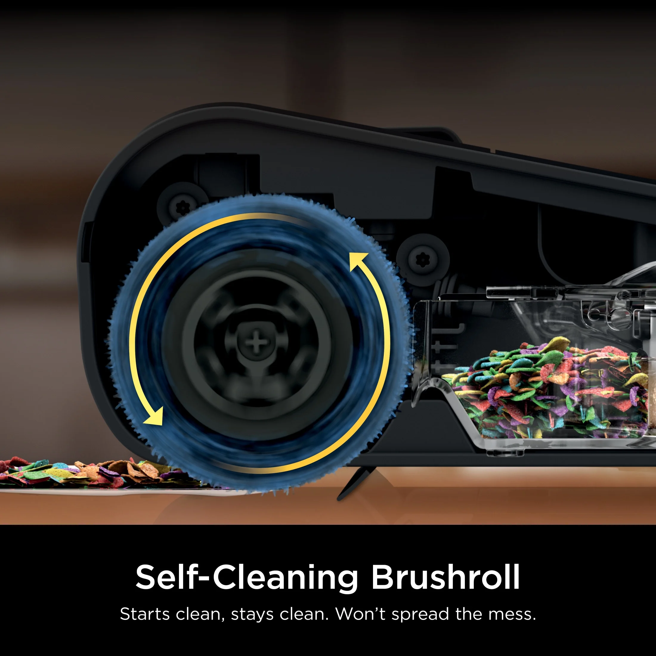 - STARTS CLEAN. STAYS CLEAN: Self-cleaning brushroll continuously clears itself of debris and grime as it rotates, so you never spread the mess.