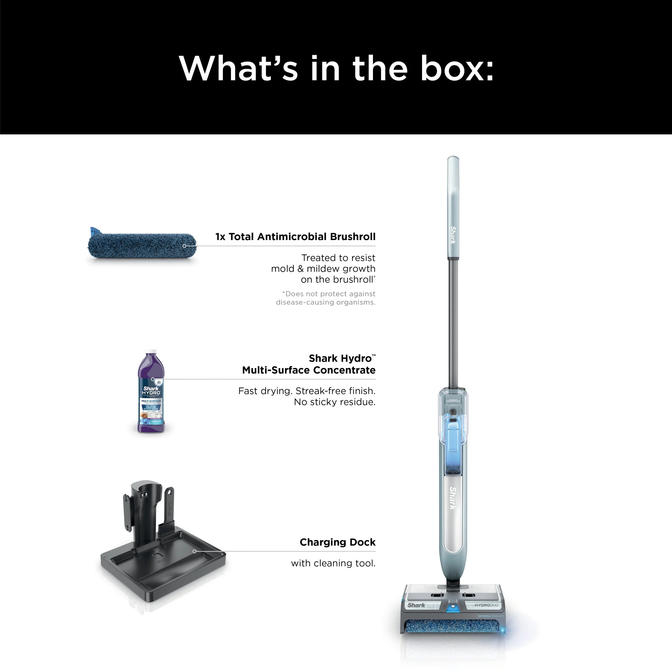 - REDUCES ODORS: Shark Hydro Multi-Surface Concentrate deep cleans and removes odors from hard floors. Fast drying. Streak-free. No sticky residue.