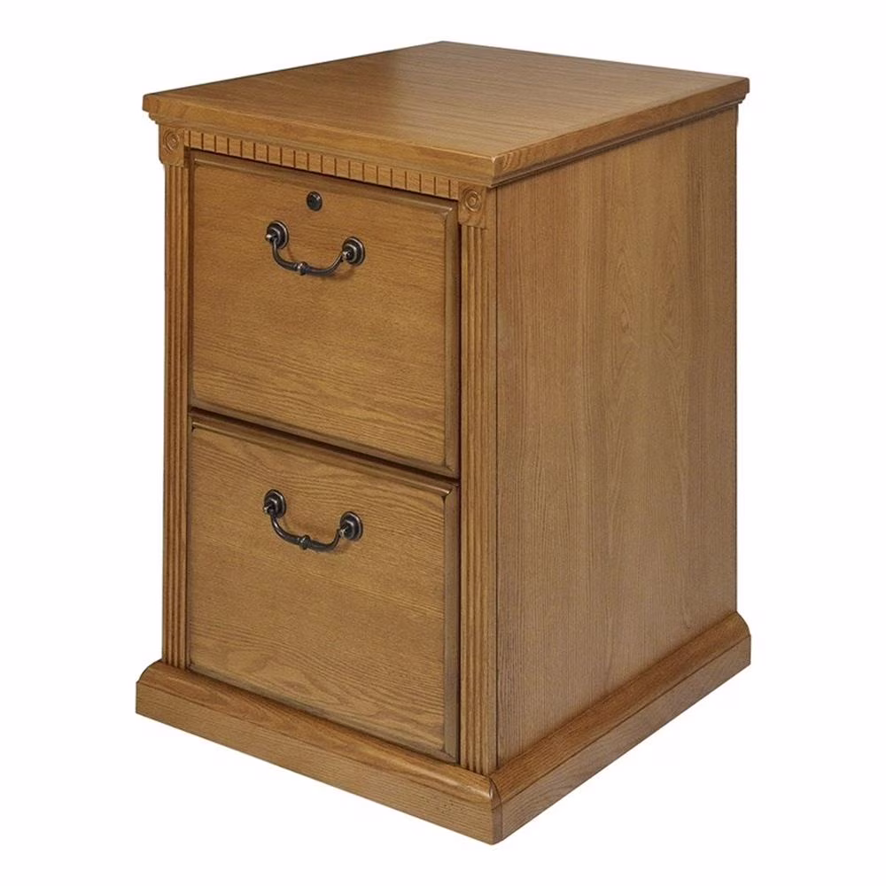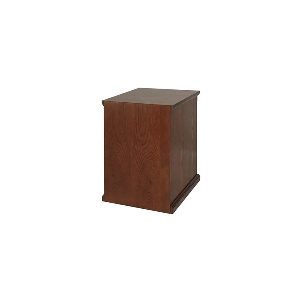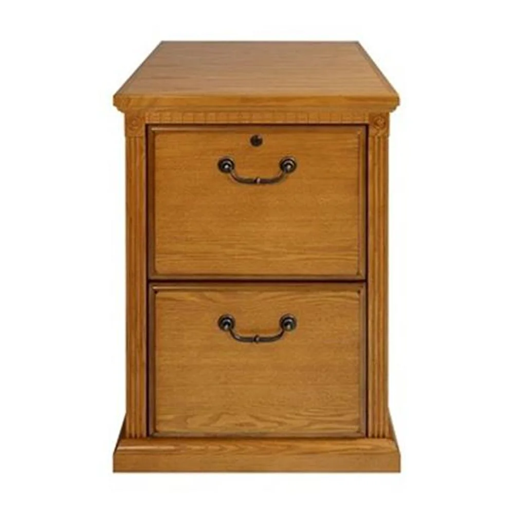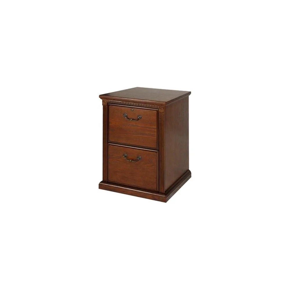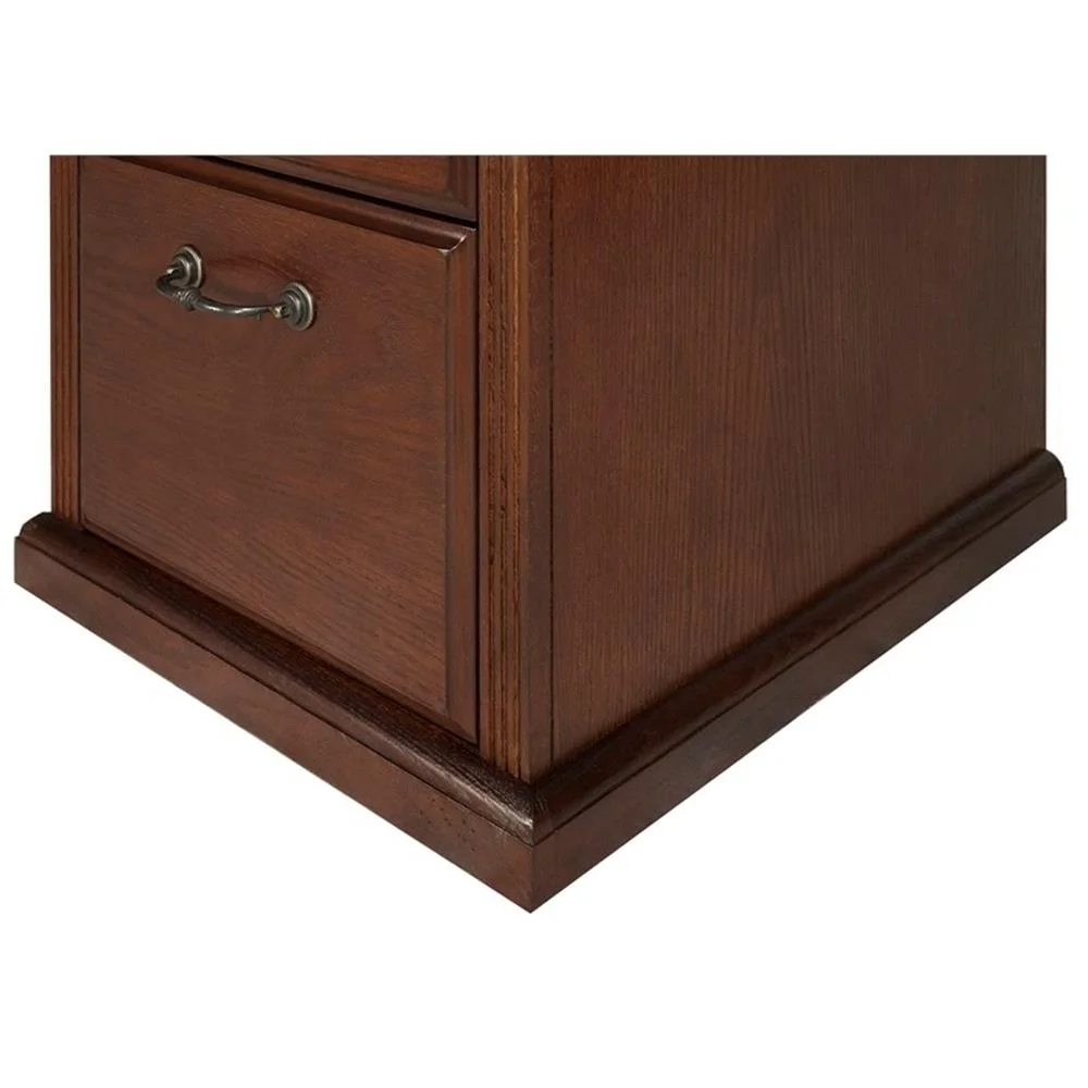 Huntington Oxford is a transitional furniture design built with hardwood solids and veneers. Vertical fluting and dentil molding add character and aesthetic appeal. The Huntington collection incorporates a highly detailed finish with hand-applied distressing. This distressing includes rasping, wear sanding, dry brushing and pin holes. Distressed elements create texture and depth and create the worn appearance of fine furniture that has withstood the test of time Hand applied distressing also makes each item unique and like no other. Huntington Oxford is a great addition to any home and will surely last for generations to come. The brown file cabinet includes two letter-sized drawers and the top drawer locks for extra security. Arrives fully assembled.