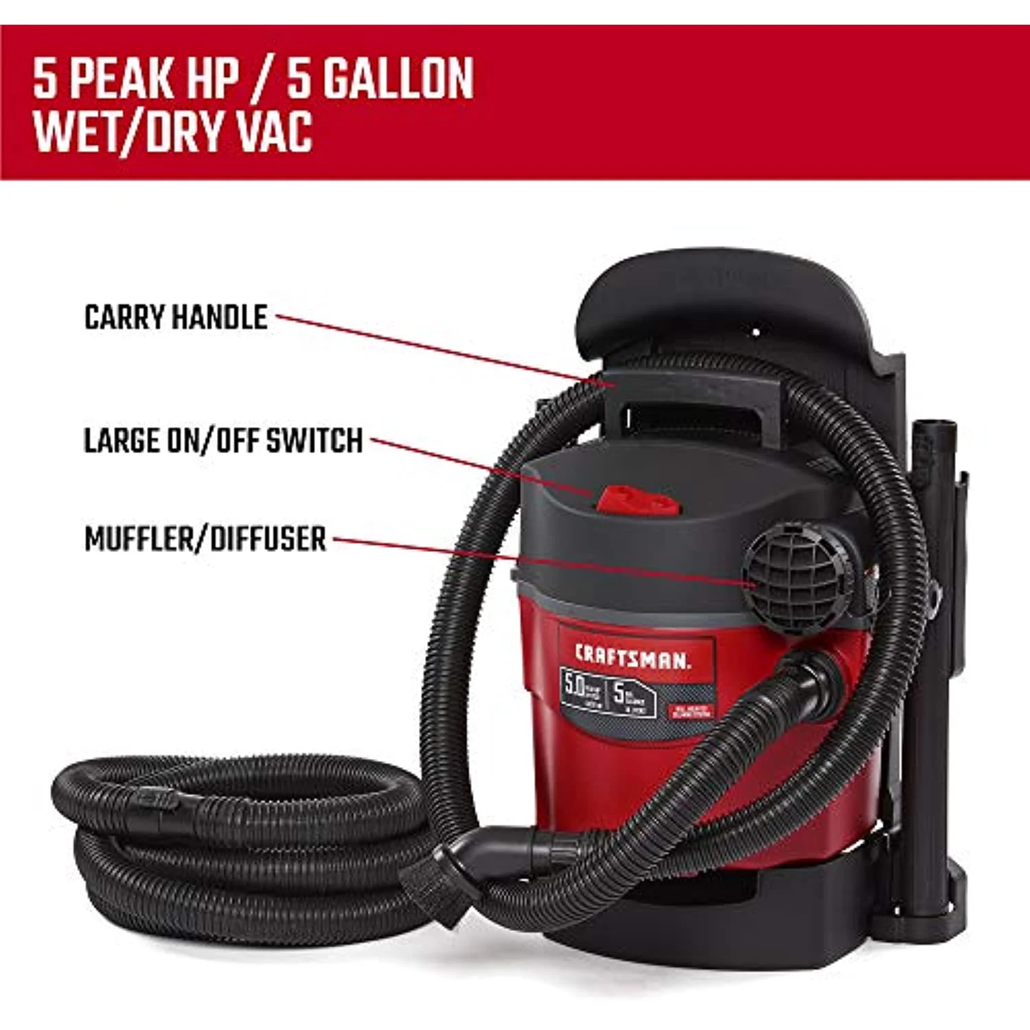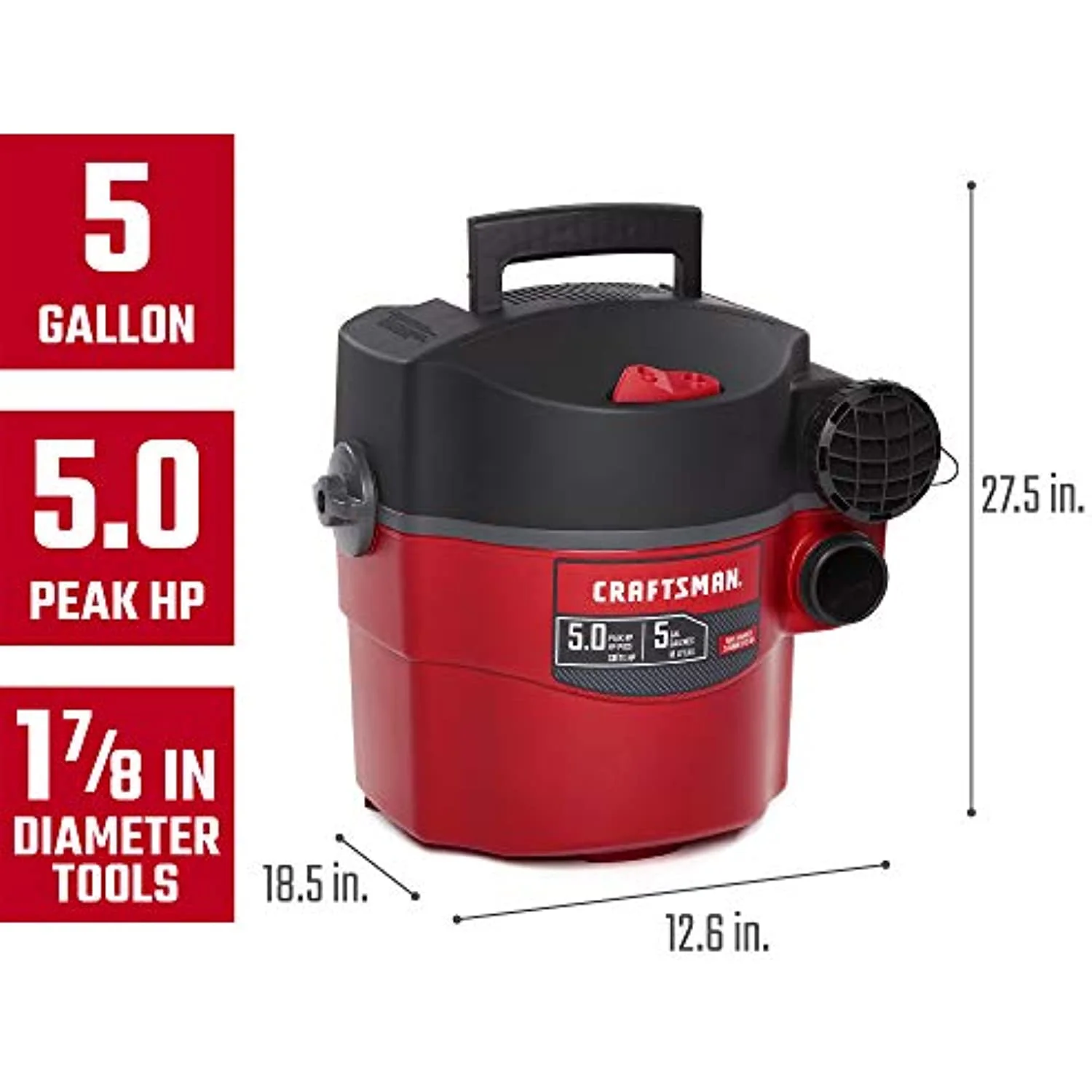 - POWERFUL PERFORMANCE: 5.0 Peak HP provides the power of a large shop vacuum in a small package