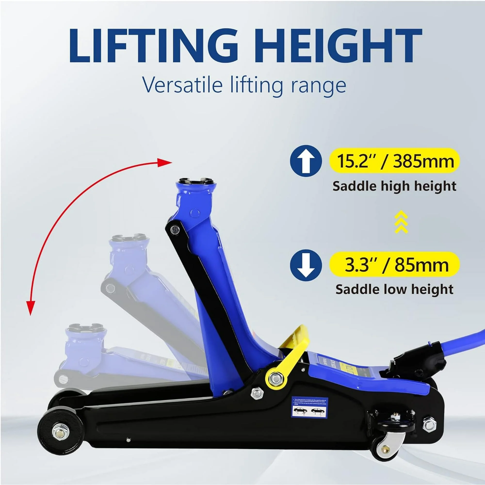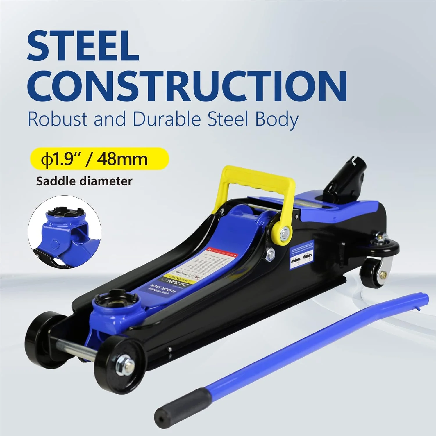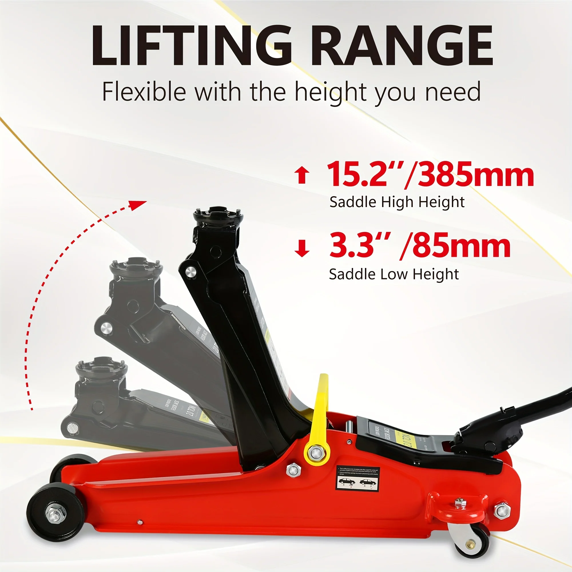 POVANLI Floor Jack, 2 Ton Low Profile Floor Jack, 3t Jack Stand Tire Repair Kit Heavy Duty Steel Racing Floor Jack with Single Piston Quick Lift Pump, Floor Jack Lifting Range 3.3" - 15.2"