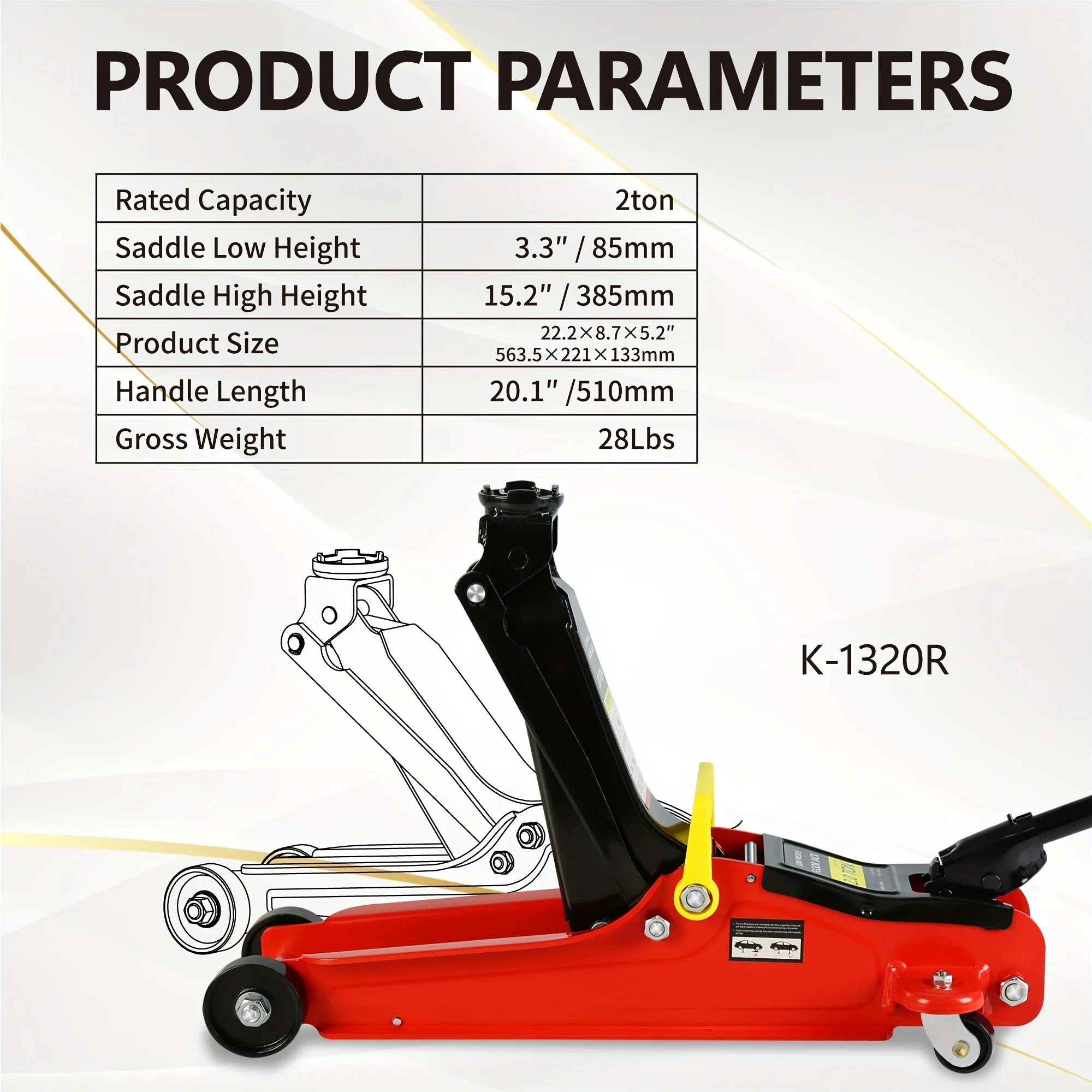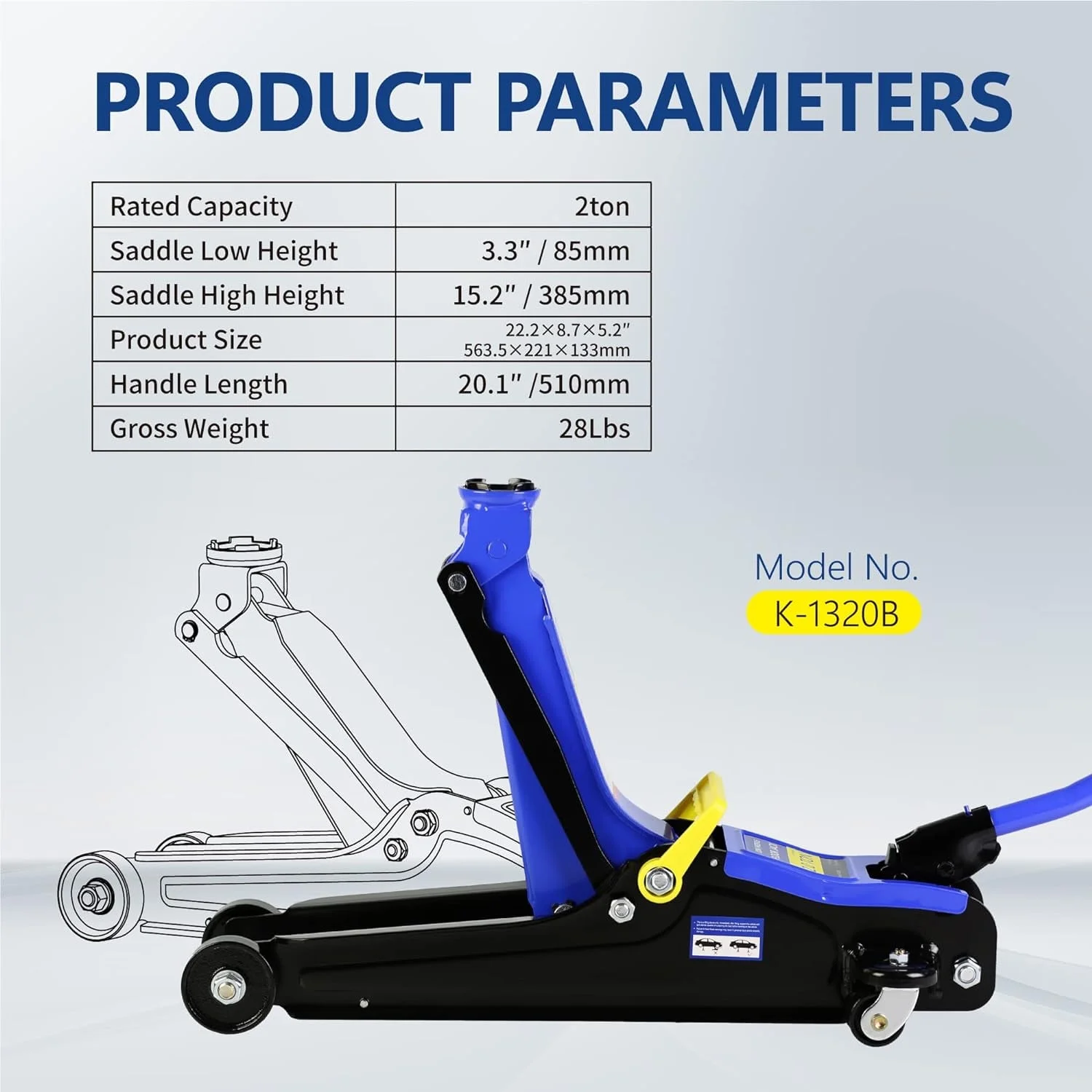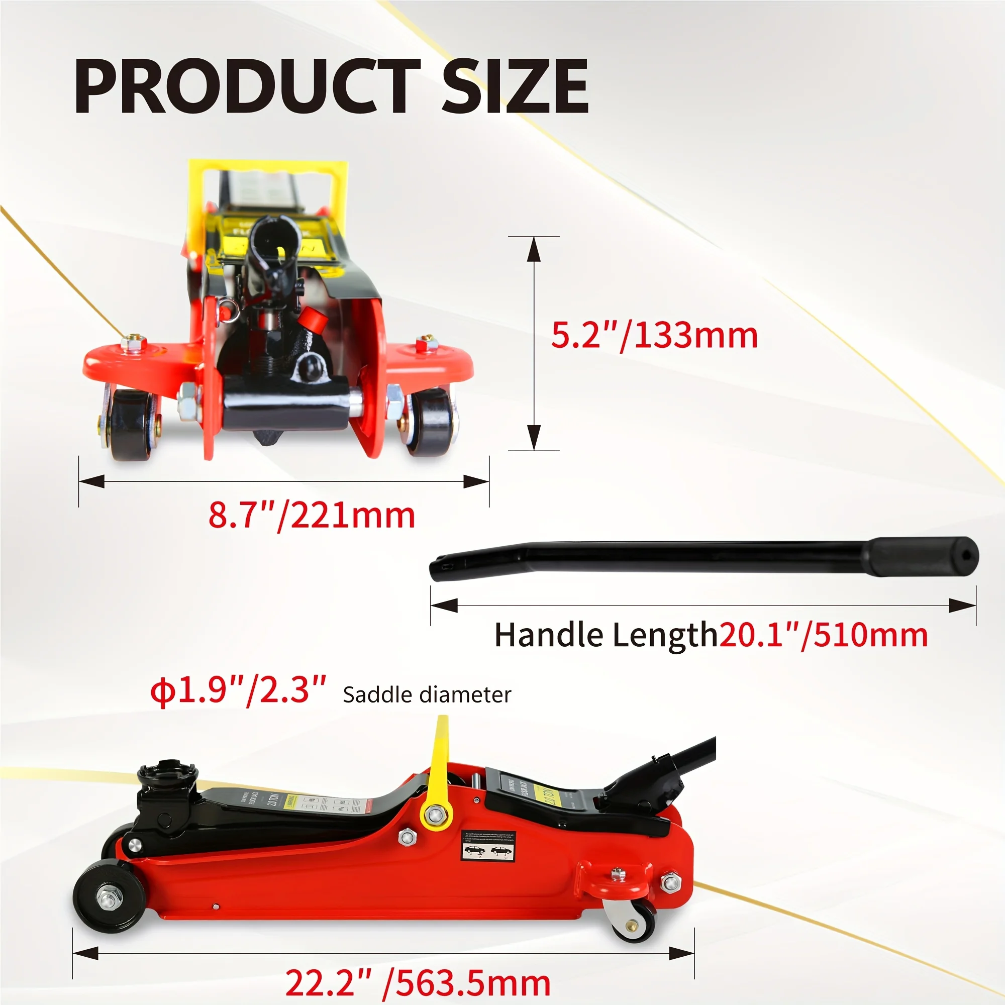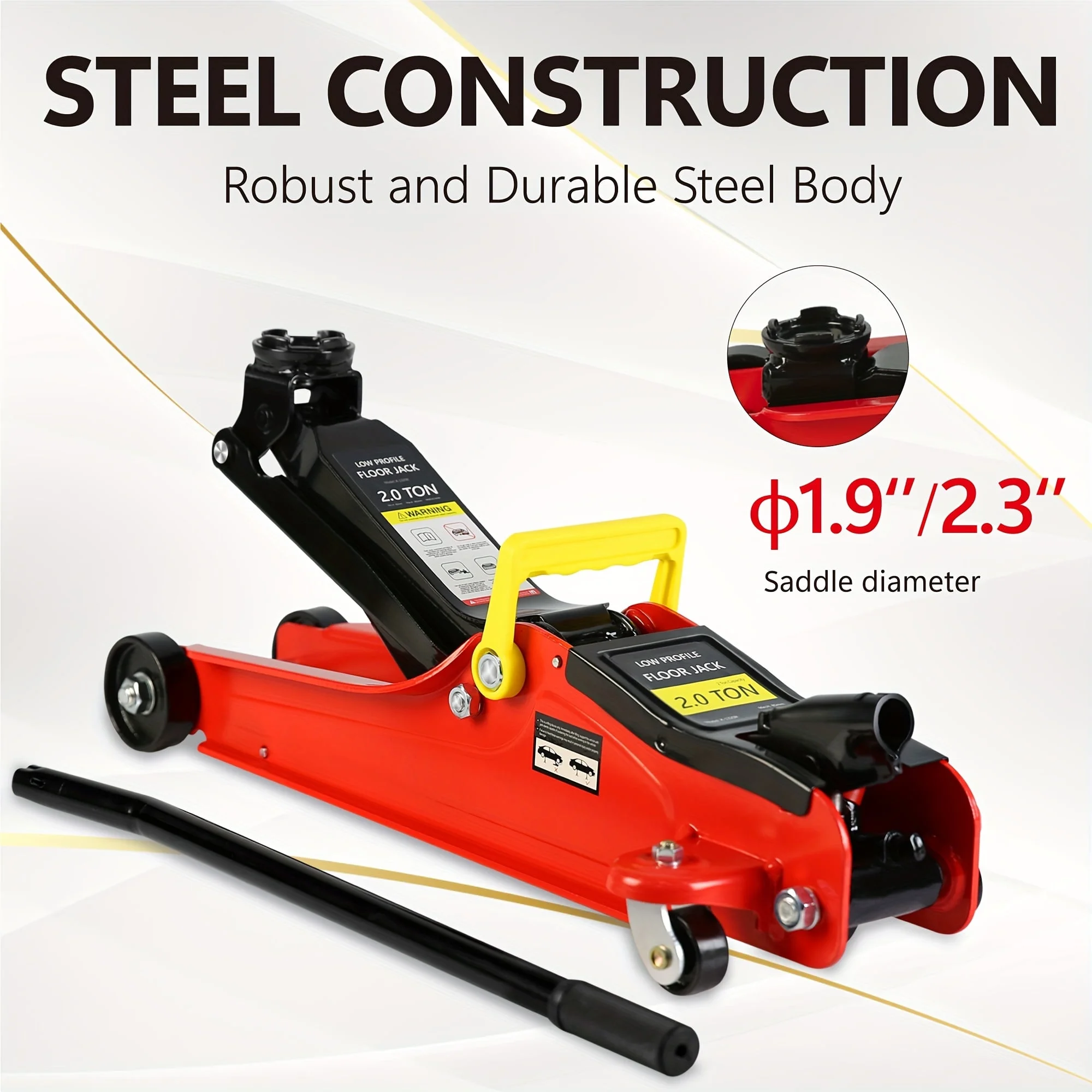 POVANLI Floor Jack, 2 Ton Low Profile Floor Jack, 3t Jack Stand Tire Repair Kit Heavy Duty Steel Racing Floor Jack with Single Piston Quick Lift Pump, Floor Jack Lifting Range 3.3" - 15.2"