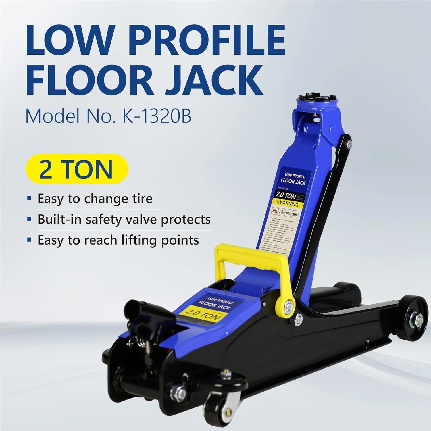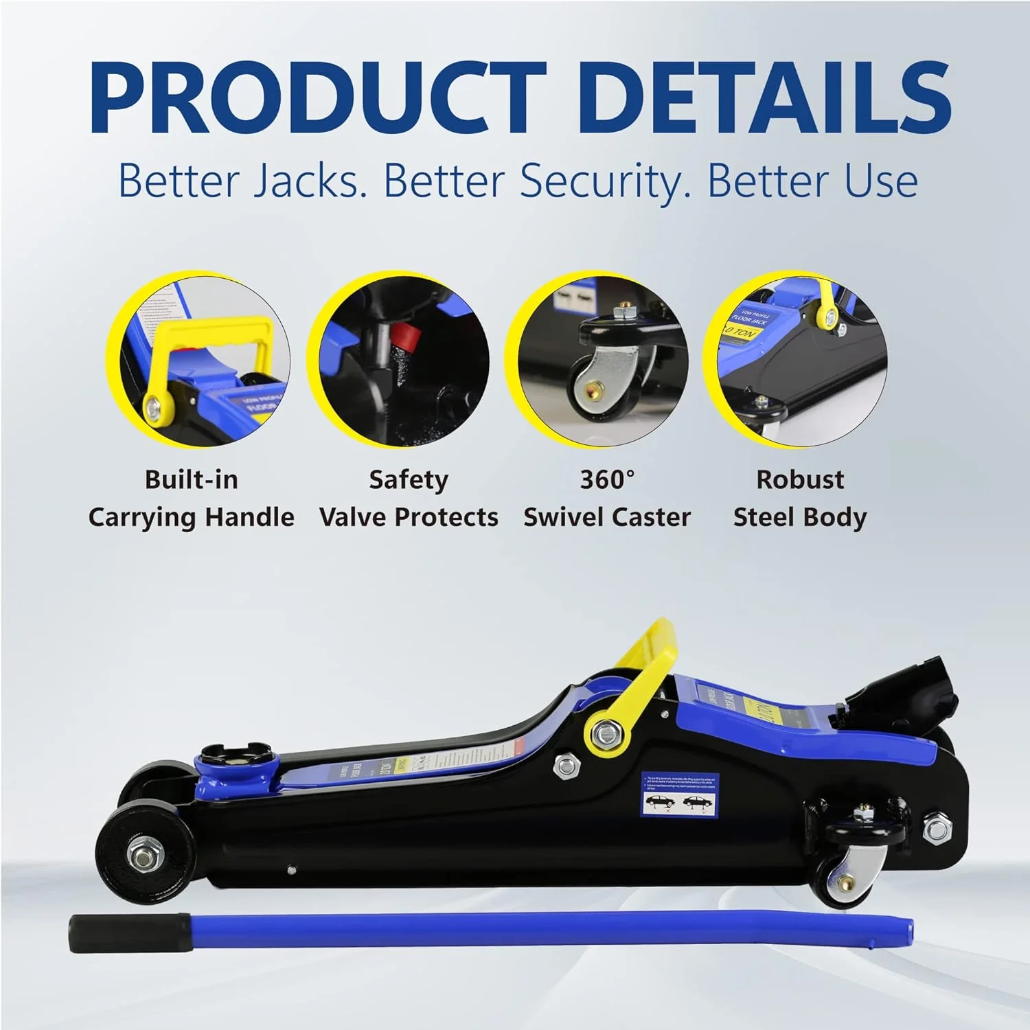 POVANLI Floor Jack, 2 Ton Low Profile Floor Jack, 3t jack stand Tire Repair Kit Heavy Duty Steel Racing Floor Jack with Single Piston Quick Lift Pump, Floor Jack Lifting Range 3.3"-15.2"