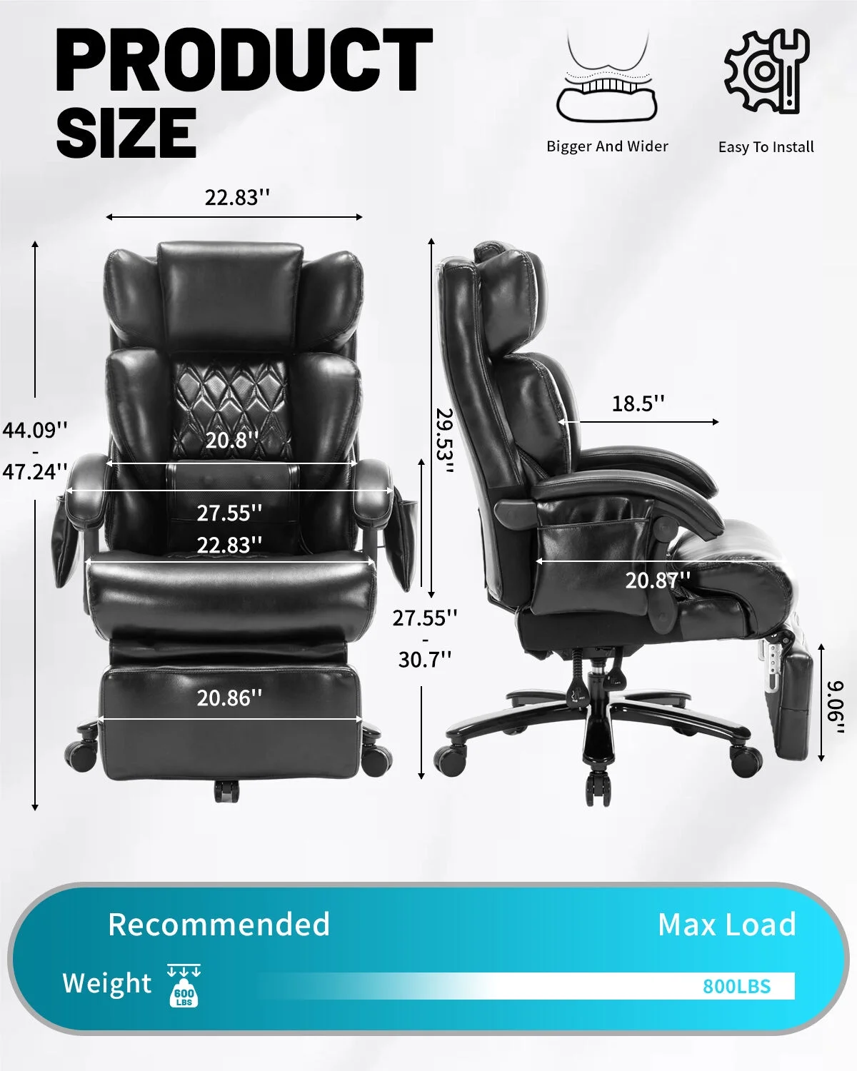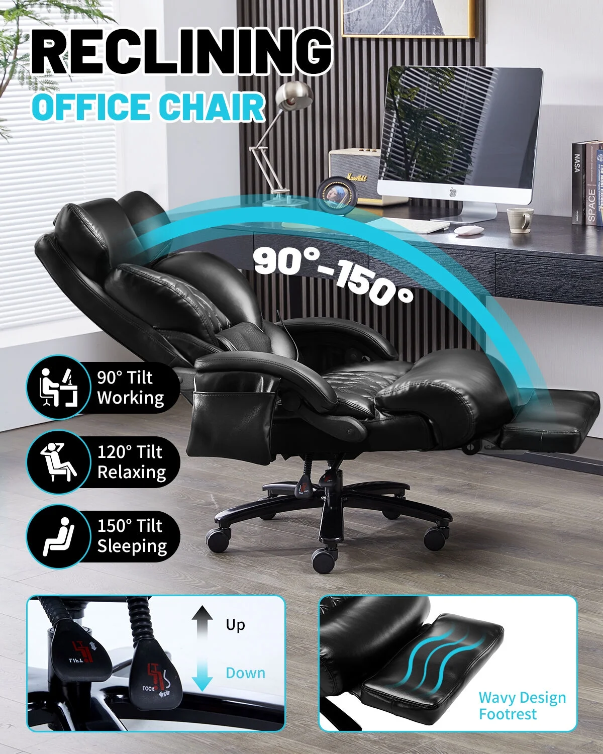 - ??��Durable and Sturdy Desk Chair��This heavy-duty executive office chair boasts a strong metal base that supports up to 800 lbs, perfect for larger individuals. Certified by SGS for its reliable gas-lift mechanism with a 3" height range, it also features smooth, quiet casters, ensuring effortless mobility.??��Work, Study, Or Play In Max Comfort��Need a comfortable desk chair for the office or an ergonomic gaming chair for home? Our home office chair is exactly what you need. It is made of soft, breathable PU leather that prevents sweating, stronger abrasion and scratch resistance; the breathable PU leather resists peeling over time and feels softer. Easily cleaned with just a damp cloth.