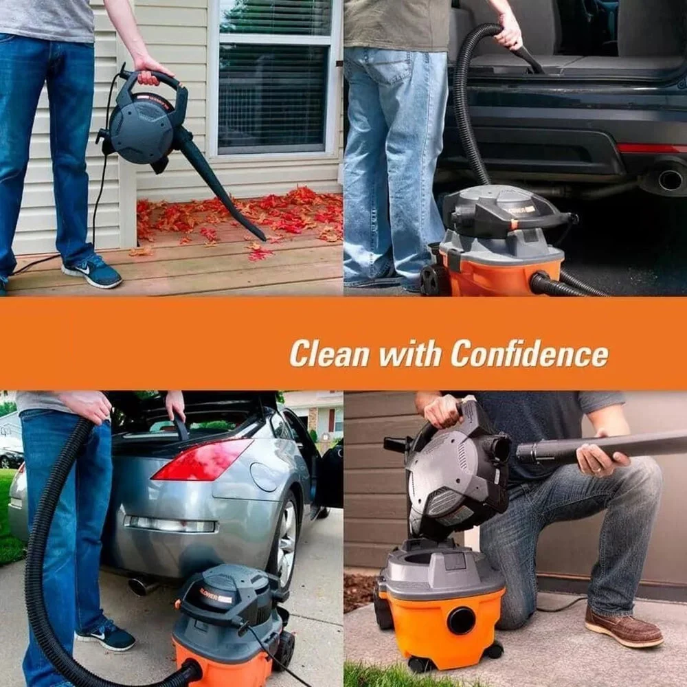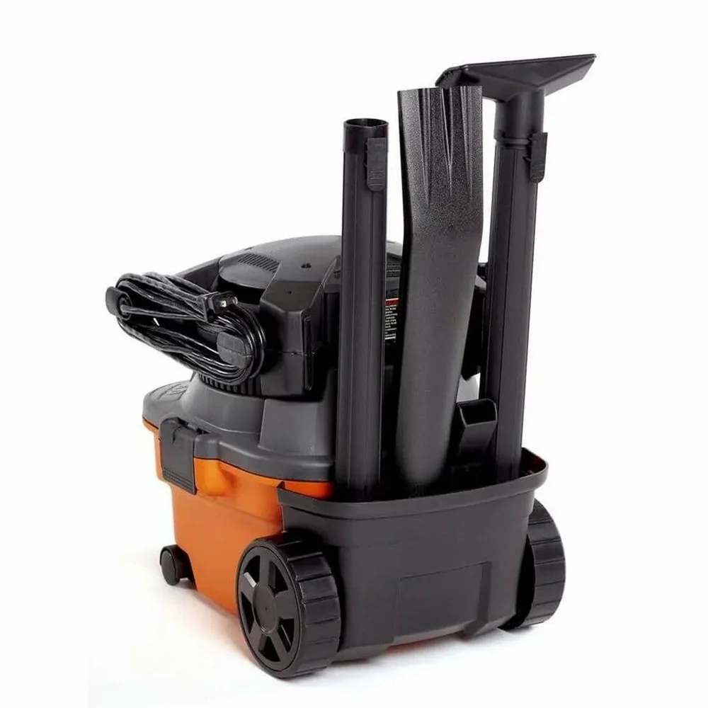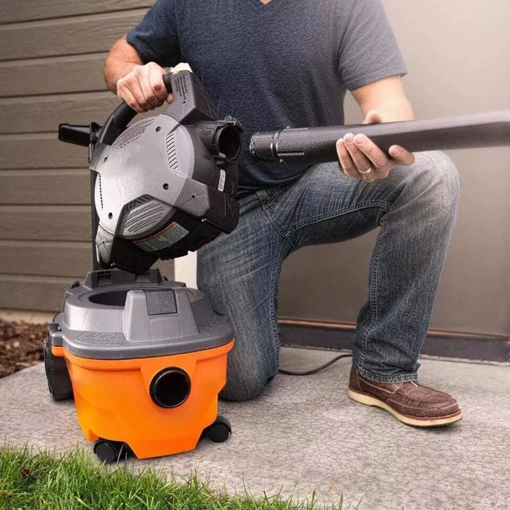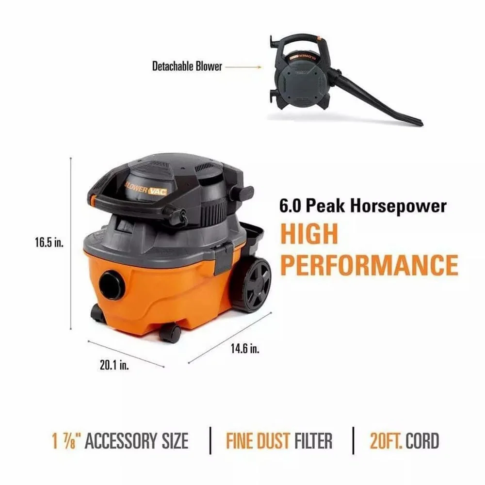 The RIDGID 4 Gallon 6.0 Peak Horsepower Wet Dry Shop Vacuum with Detachable Blower is a multi-functional tool that combines portable power and a handheld blower. This compact powerhouse packs a heavy duty 6.0 peak horsepower rated motor to tackle even the messiest jobs. This vac also includes shop vac attachments to customize to the job �C 2 extension wands, utility nozzle, car nozzle, and blower wand. Extension wand attachments extend reach, utility nozzle cleans large areas and car nozzle helps with detail cleaning of carpet. The power head of the wet dry vacuum detaches and quickly converts into a handheld blower with the locking wand that outperforms most dedicated leaf blowers �C making it a perfect outdoor companion. To protect motor and to help extend vacuum life, the included RIDGID wet dry vacuum fine dust filter (VF3500) traps fine powders and mold. The quick-release cord wrap lets you spend less time unwrapping the 20 ft. cord and more time on the job, while the caddy conveniently keeps your accessories and the hose close at hand. It is 2 incredible tools in one. Pro Tip: RIDGID offers a variety of replacement shop vac filtration options (sold separately) and recommends changing filters frequently to maintain the power of the vac and extend vacuum life. Add a dust collection bag (sold separately) to the wet dry vacuum to help with quick cleanup and disposal.None