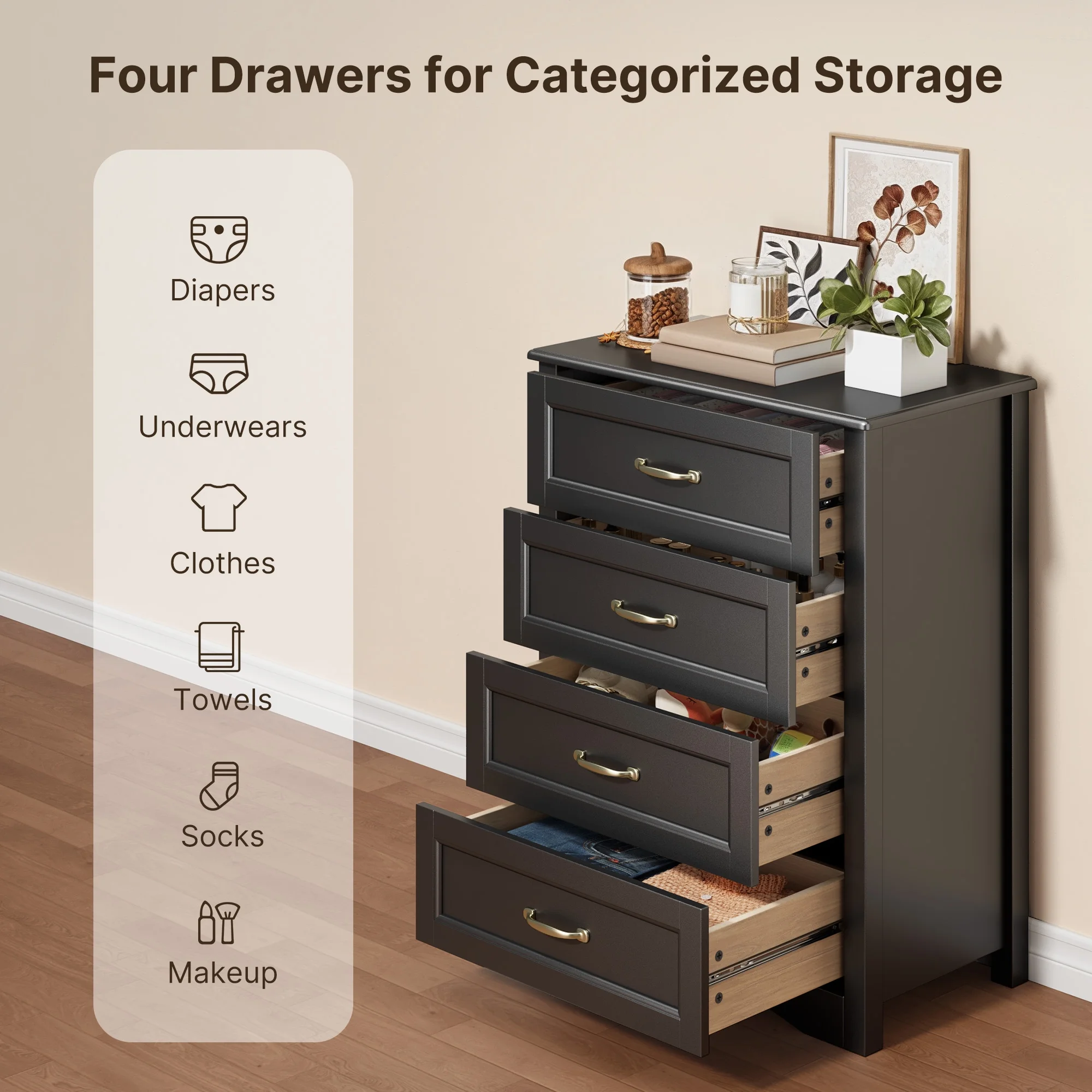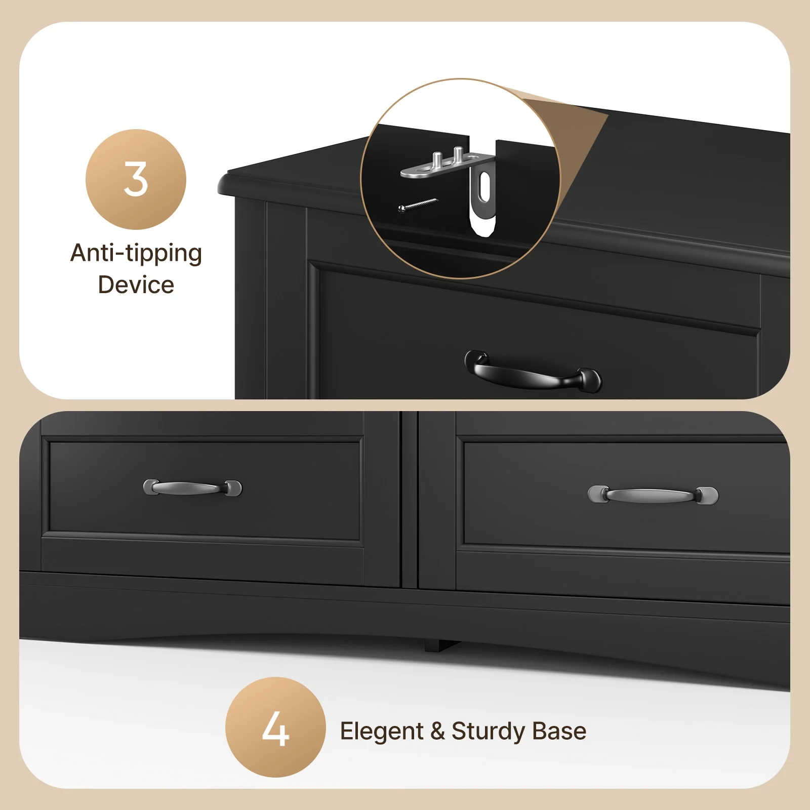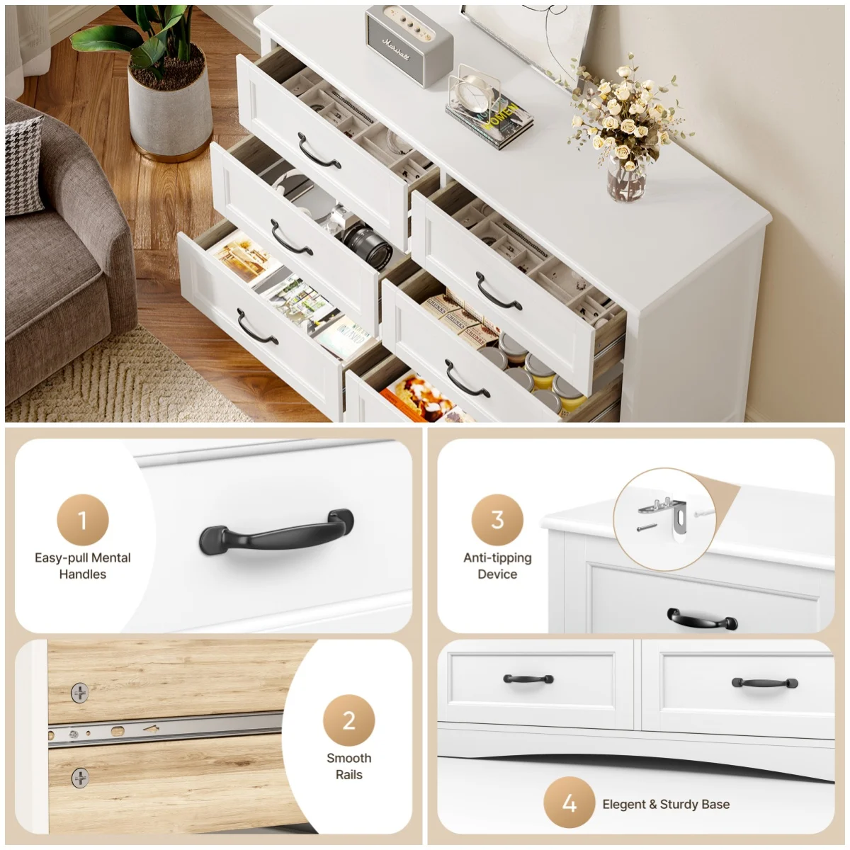 - [ Sturdy & Durable ] - Made of premium MDF, the durable dresser top can hold up to 50 pounds and each drawer can safely and easily hold up to 30 pounds.