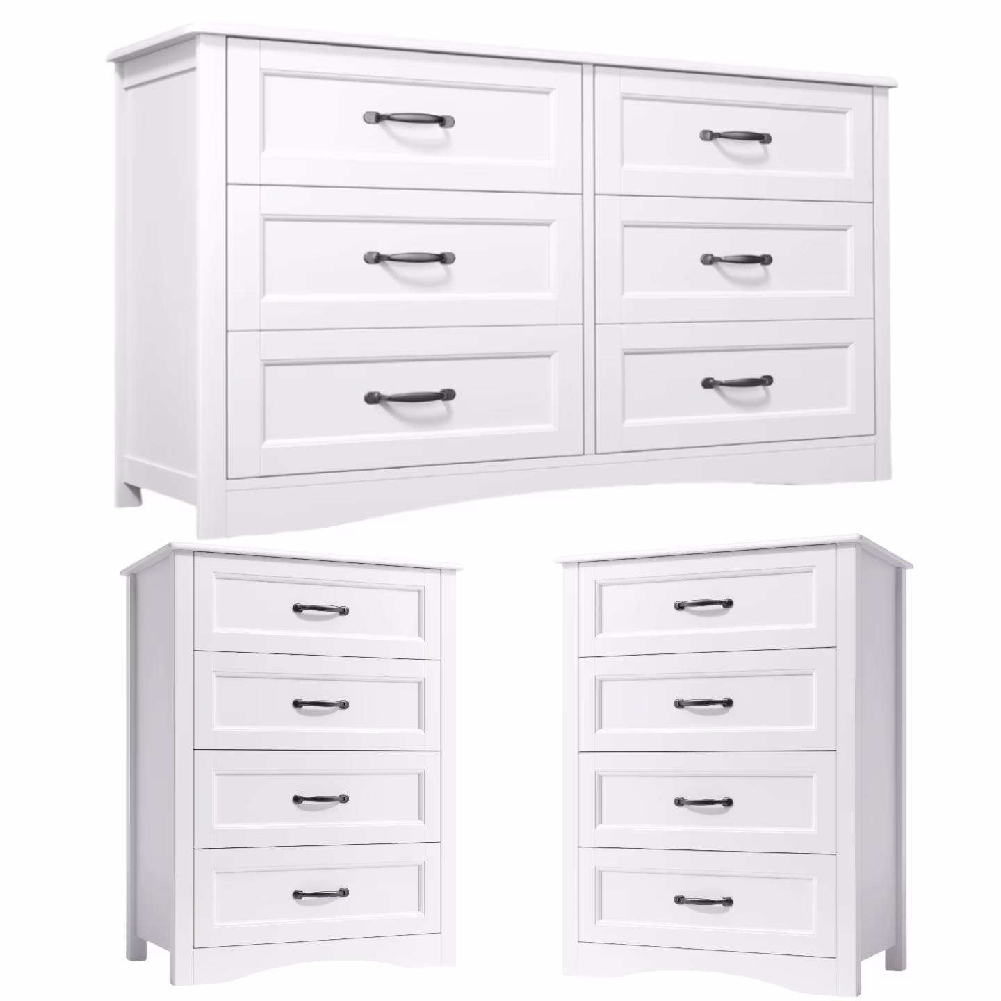 - Modern Wood Dresser 3 Pieces Nightstand Bedroom Set,White