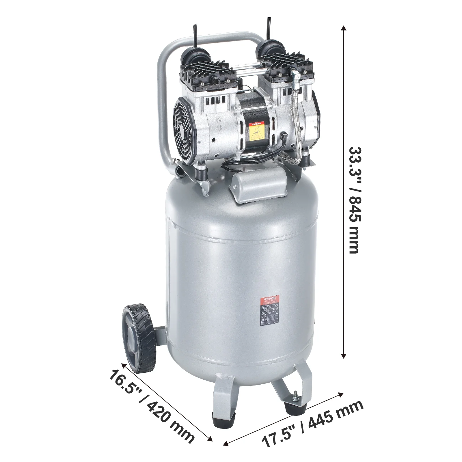 - Convenience at Its Best: Our oil free air compressor allows for easy maneuverability with 7-inch rubber wheels. Its compact design makes it a perfect fit for garage corners. Upgraded piping and valves enhance its sealing, preventing air leaks.