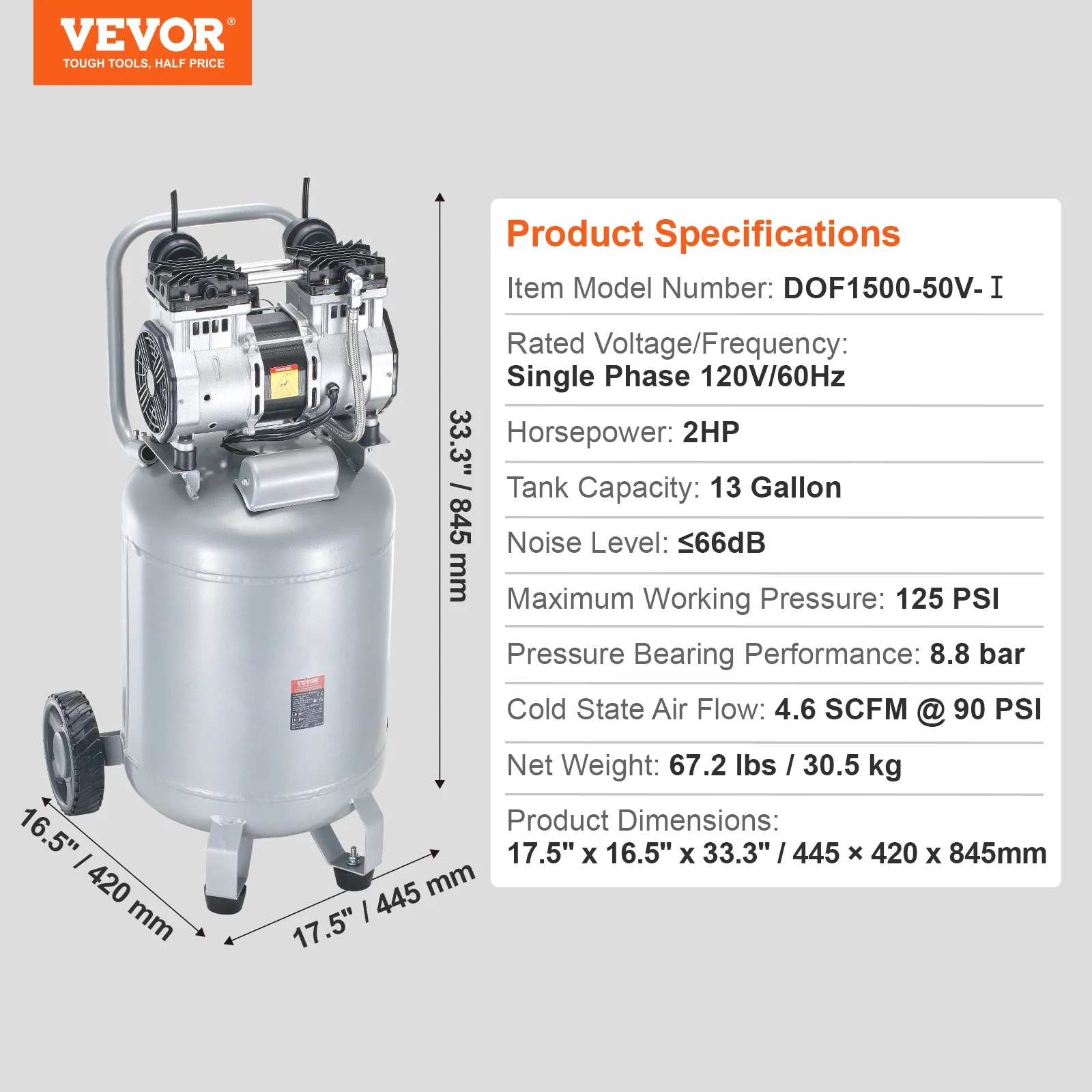 - Power Up, Noise Down: VEVOR 66dB low-noise air compressor utilizes oil-free technology, significantly reducing operational sound interference, creating a quieter work environment and improving your work efficiency.