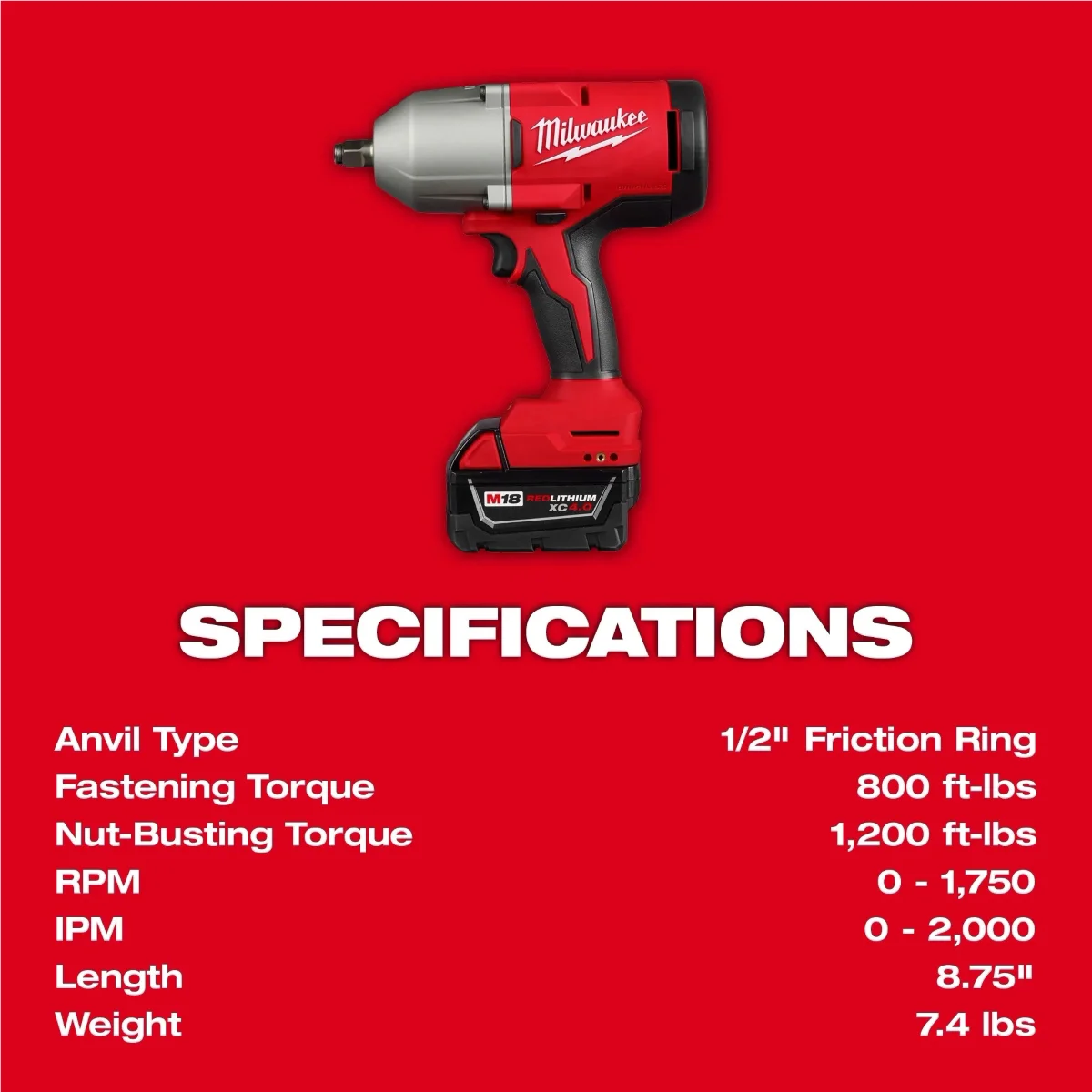 Milwaukee 2666-21B 18V, 1/2" Cordless Friction Ring Impact Wrench