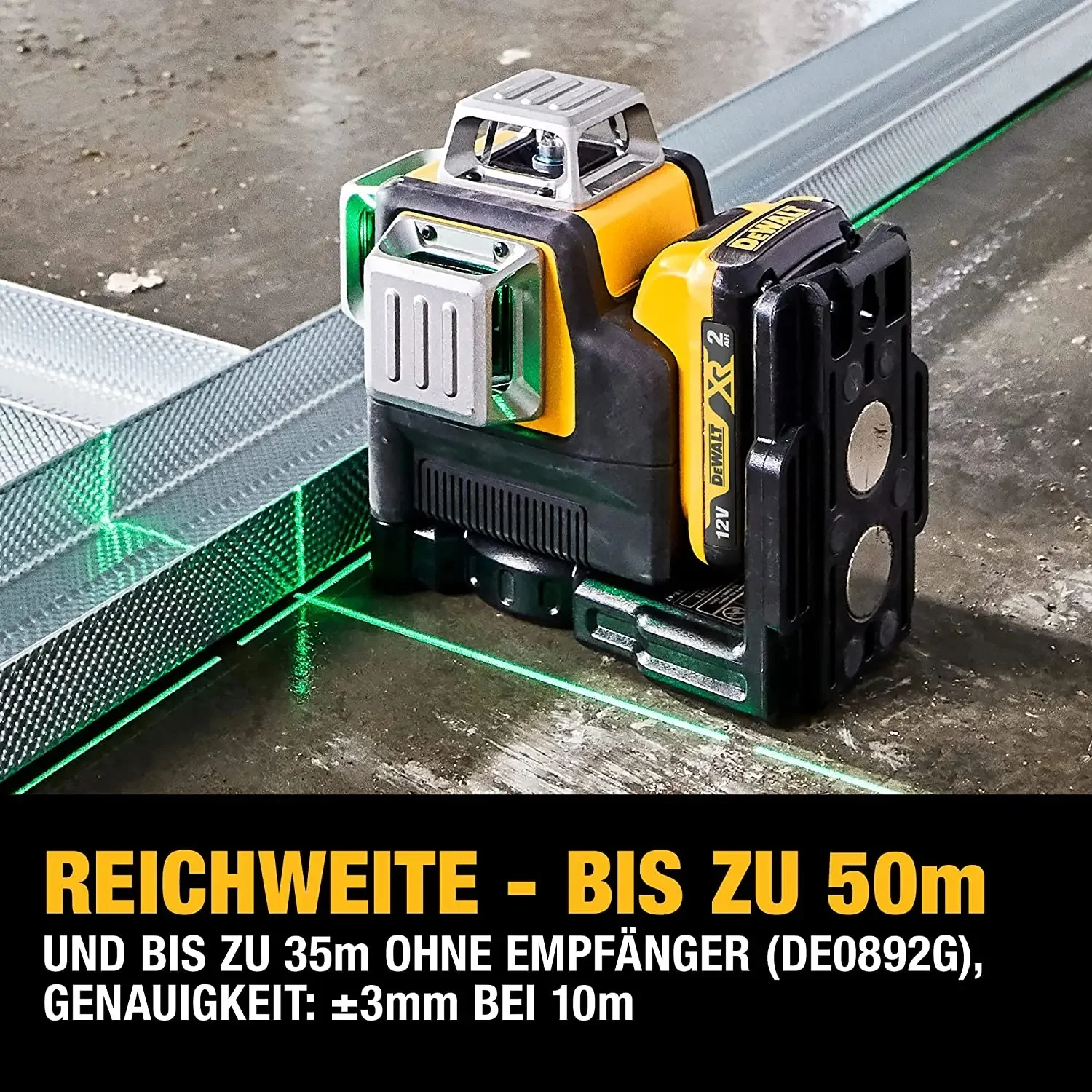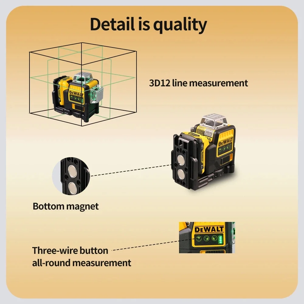 - DEWALT laser level comes with 12V MAX lithium-ion rechargeable power tool battery platform.Laser Accuracy : plus/-3mm@10m.
