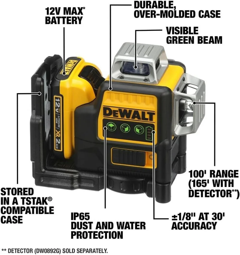 DeWalt? DW089LG 12V Max Laser Level, 3-Way 360 Green Degrees Professional Architectural Laser, Rotary and Linear Laser Levels��for Laser for Home Renovation Layout or Architectural Design