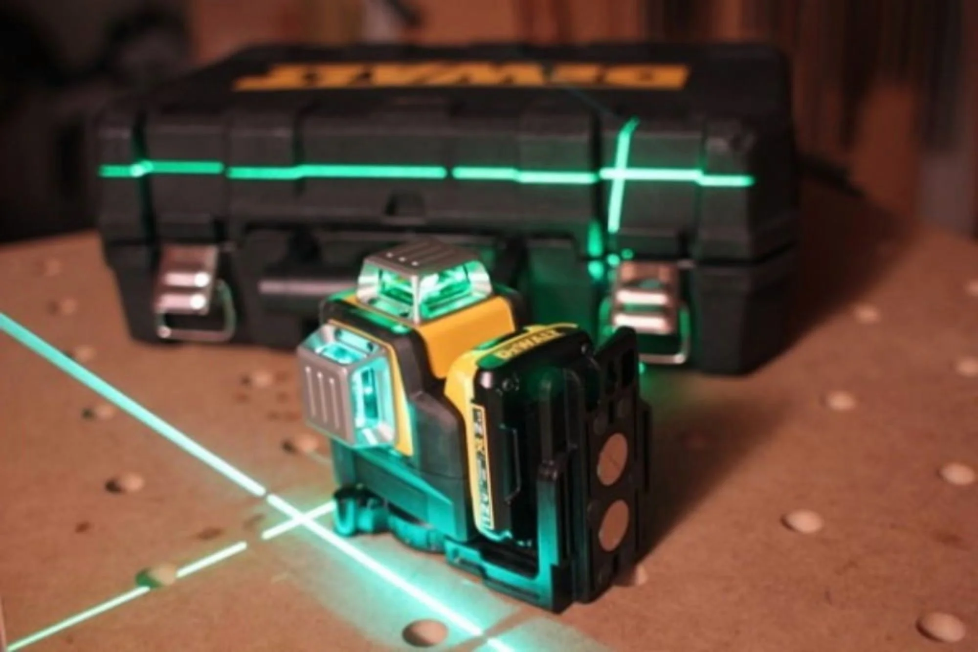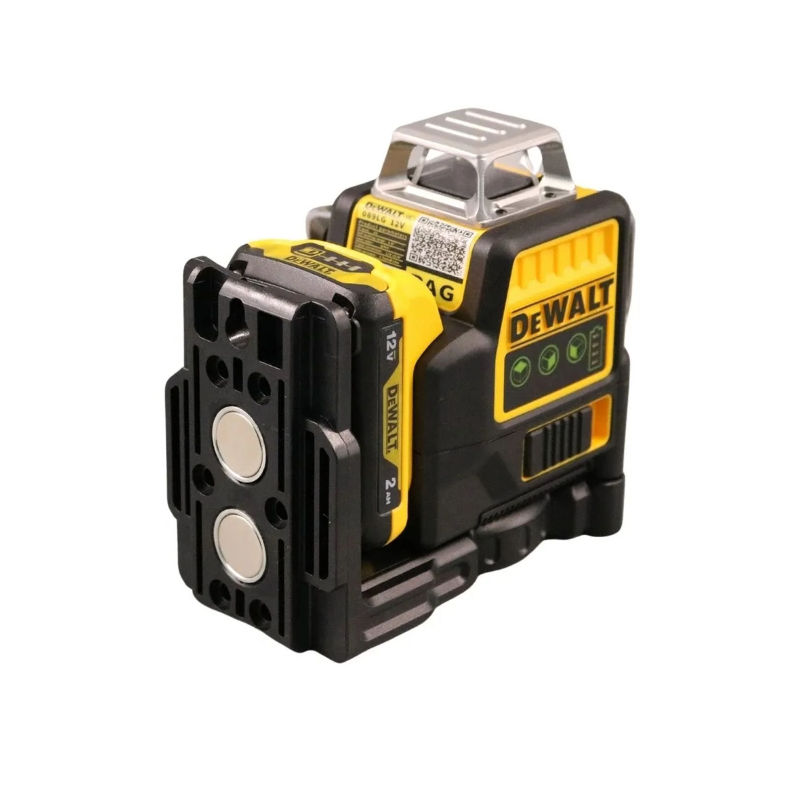 - DEWALT green laser level has integrated magnetic bracket with 1/4-inch and 5/8-inch thread