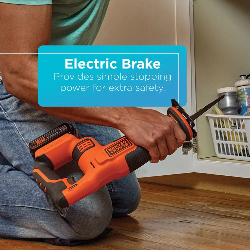 The BLACK+DECKER 20V MAX Variable Speed Cordless Reciprocating Saw is versatile, lightweight, and easy to use. It features a powerful 3000 SPM motor with a variable speed trigger and electric brake to enhance control. Tool-free blade changes and an adjustable pivoting shoe add convenience and ease of use.