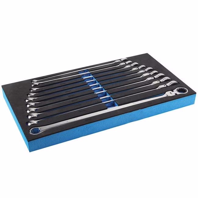 - Each wrench features both a ratcheting flexible head box-end and a non-ratcheting zero-degree offset box-end for maximum versatility