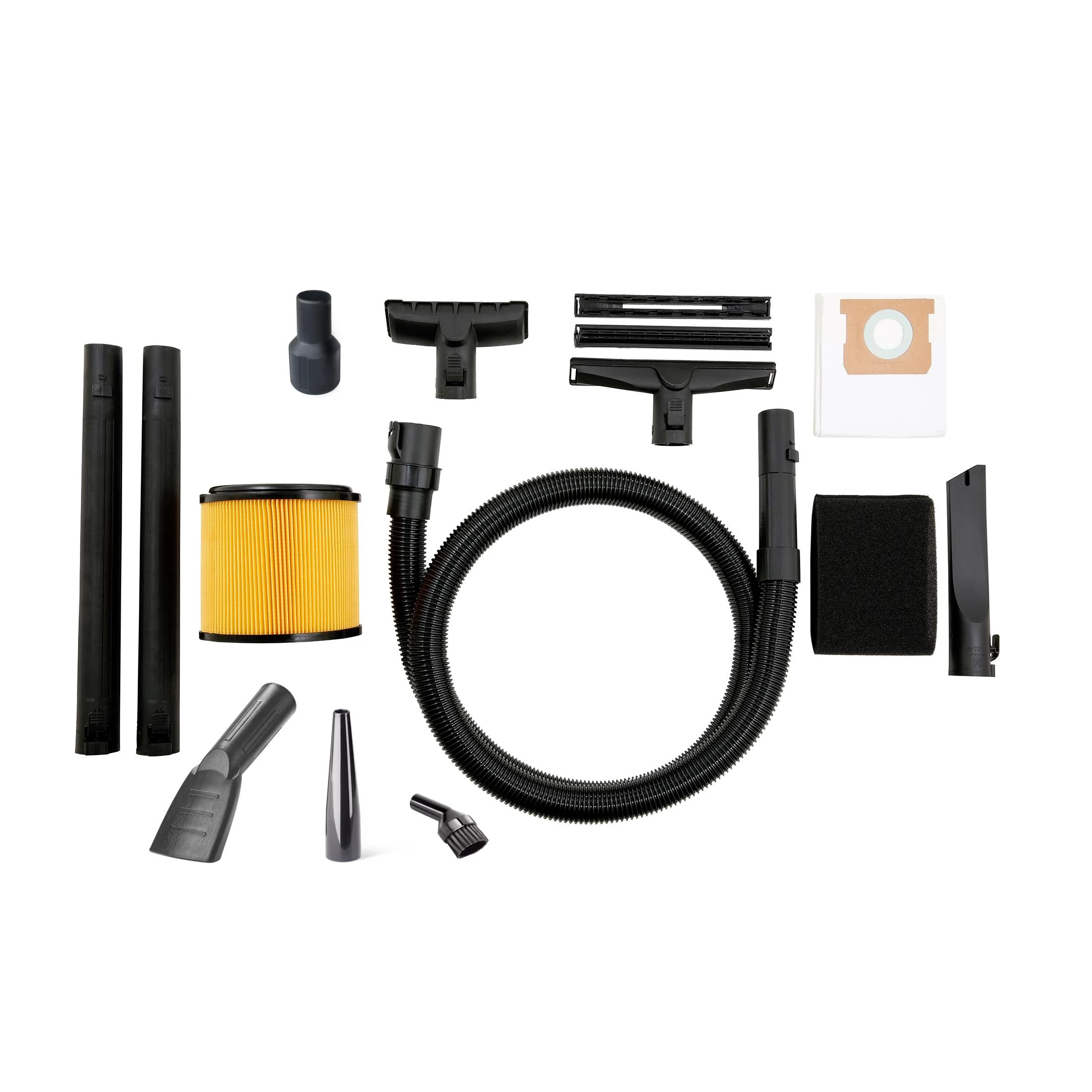 - Includes: 7' x 1-7/8" Premium Hose, (2) Extension Wands, Utility Nozzle, Crevice Tool, Floor Brush/Squeegee Nozzle, Cartridge Filter, Foam Wet Filter, Collection Bag,car cleaning kit adapter 1-1/4" to 1-7/8"