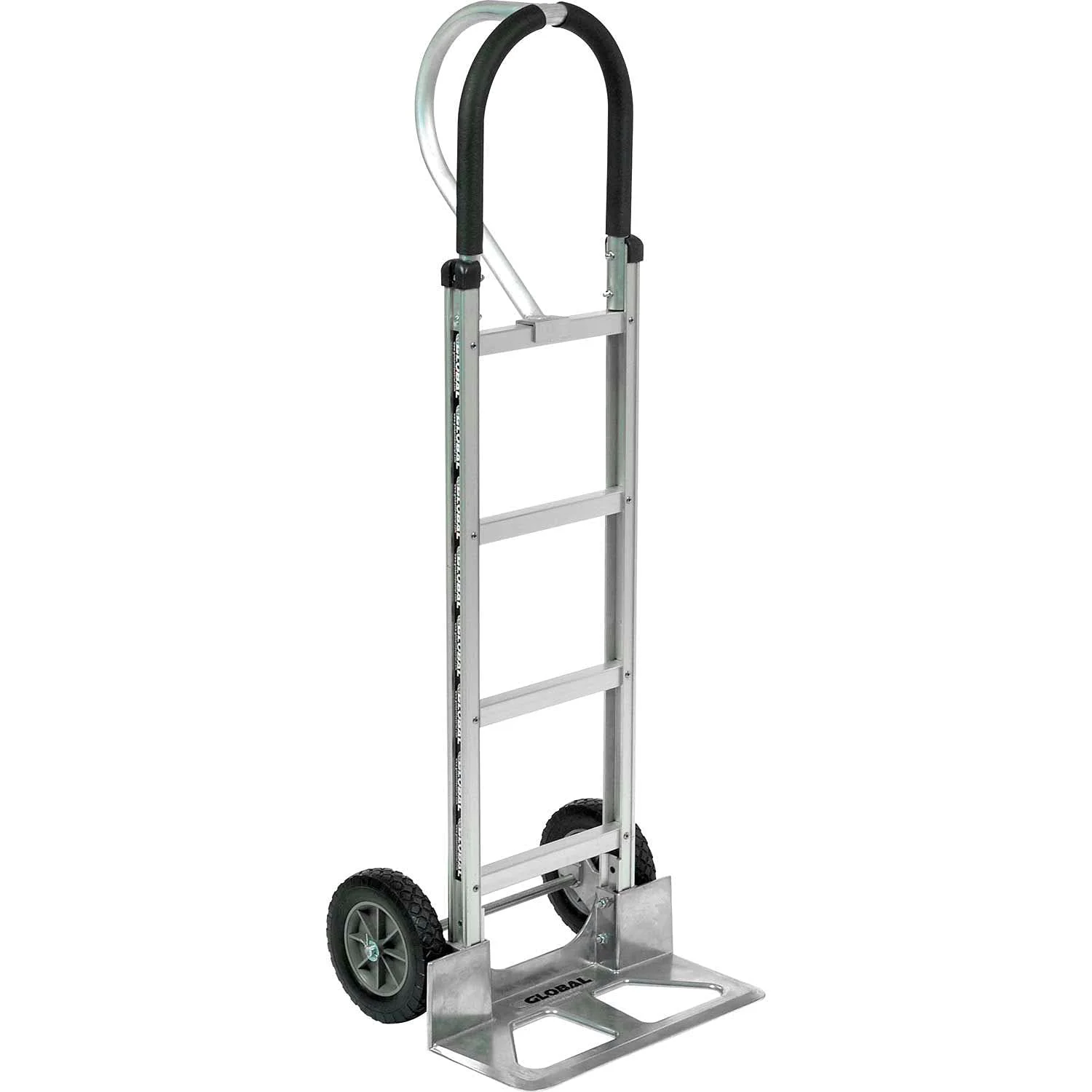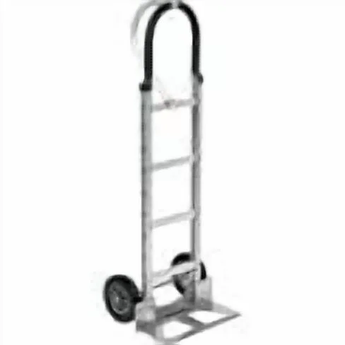 Strong lightweight aluminum frameProtective polyethylene rail caps18" x 7-1/2" beveled noseplate accepts bulky loadsComfortable anti-slip grips for safety8" mold-on rubber wheelsEasy assembly, Lot of 1Aluminum Hand Truck Loop Handle, Mold-On Rubber Wheels