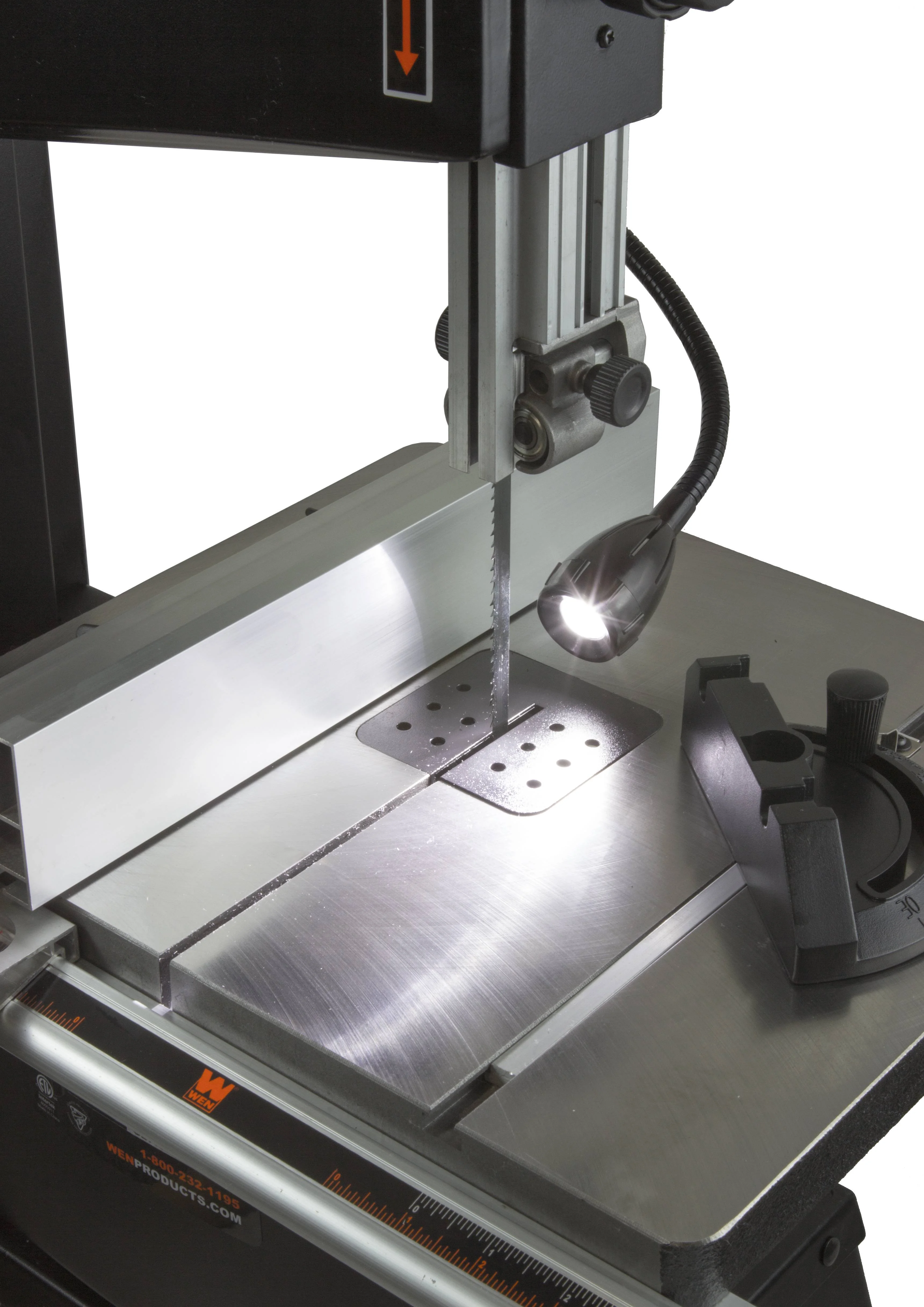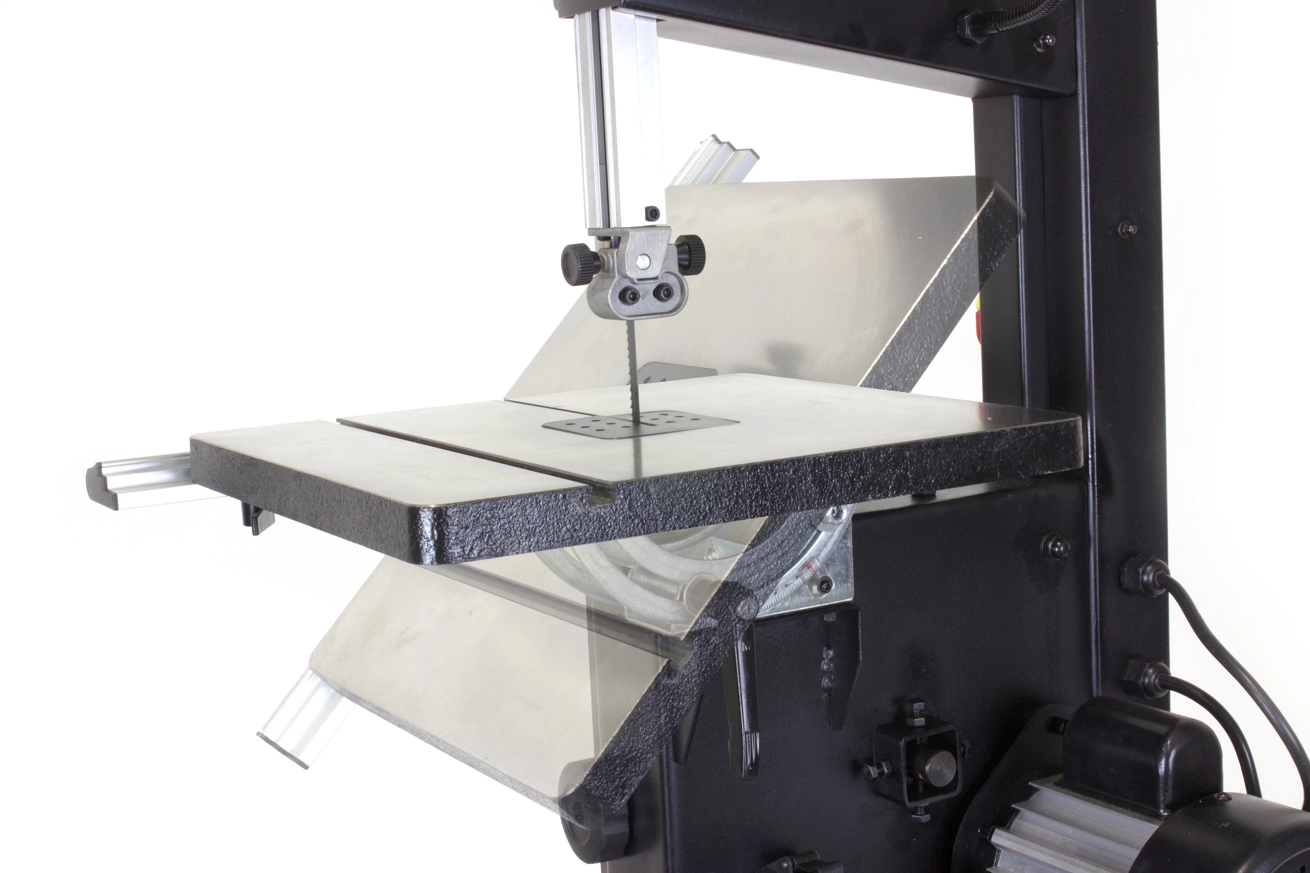 - Spacious 14-1/8 x 12-1/2 inch cast aluminum work table bevels up to 45 degrees