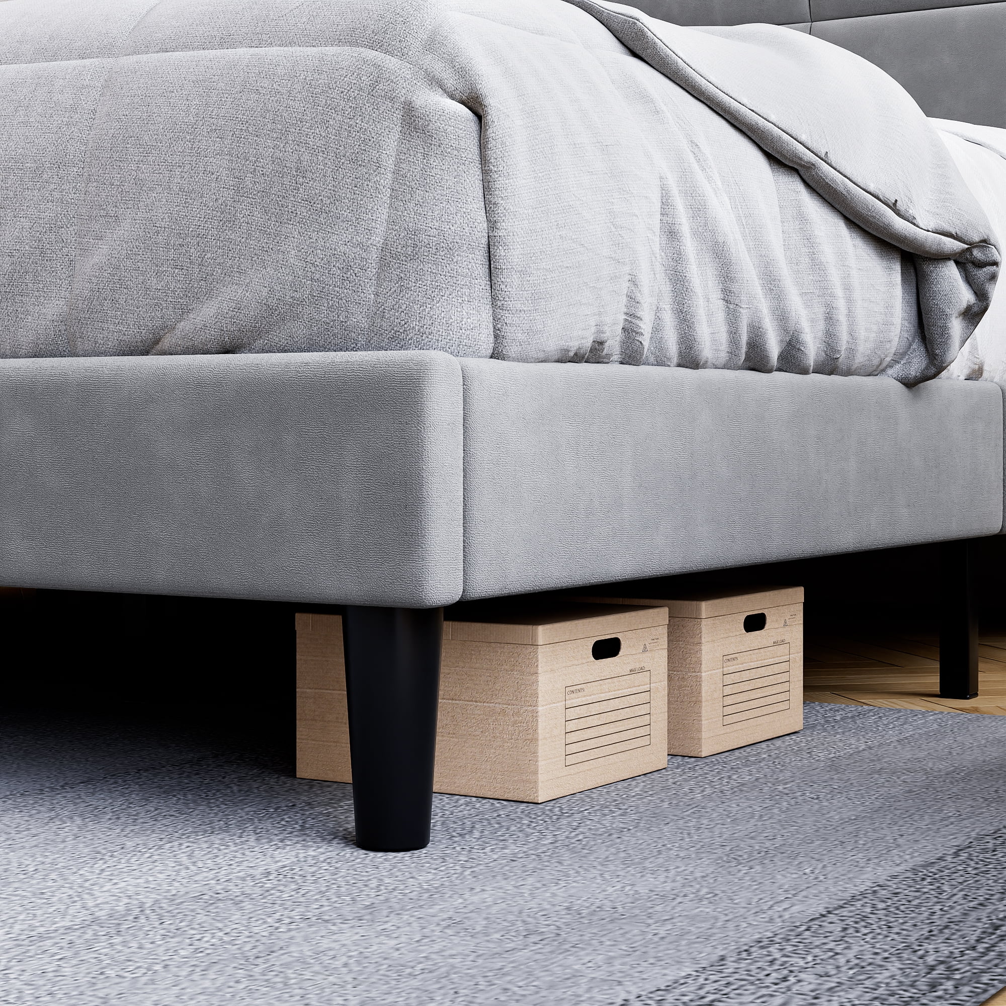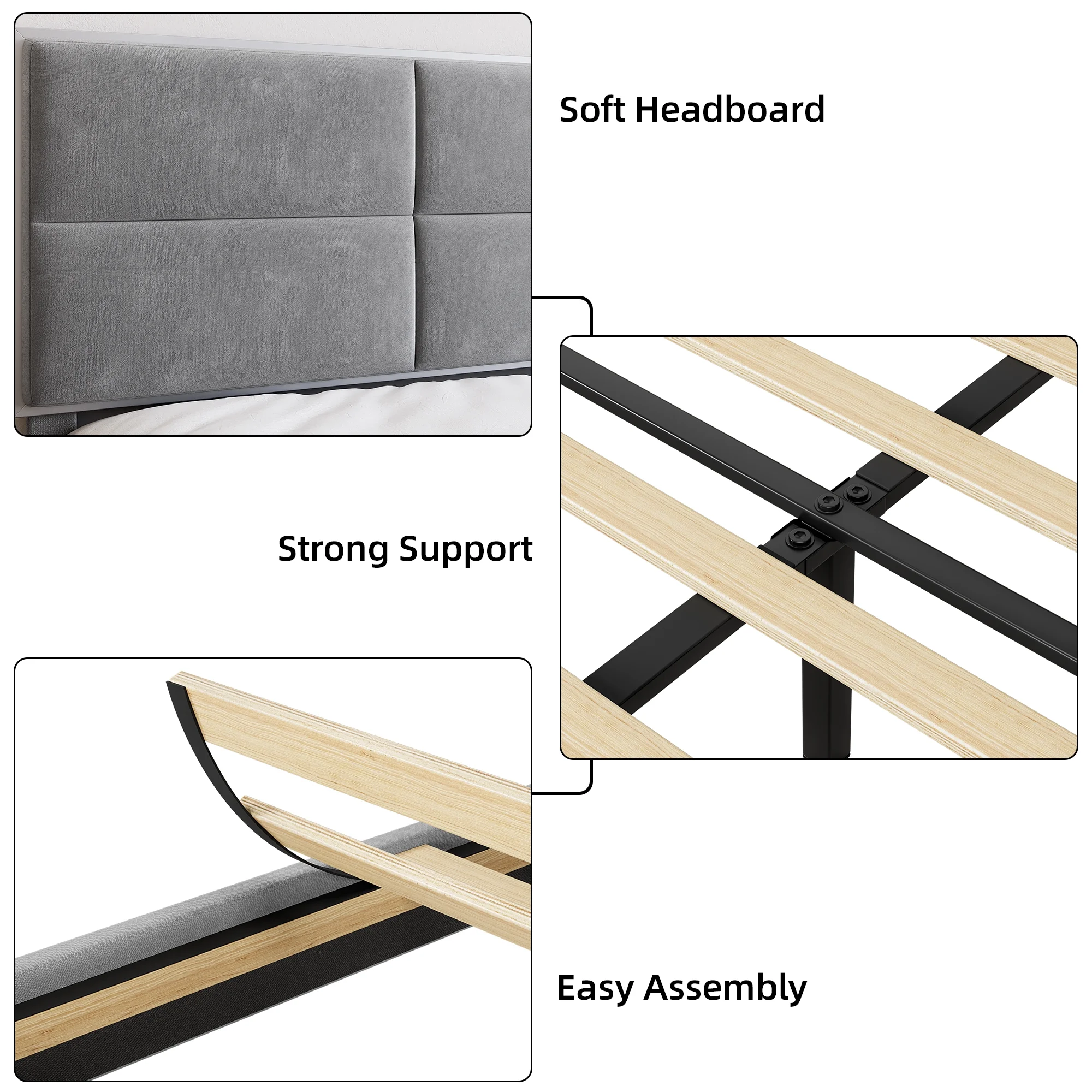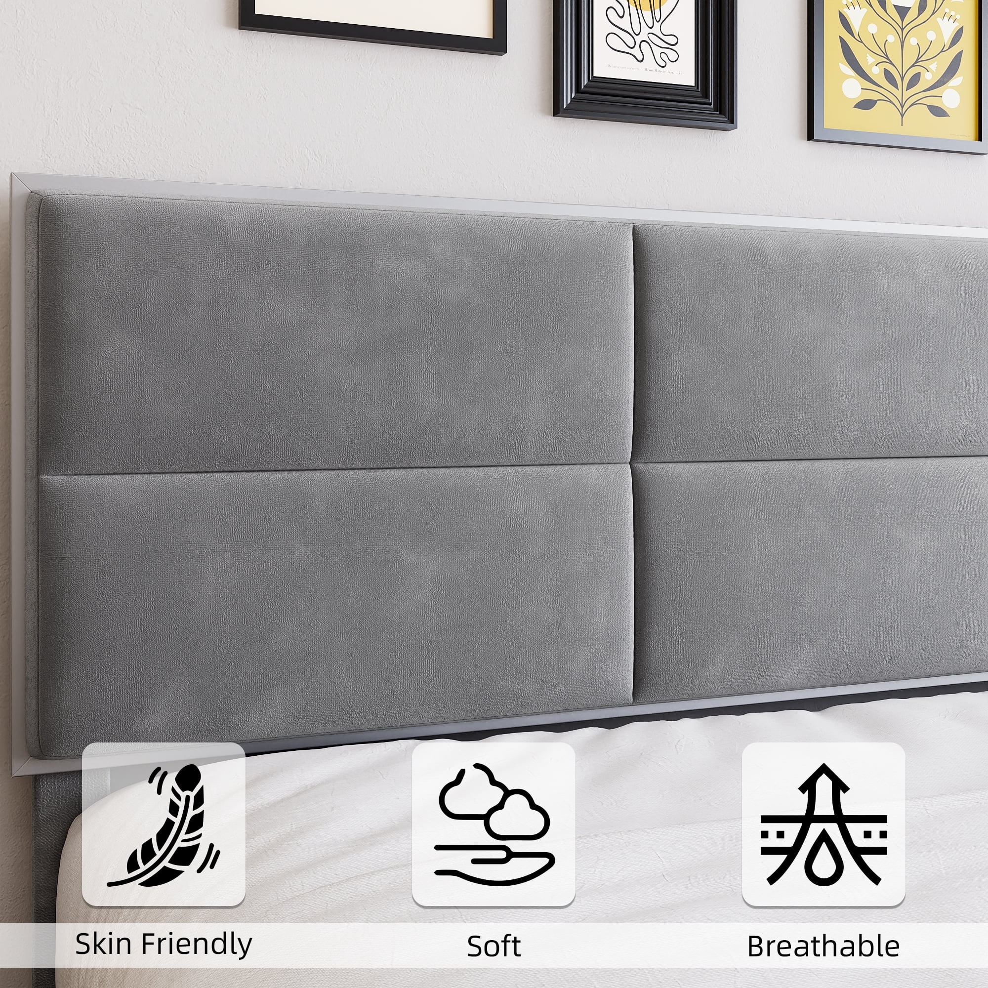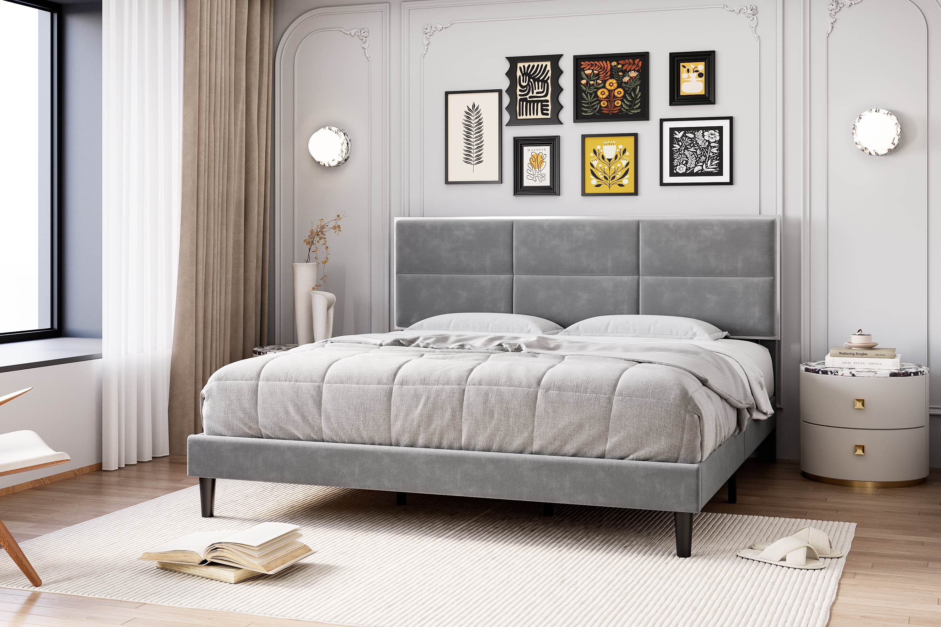 Homhougo King Size Bed Frame Upholstered Platform, Bed Frame with Square Velvet Headboard, Wooden Slats Support, Non - Slip and Noise - Free, No Box Spring Needed, Easy Assembly(Light Gray)