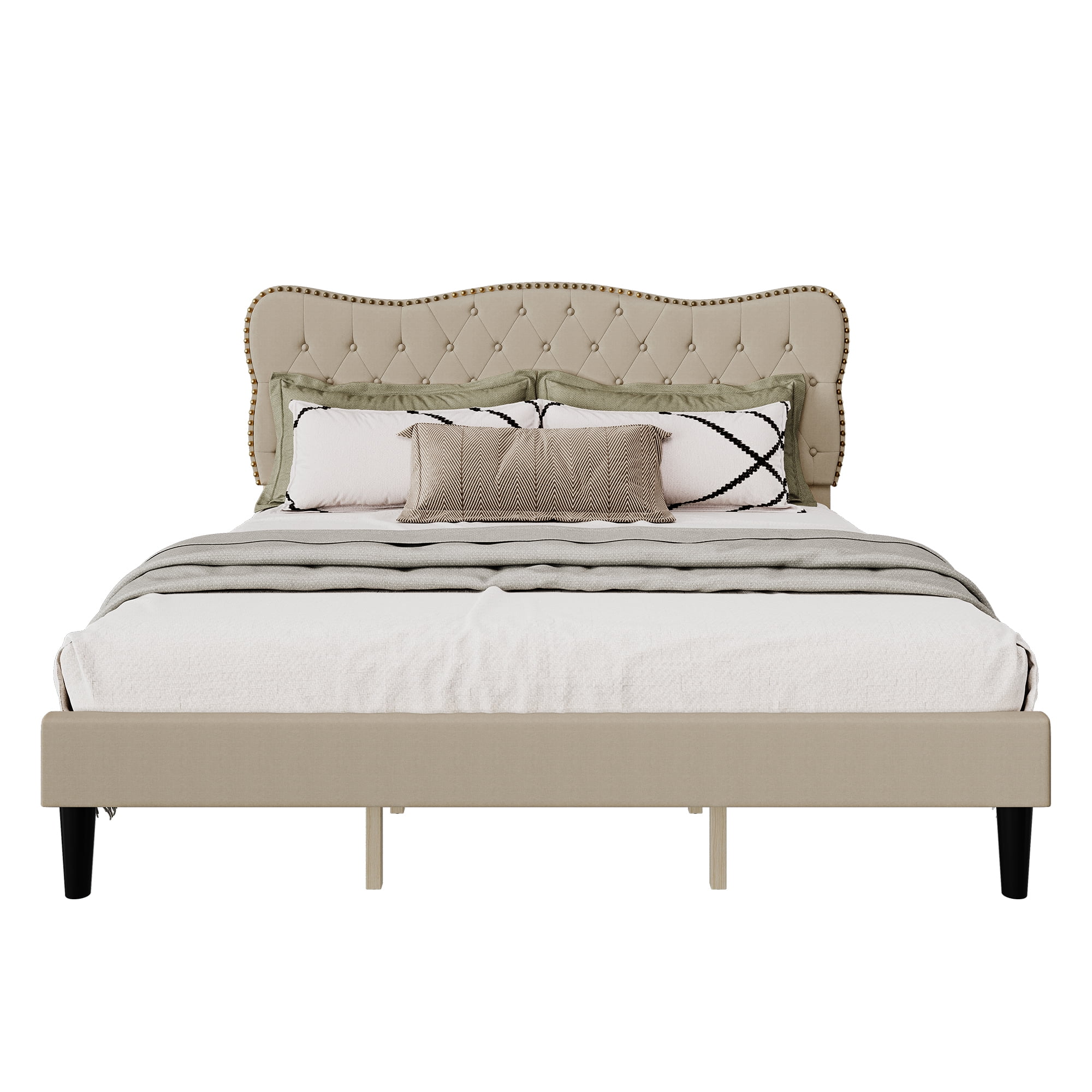 - ��No Box Spring Required��Our queen bed frame eliminates the need for a box spring, durable hardwood slats offer excellent support for various mattress types, save both money and time by simply placing your mattress directly on the slats.