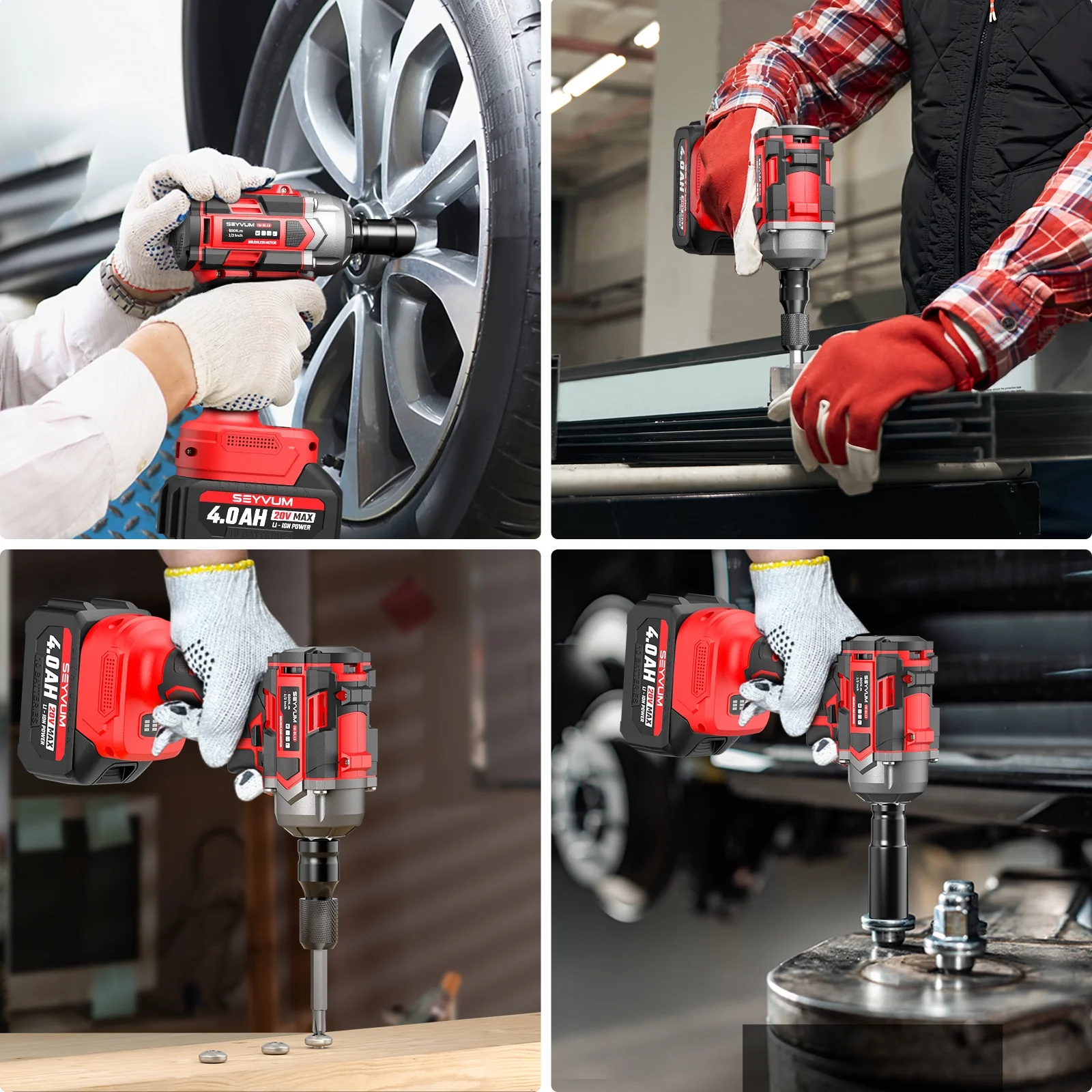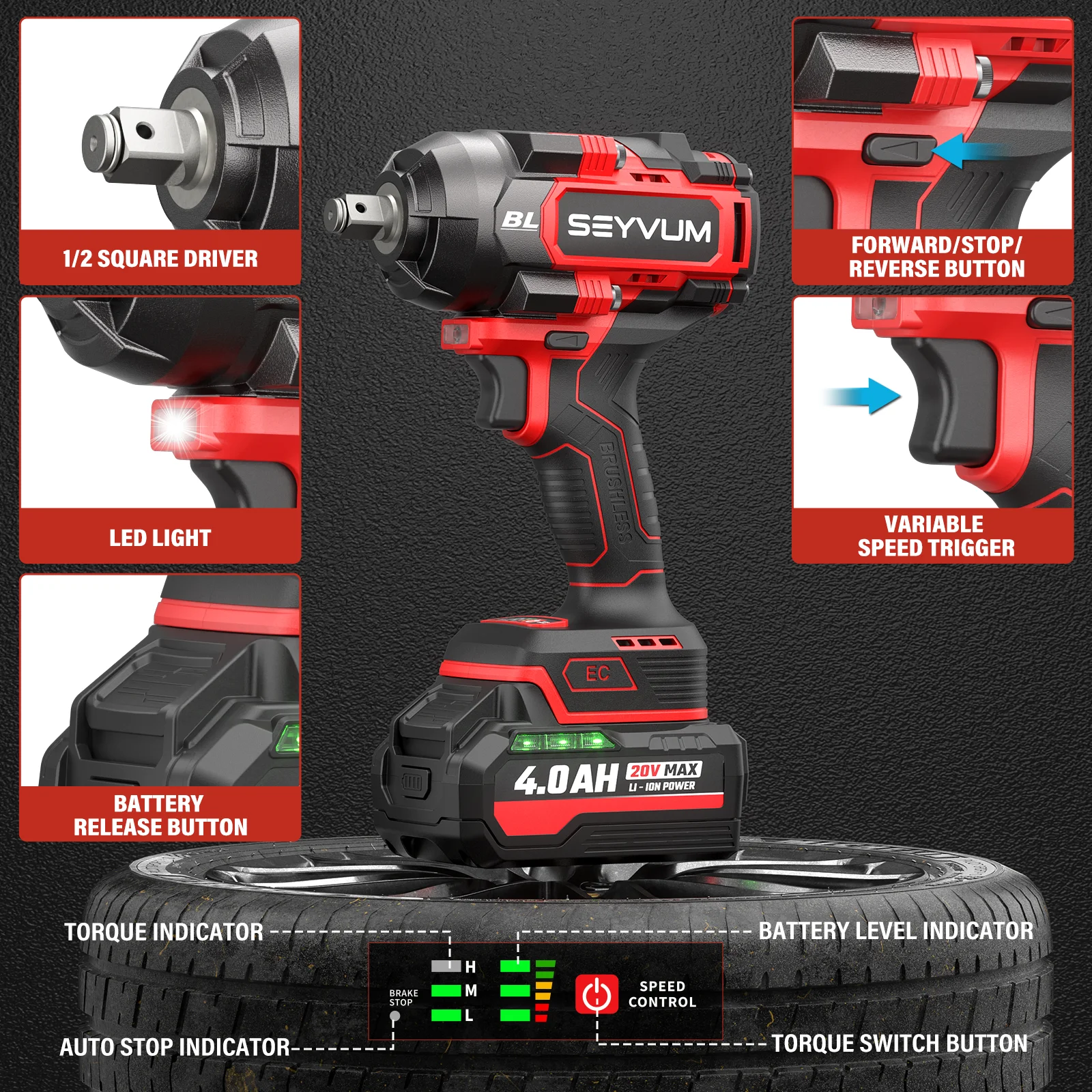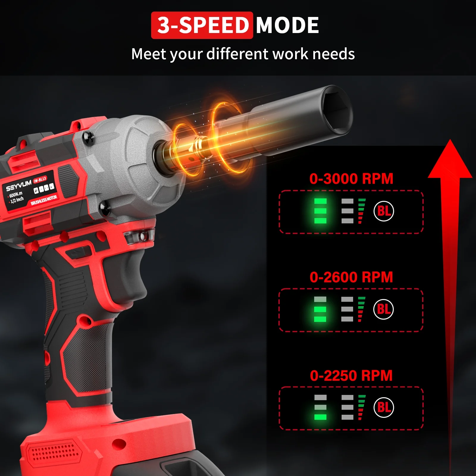 - The impact driver features a compact motor design that takes up 33% less space, providing better thermal efficiency and up to 440 ft-lbs (600N.m) of torque and 3000 RPM. The brushless motor runs more safely without sparks, allowing you to easily and quickly tighten or loosen various nuts and bolts.