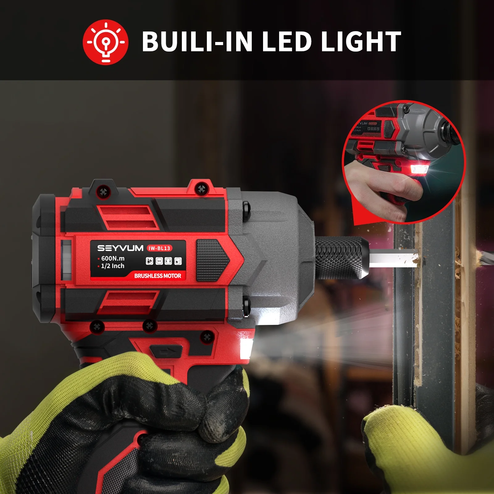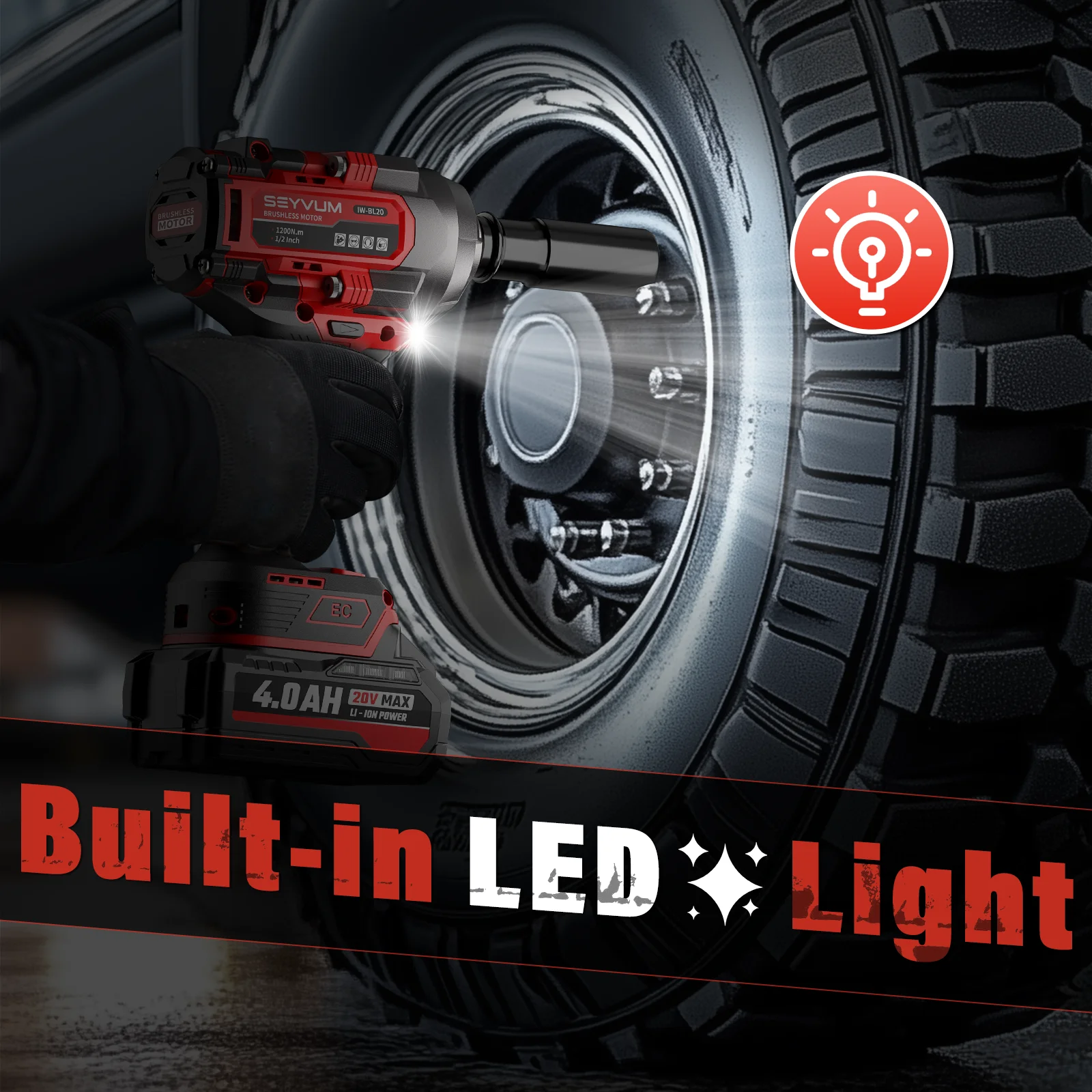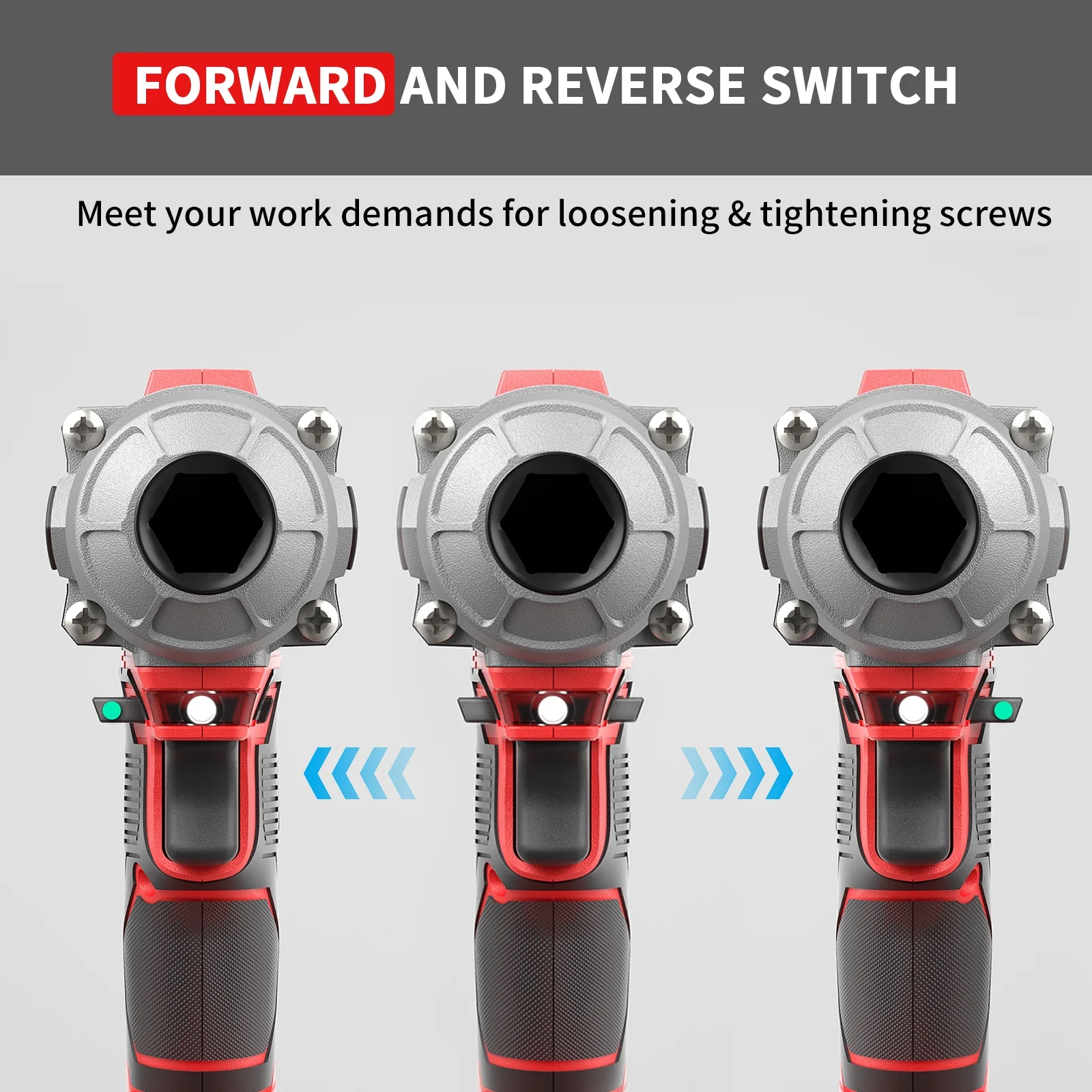 - The built-in LED light of this impact gun enhances visibility in dark working areas, and the reversing self-stop function ensures that the nut will not fall off easily when you remove it. Simply press and hold the trigger when you turn on this function, and the square driver will turn a few turns and then stop automatically.