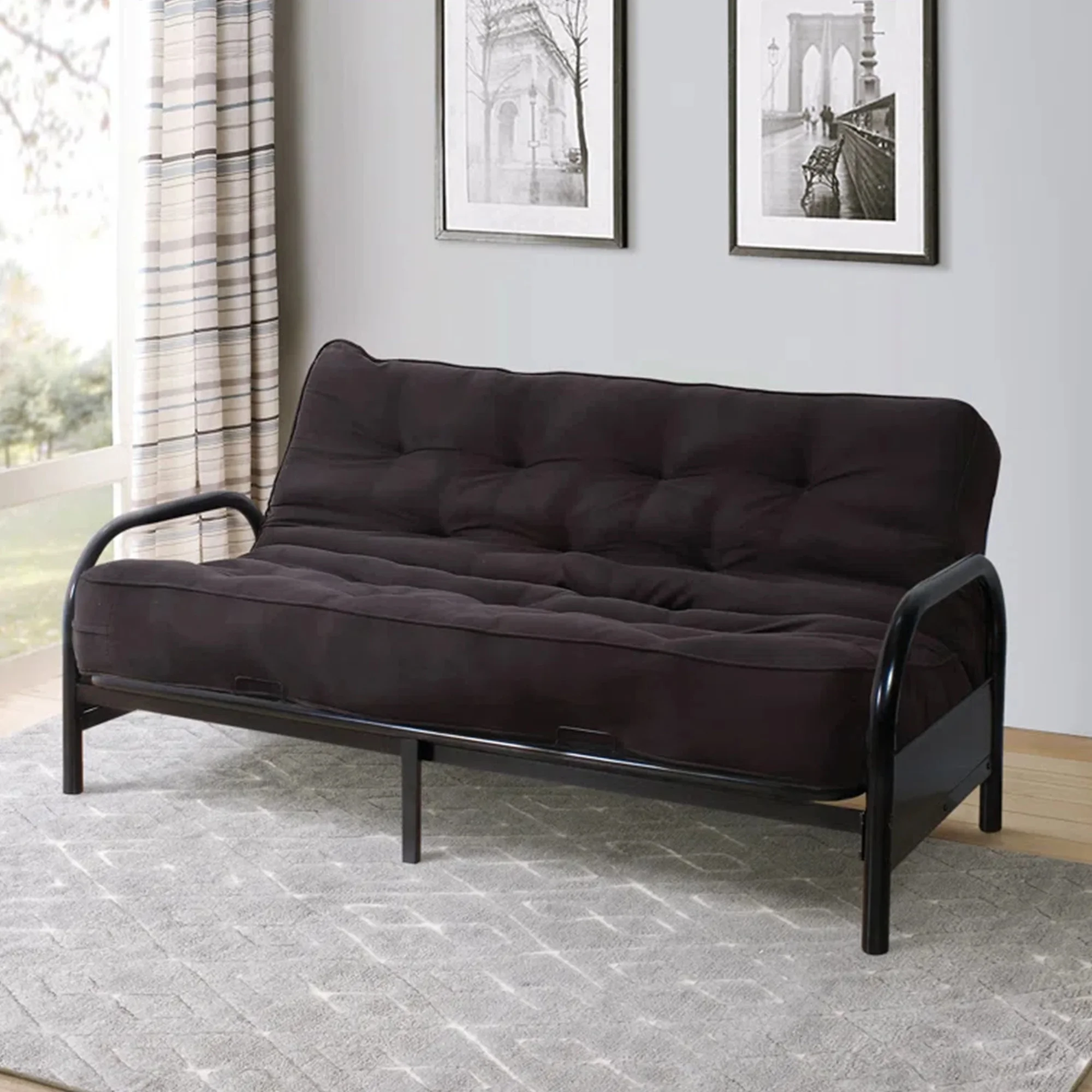 - QUICK & EASY ASSEMBLY - The metal frame futon ships in a single, compact box and assembles effortlessly. With clear instructions, you'll have your futon ready for use in minutes �C no complicated tools required.