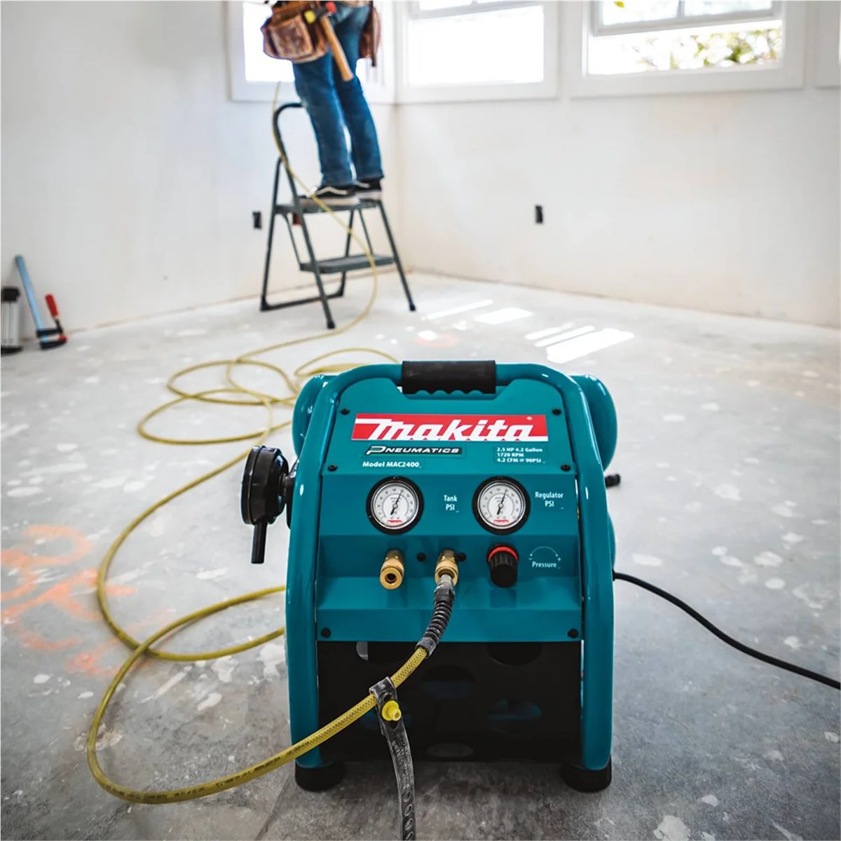 - Powerful 2.5 HP 4-Pole motor produces 4.2 CFM at 90 PSI for increased productivity and lower noise