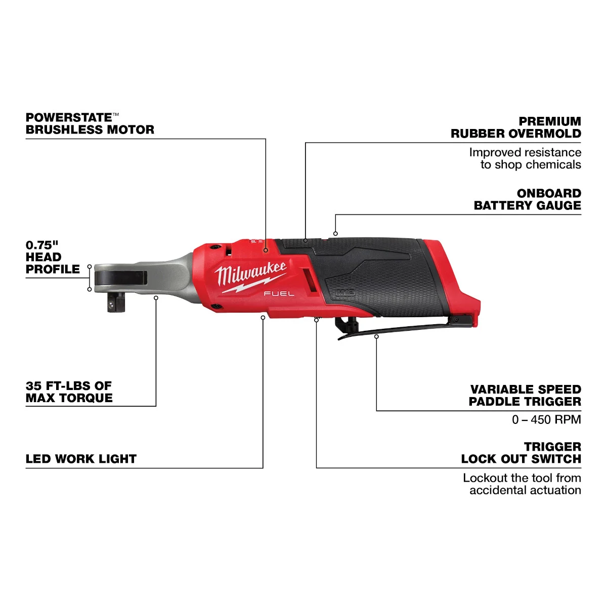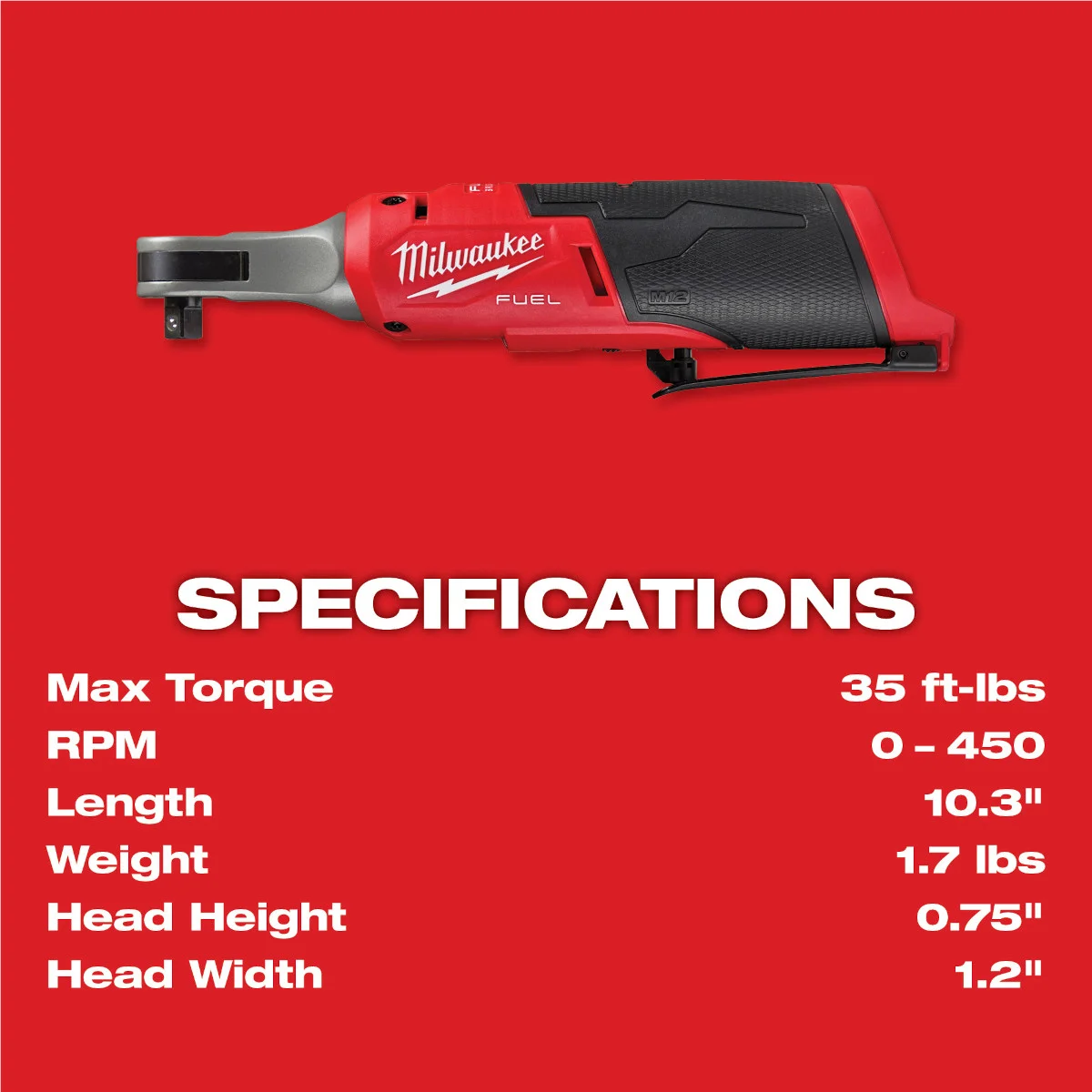 - M12 FUEL? 3/8" High Speed Ratchet delivers up to 450 RPM and up to 35 ft-lbs. of max torque for best-in-class productivity