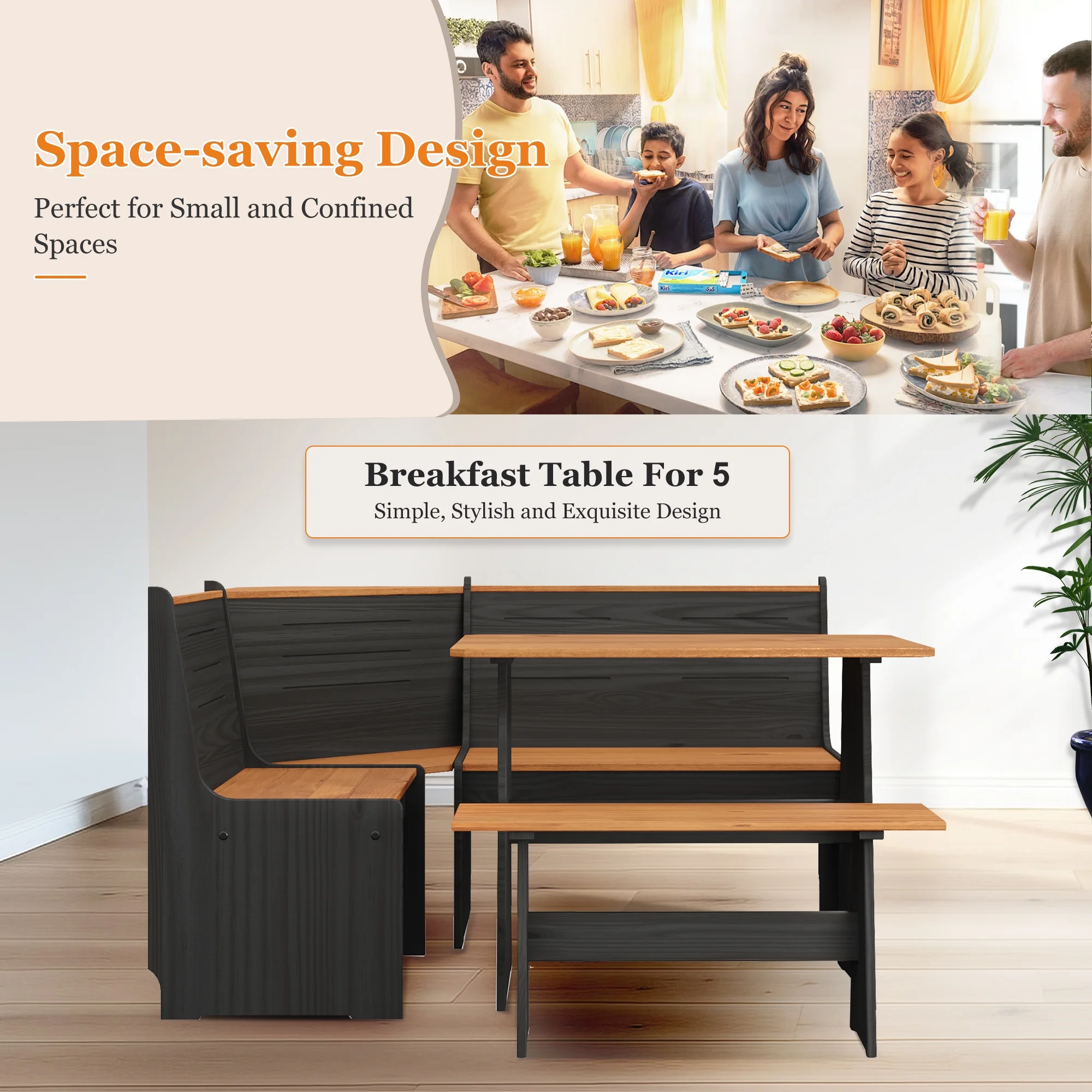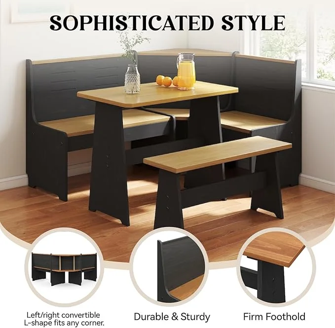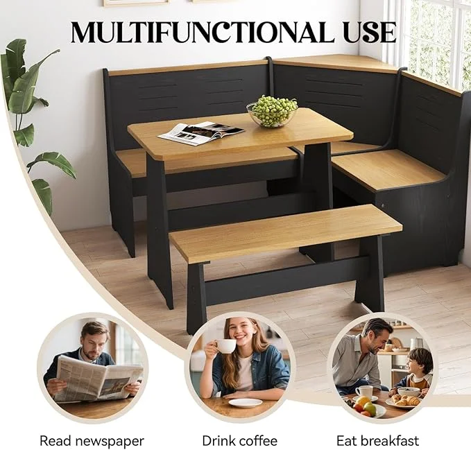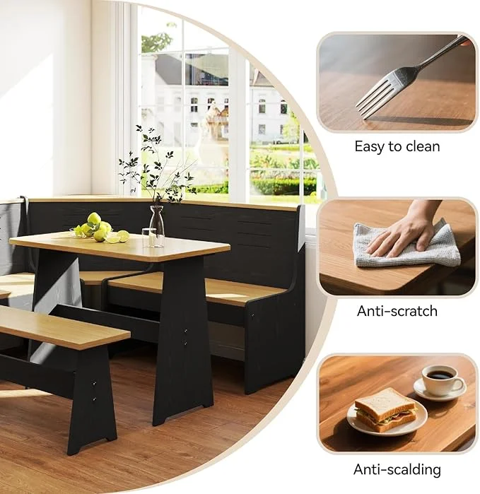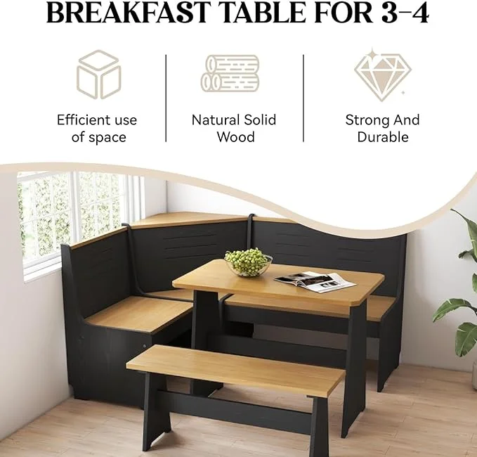 - ��Premium Quality Wood�� The table and seating surfaces of this breakfast dining corner set feature contemporary colors that enhance the wood's natural texture, resulting in a sophisticated yet cozy appearance. This design fosters an inviting ambiance, adding personality and warmth to your dining space. The blend of modern aesthetics and rustic charm ensures your kitchen nook feels both contemporary and timeless.