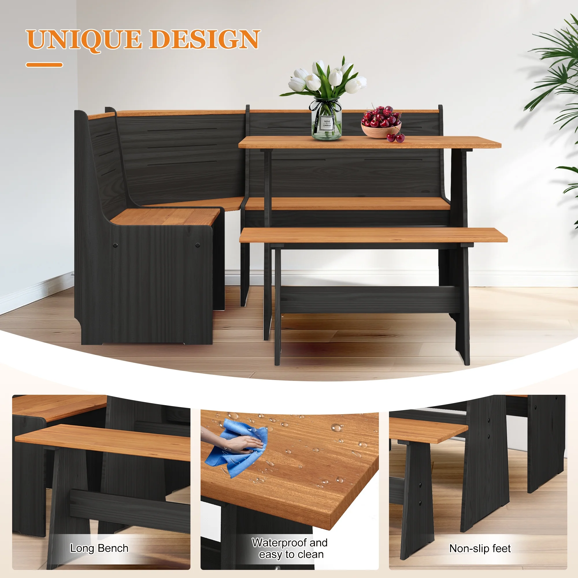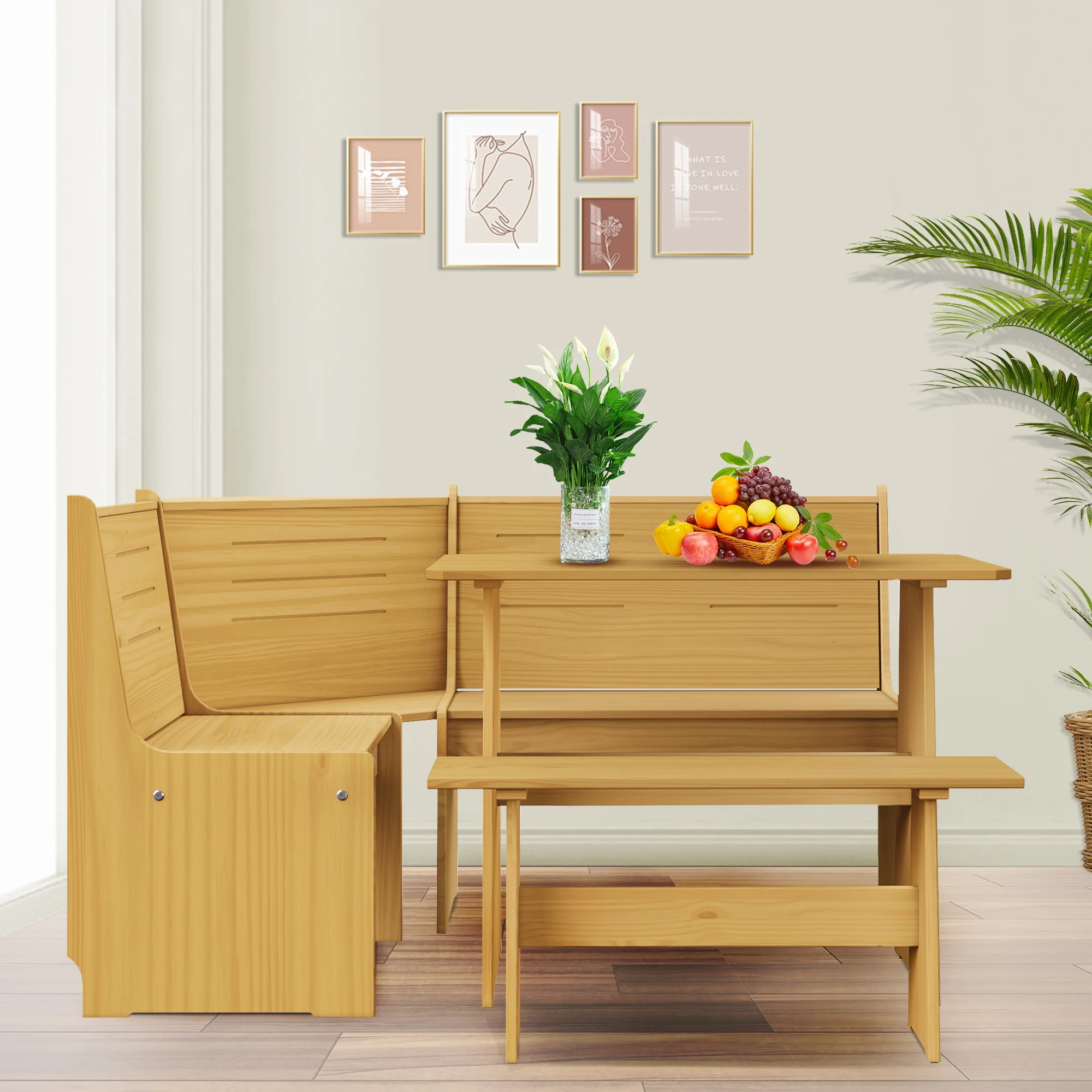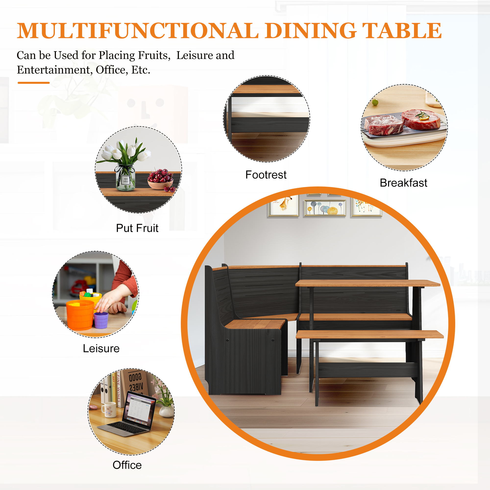 - ��Perfect for Small Spaces�� Tailored for small areas, this kitchen table set is the ideal solution for maximizing room efficiency without sacrificing comfort. The set includes a corner unit, table, and bench that fit seamlessly into tight corners, making it perfect for apartments, breakfast nooks, or intimate dining spaces. Its space-saving design allows you to create a functional and stylish dining area in even the coziest settings, transforming any corner into a warm and inviting space for meals and conversation.