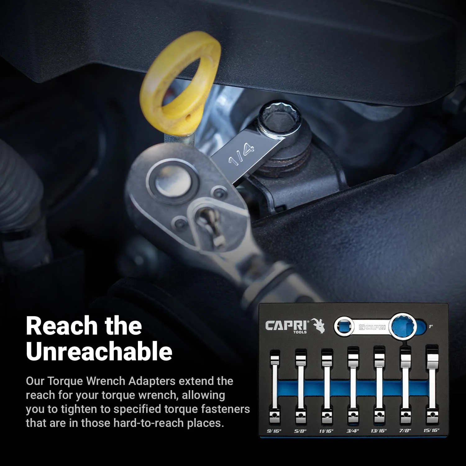 - The torque adapter extends the reach for your torque wrench, allowing to tighten fasteners in hard-to-reach places to specified torque