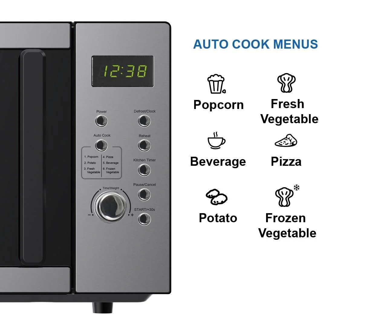 - 6 Pre-programmed Settings: Popcorn, Potato, Pizza, Frozen Vegetable, Beverage, Reheat