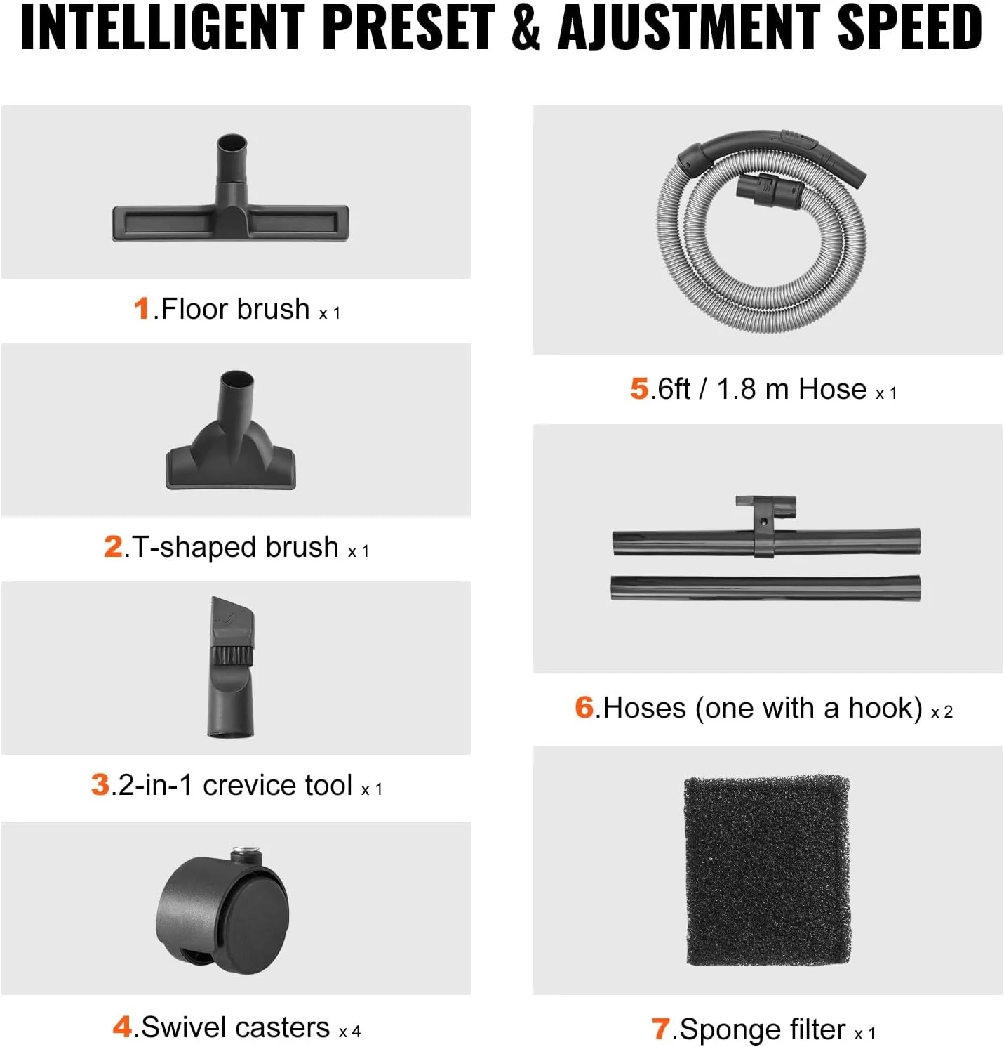 Professional filters that resist deformation make it easier to suck in more dirt. Equipped with a floor brush and a T-shaped brush to handle large areas of hair, debris, and dust particles.
