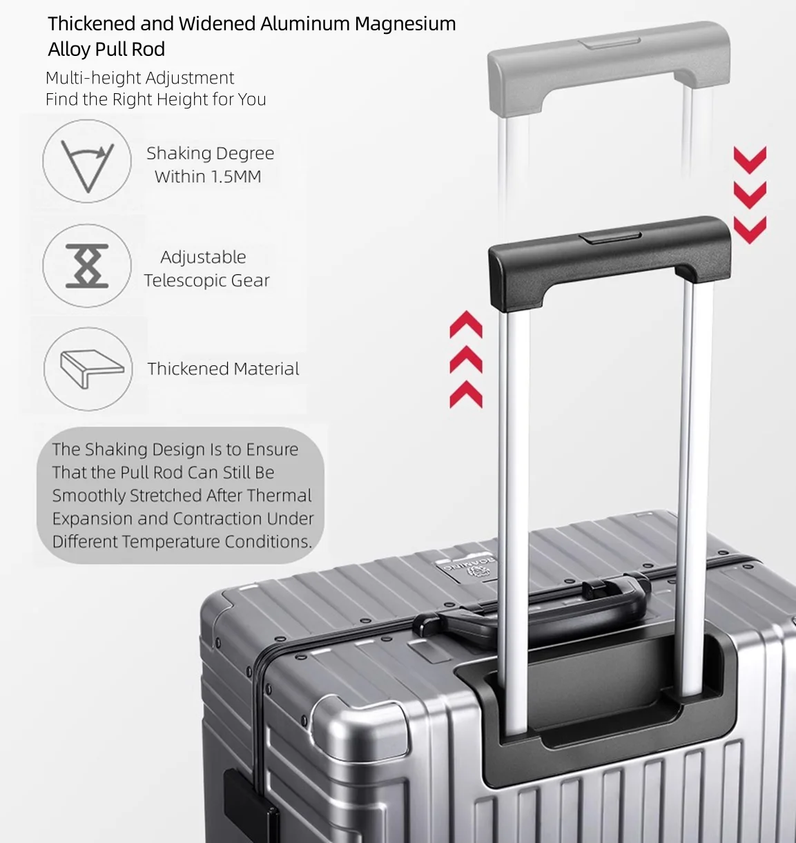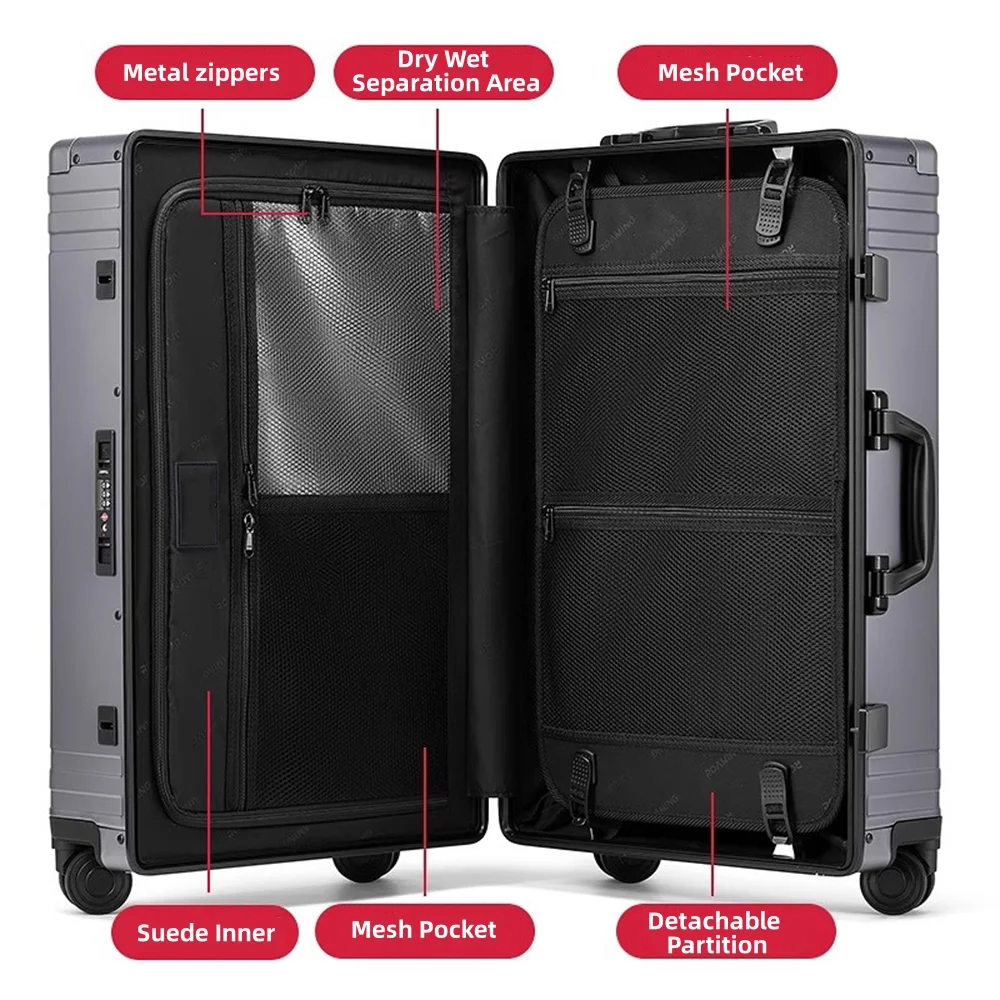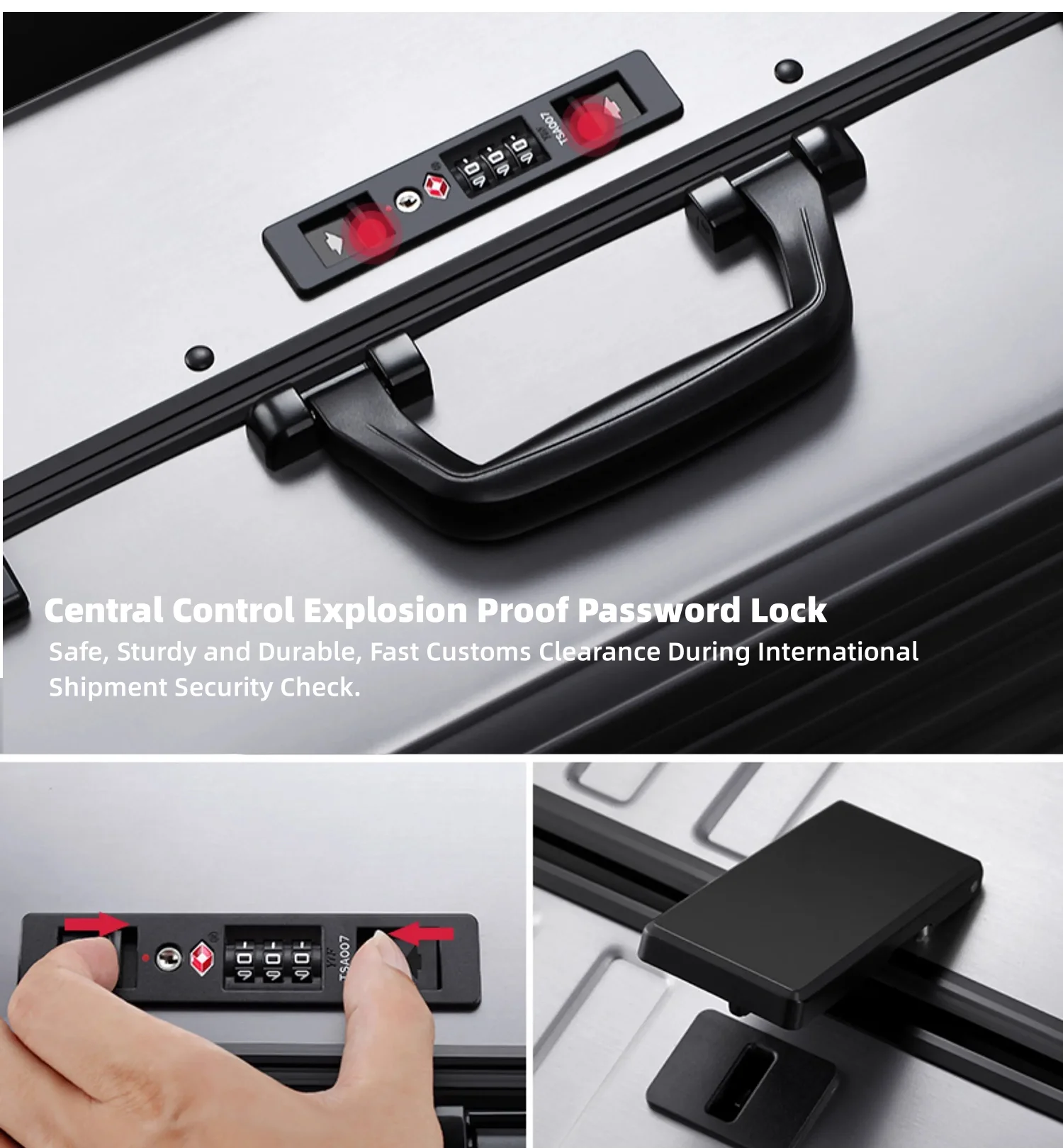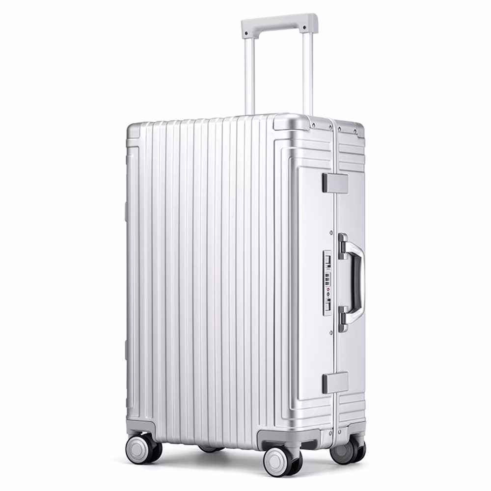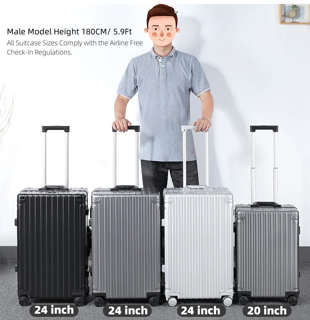 - Fashion All Aluminum Magnesium Alloy Hardside Carry on Luggage: The surface and frame of the Luggage are made of aviation grade 5 aluminum-magnesium alloy material, which is lighter, stronger and has better compressive strength. Aluminum magnesium alloy bumper corner to prevent impact. The luxury of the all aluminum suitcase with scratch resistant and beautiful shiny appearance is overwhelming.