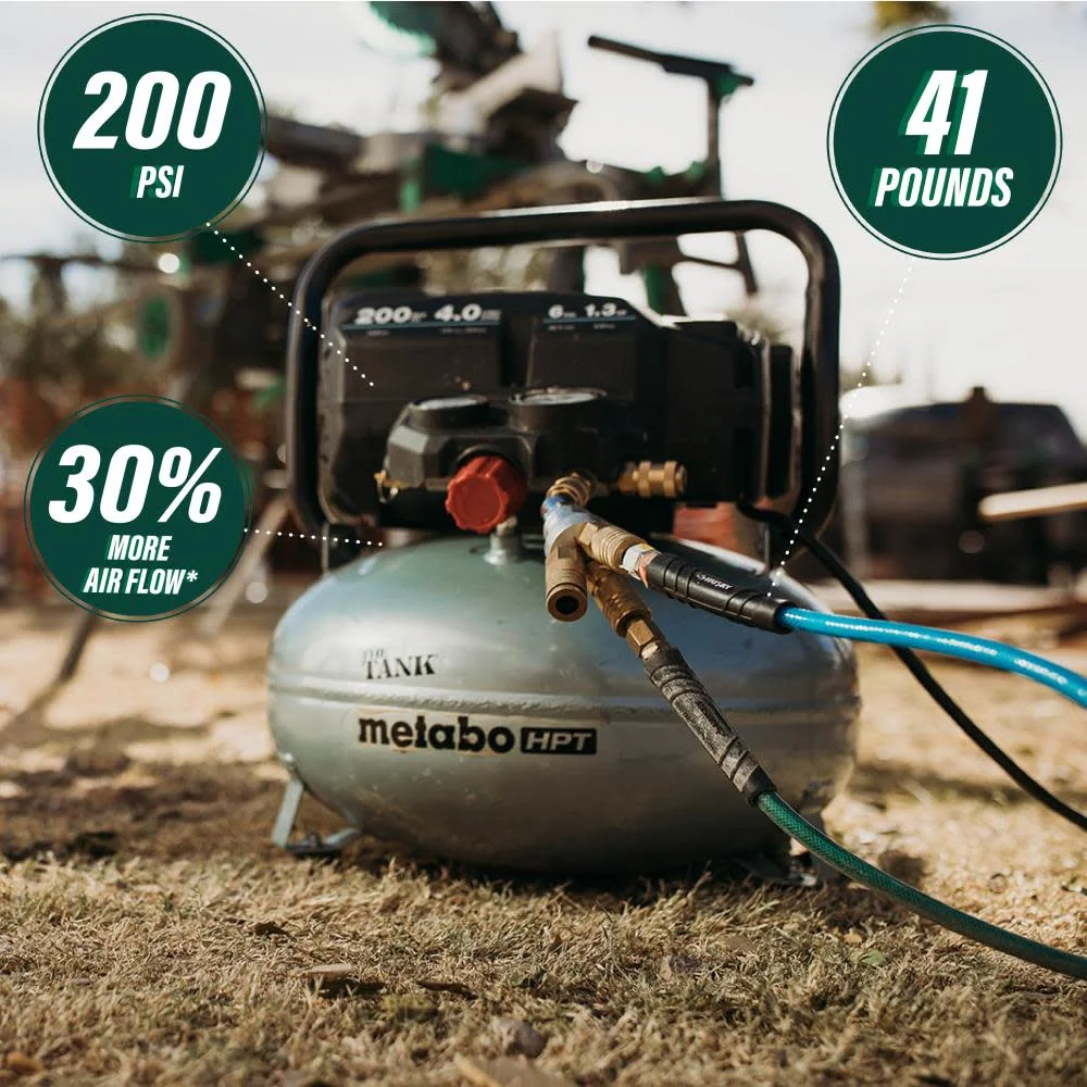 - MORE POWER AND PRESSURE: At 200 PSI, THE TANK from Metabo HPT offers 25% more pressure than a basic pancake air compressor. This portable air compressor is ideal for heavy-duty tasks, providing consistent performance for various pneumatic tools.