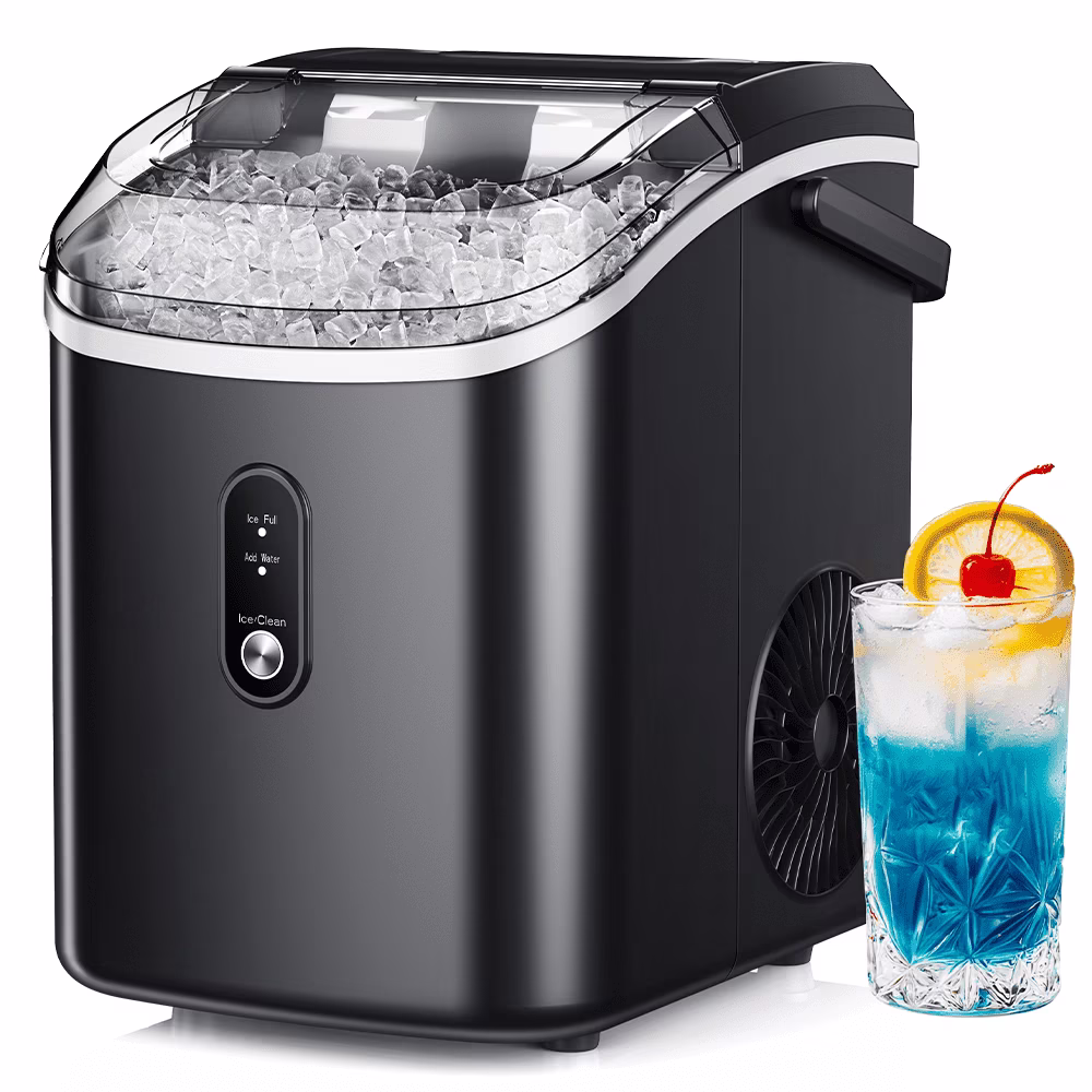 Chewable Nugget Ice:This nugget ice maker produces crunchy, chewable nugget ice �C unlike regular ice! Enjoy its uniquely soft texture that's gentle on teeth and delivers a satisfying chew. The small nugget ice pieces cool drinks faster and more effectively, while their compact size makes them ideal for any container, from tumblers to coolers.