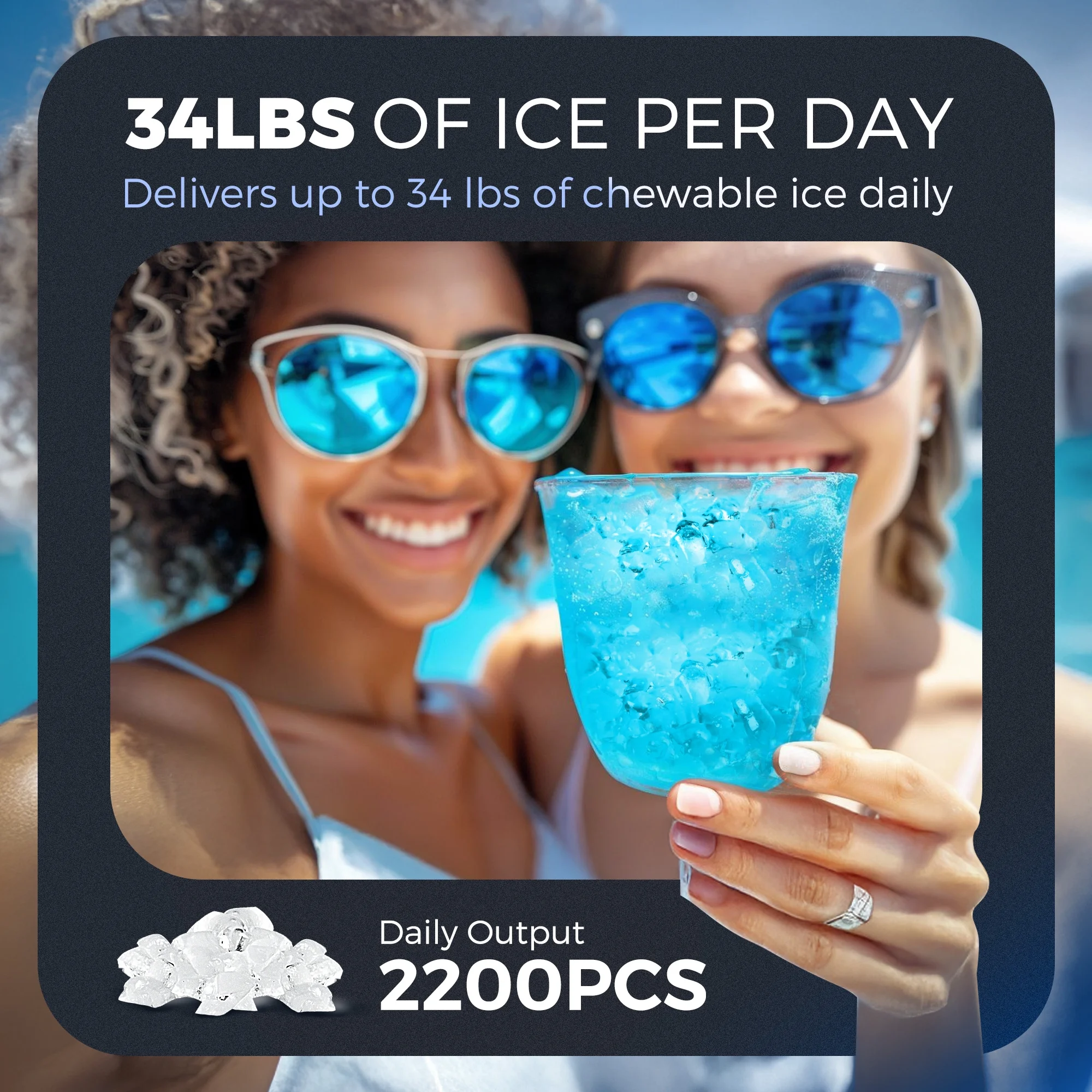Instant Enjoyment: Make pebble ice in just 10 minutes! With a daily output of 34.9 lbs, this ice maker keeps your drinks perfectly chilled with premium textured ice��no beverage is too fine for its crisp, refreshing companion.