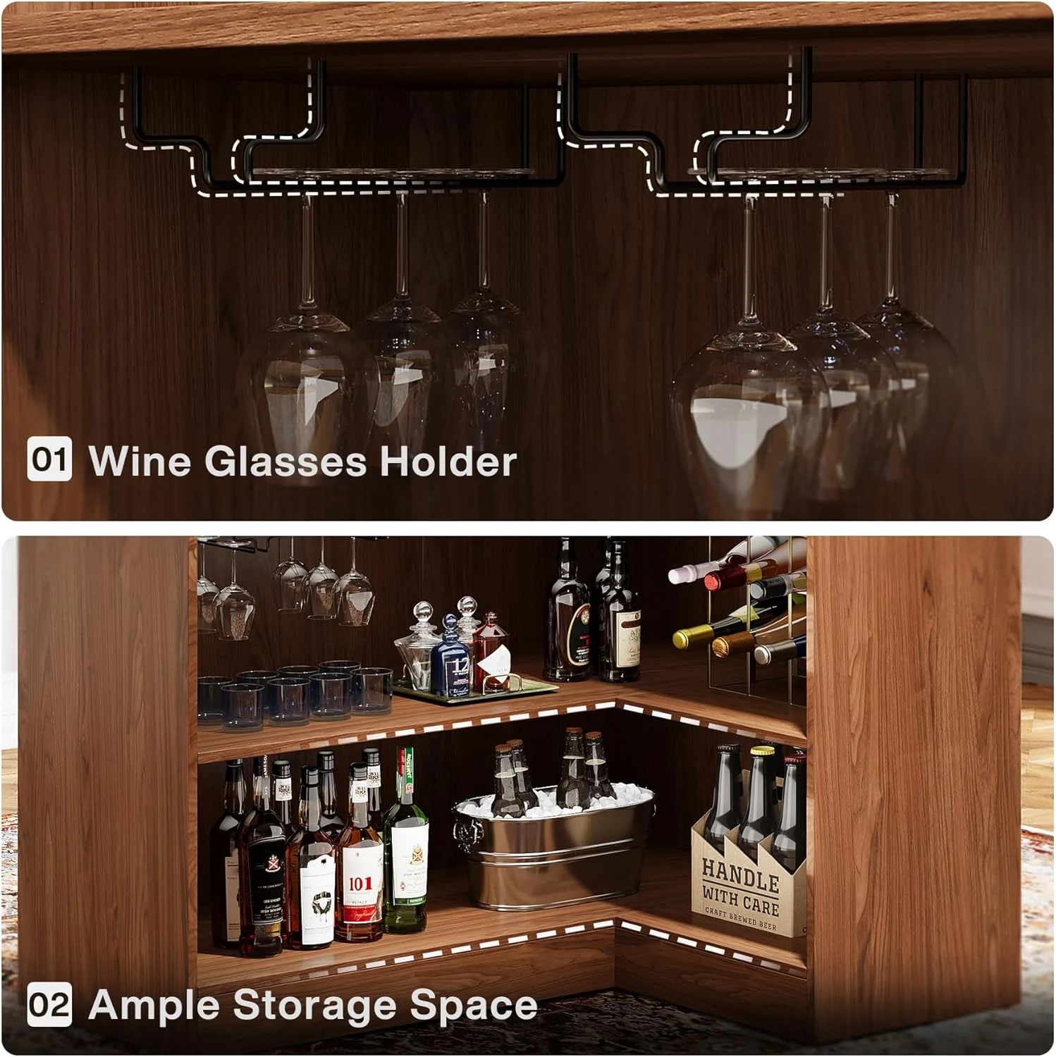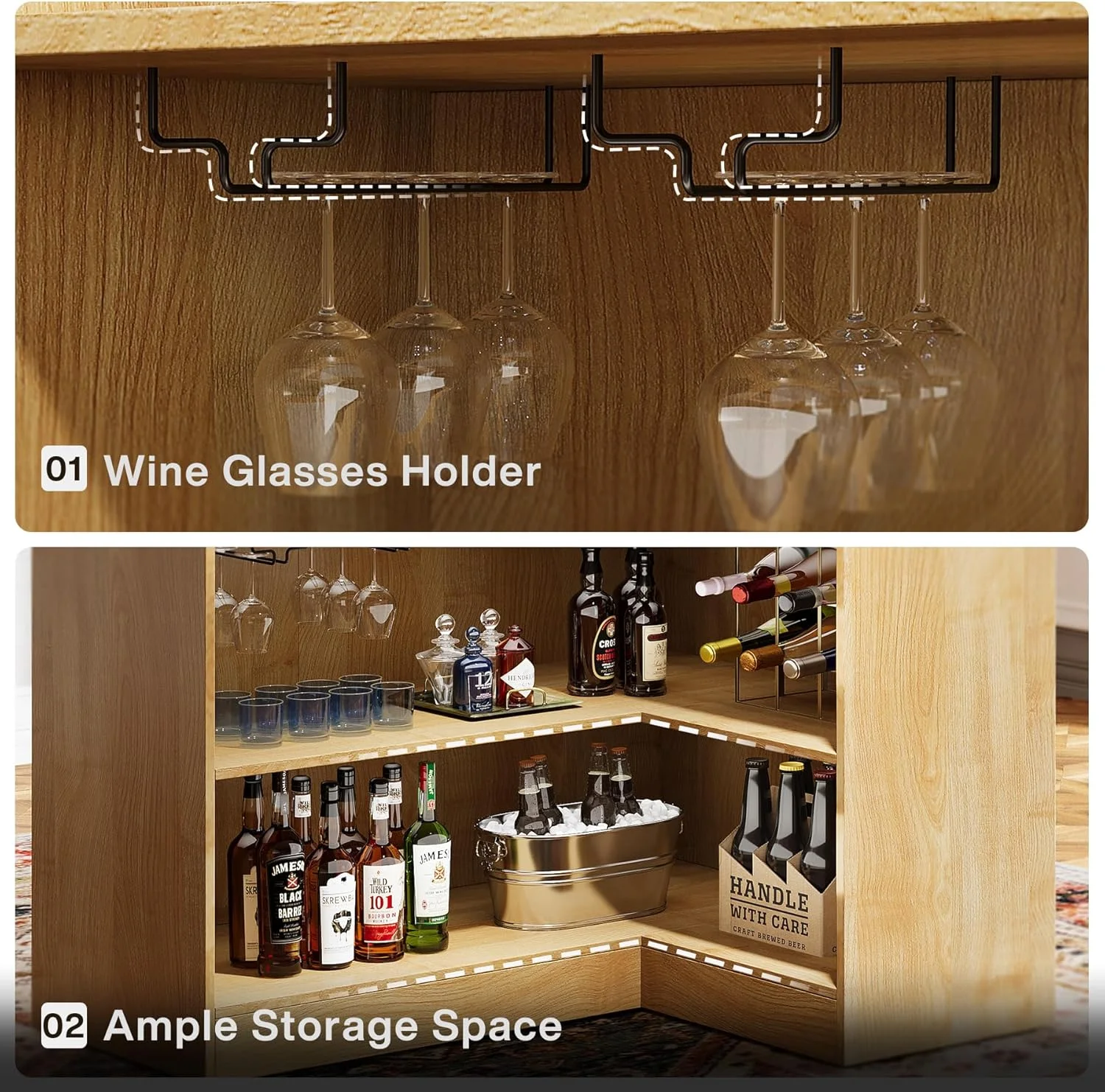 - Smart Storage: 4-tier shelves, 8-glass stemware racks, and a dedicated phone/items shelf for clutter-free organization