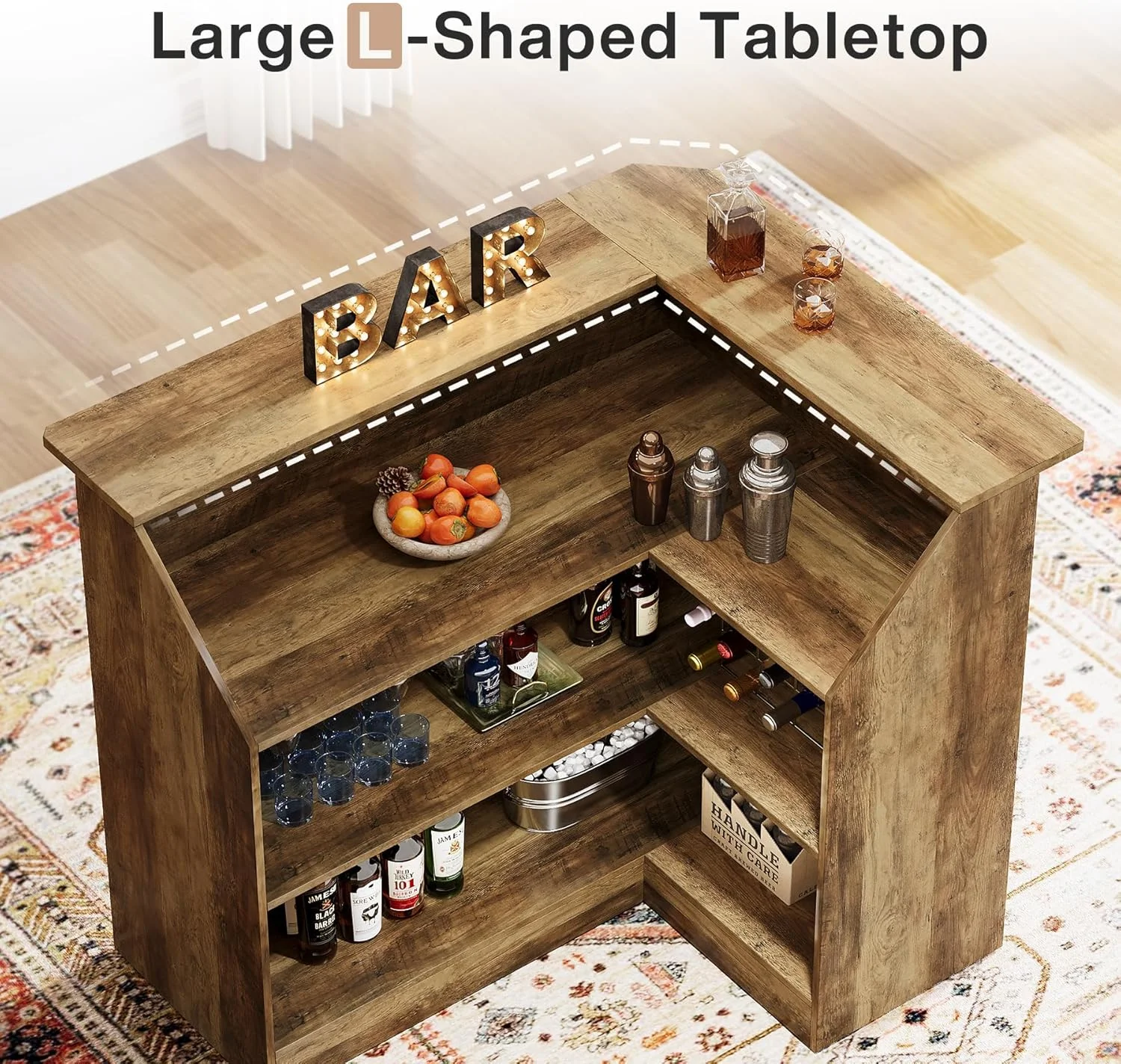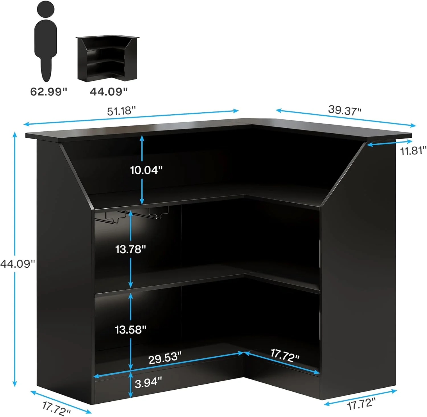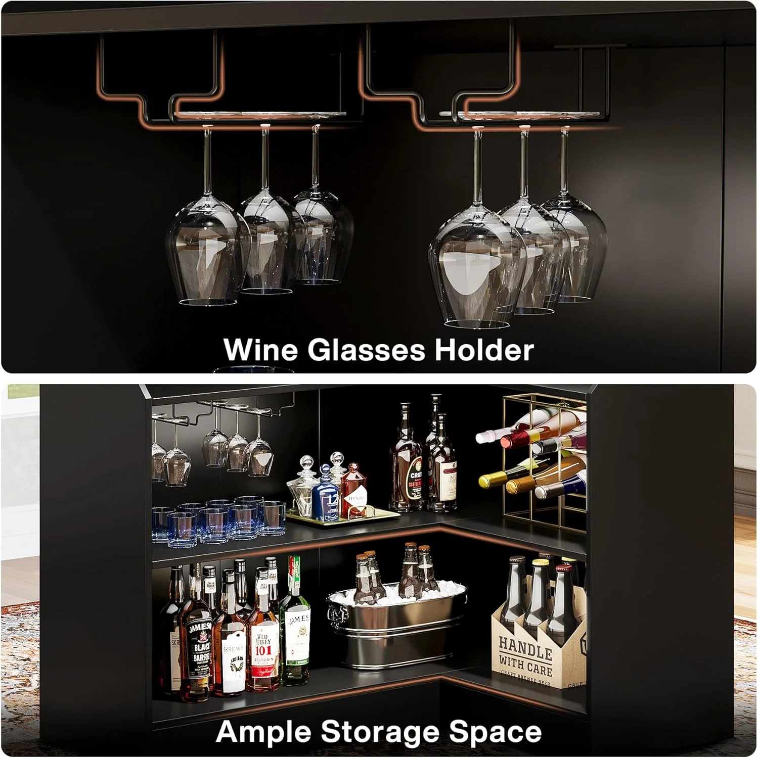 - Sleek Modern Design: L-shaped bar cabinet with glossy black finish, elevating decor while optimizing space efficiency.