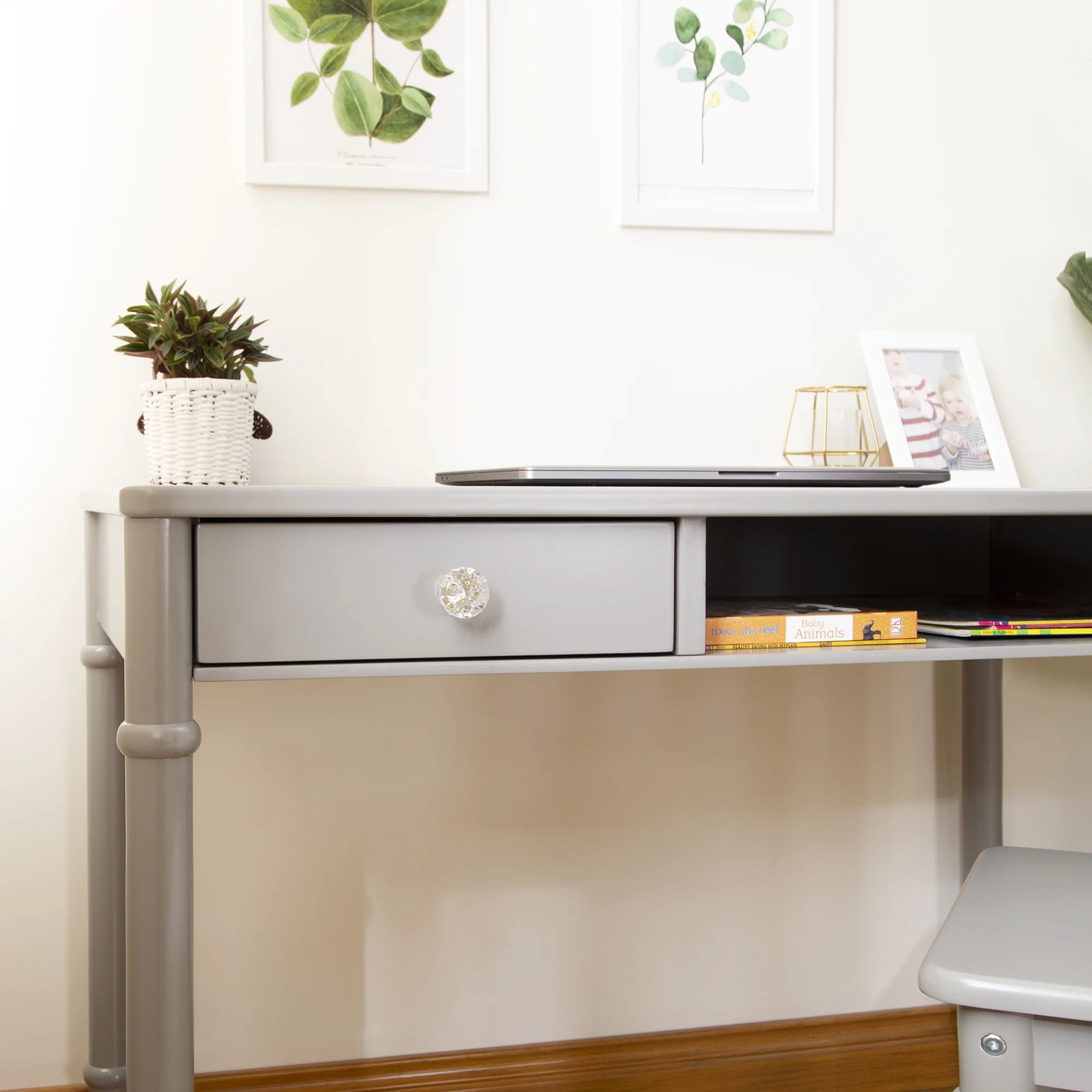 - STURDY DESK AND CHAIR SET: Kid-sized set features rounded edges, unique, jeweled details and stylish legs on desk and chair