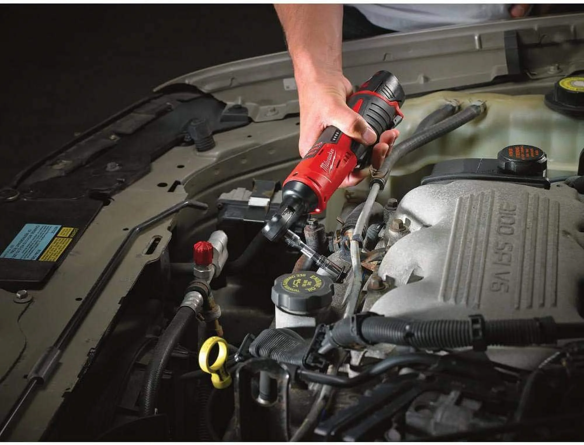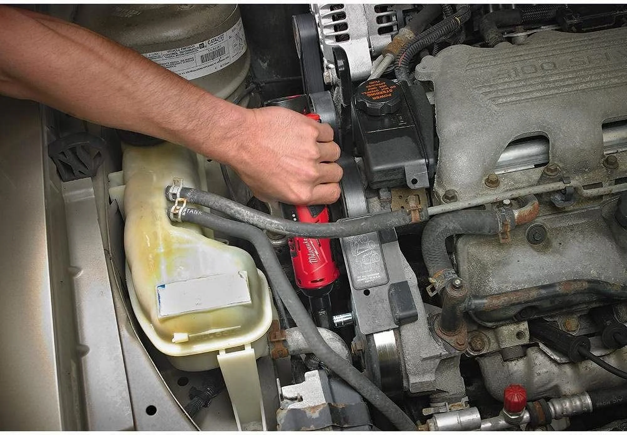 The Milwaukee M12 12-Volt lithium-ion Cordless 3/8 in. Ratchet Kit is ideal for auto mechanics and maintenance and repair professionals looking for maximum performance and productivity in a subcompact cordless tool. The powerful 12-Volt motor produces up to 35 ft. lbs. of torque and has 250 RPM for the power and speed of a pneumatic ratchet without the air hose. Powered by a M12 REDLITHIUM battery pack, reliable and long-lasting power is always at hand to handle a wide range of applications accurately and with ease. A compact in. L and a light 1.9 lbs. the ratchet tool-belt portable and features a 3/4 in. low-profile head design for work in tight spaces and engine bays. Easy to control and durable with a variable-speed metal trigger and reinforced steel housing, this ratchet and kit will provide years of reliable use. Powerful 12-Volt motor delivers up to 35 ft. lbs. of torque Superior fastening speed with 250 RPM to tackle a variety of applications Durable metal variable-speed trigger Compact head for use in tight spaces and engine bays Charger replenishes batteries in as little as 30-minutes for less downtime REDLITHIUM batteries offer superior pack construction, electronics and performance REDLINK plus intelligence provides optimized performance and overload protection using total system communication between tool, battery and charger On-board fuel gauge helps you monitor the charge precisely for less downtime on the job Built-in LED light illuminates work surfaces in dark locations Compatible with all M12 chargers Includes: cordless 3/8 in. lithium-ion ratchet, M12 REDLITHIUM battery, M12 lithium-ion battery charger and carrying case 5-year limited tool , 2-year limited battery Compatible with all M12 batteriesNON FUEL MODEL,Old style NOT FUEL MODEL