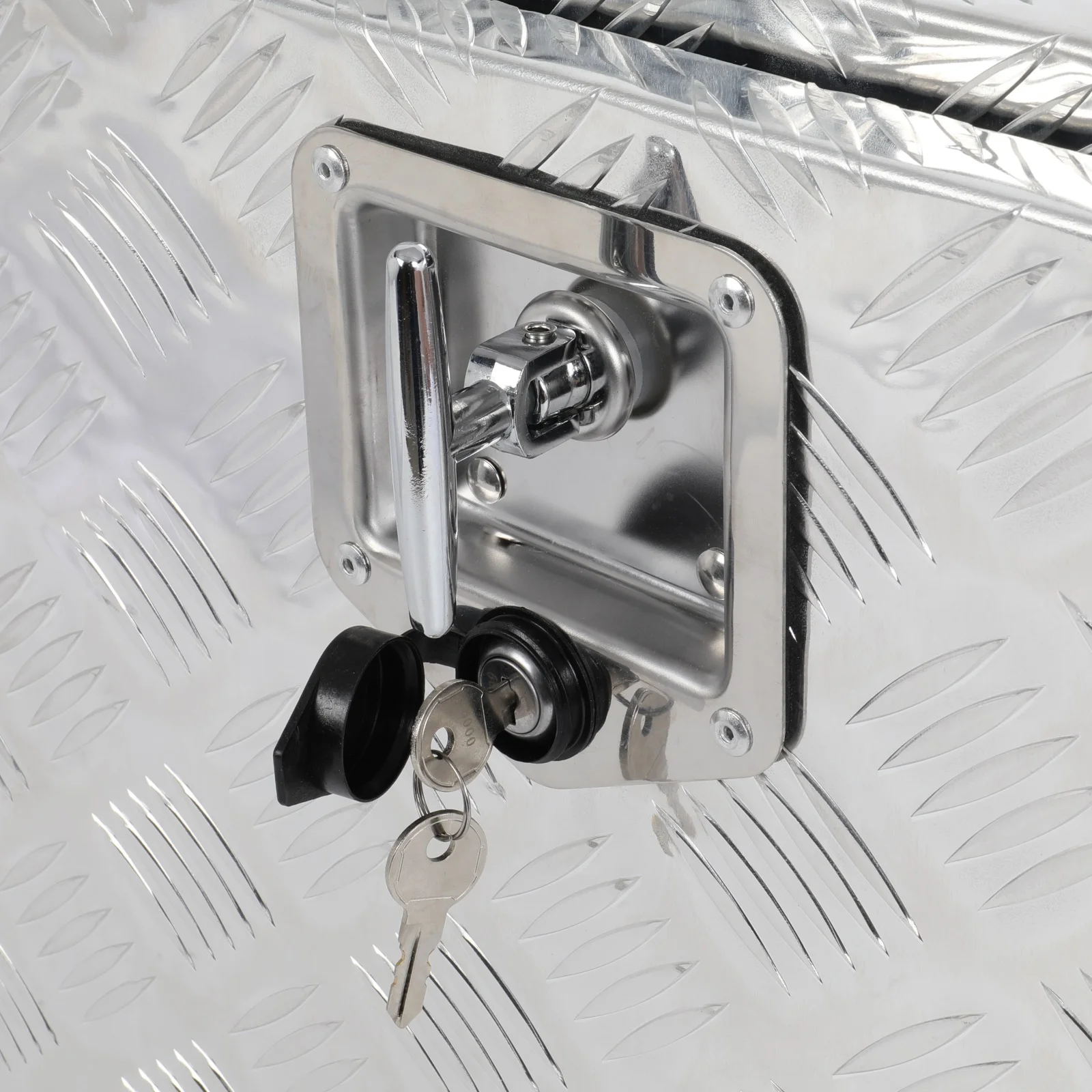 - Design - With handles on both sides, this trailer tool box offers enhanced portability. It also comes equipped with a lock and keys for added security.