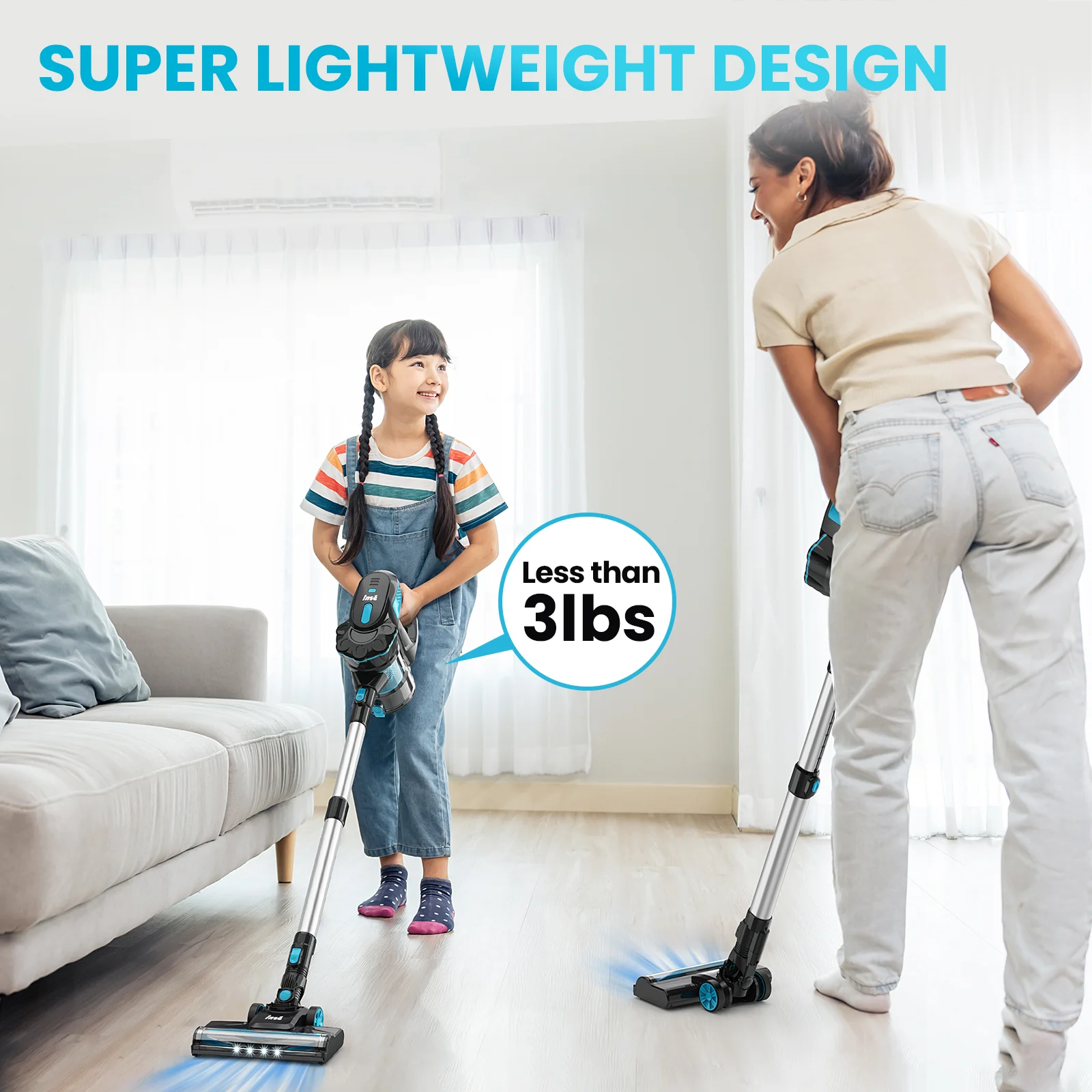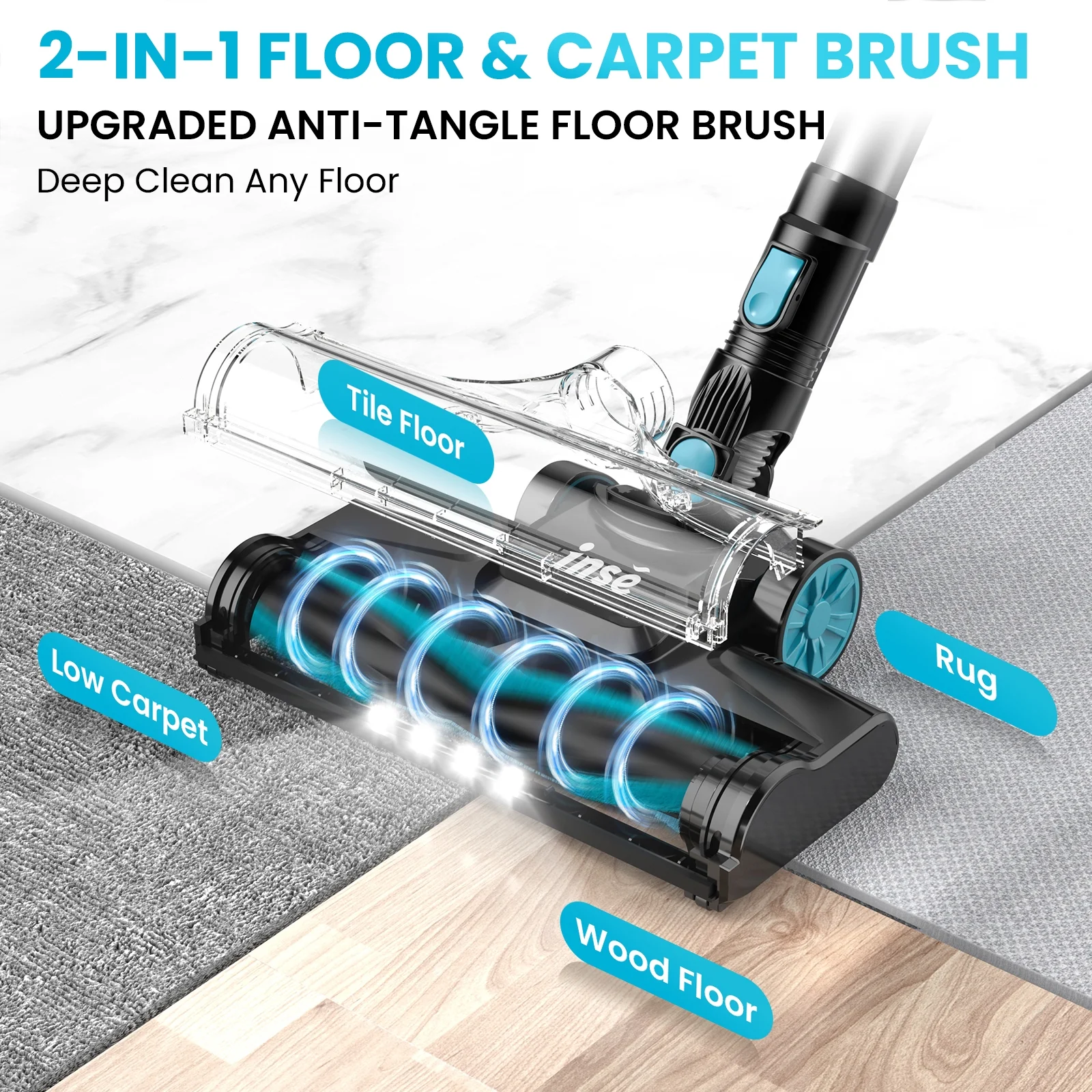 INSE V770 cordless stick vacuum comes with upgraded digital motor with 30% more powerful suction provides superior cleaning performance for everyday messes. Vacuum cleaner offers 45-minute of long-lasting operation, ensuring uninterrupted cleaning throughout entire home, providing a better cleaning experience. A 5-layer filtration system on stick vacuum captures 99% of fine particles and small particles anywhere, releasing clean filtered air and preventing secondary air pollution. Lightweight cordless vacuum allows effortlessly switch between two modes with fingertip control, while LED headlight brush beams illuminates hard-to-see dust and allows for better cleaning and 180�� rotatable floor brush make it easy to maneuver and clean every corner or under furniture. The specially designed self-standing allows safety placement on floor for a short break, Upgraded v-shaped anti-tangle roller brush effectively solves the problem of hair tangling that is common with traditional vacuum cleaners. Equipped with a crevice tool and a 2-in-1 upholstery brush you can easily complete your daily cleaning needs on multiple surface: hardwood floor, carpet, pet hair etc.
