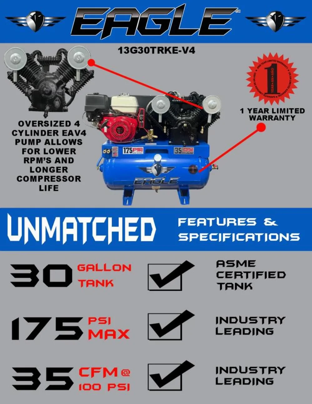 - Efficient heat removal from fly wheel for cooler running and longer life