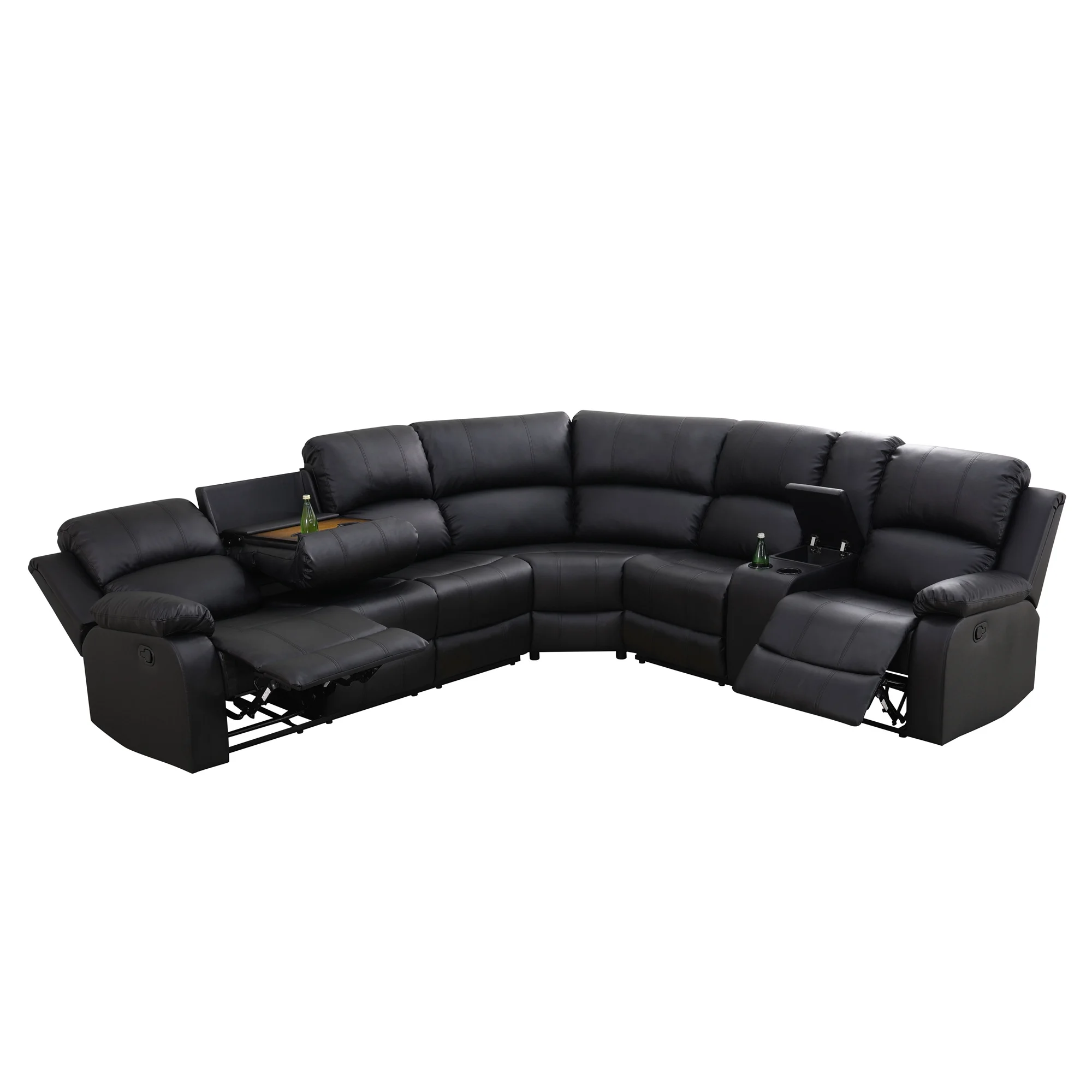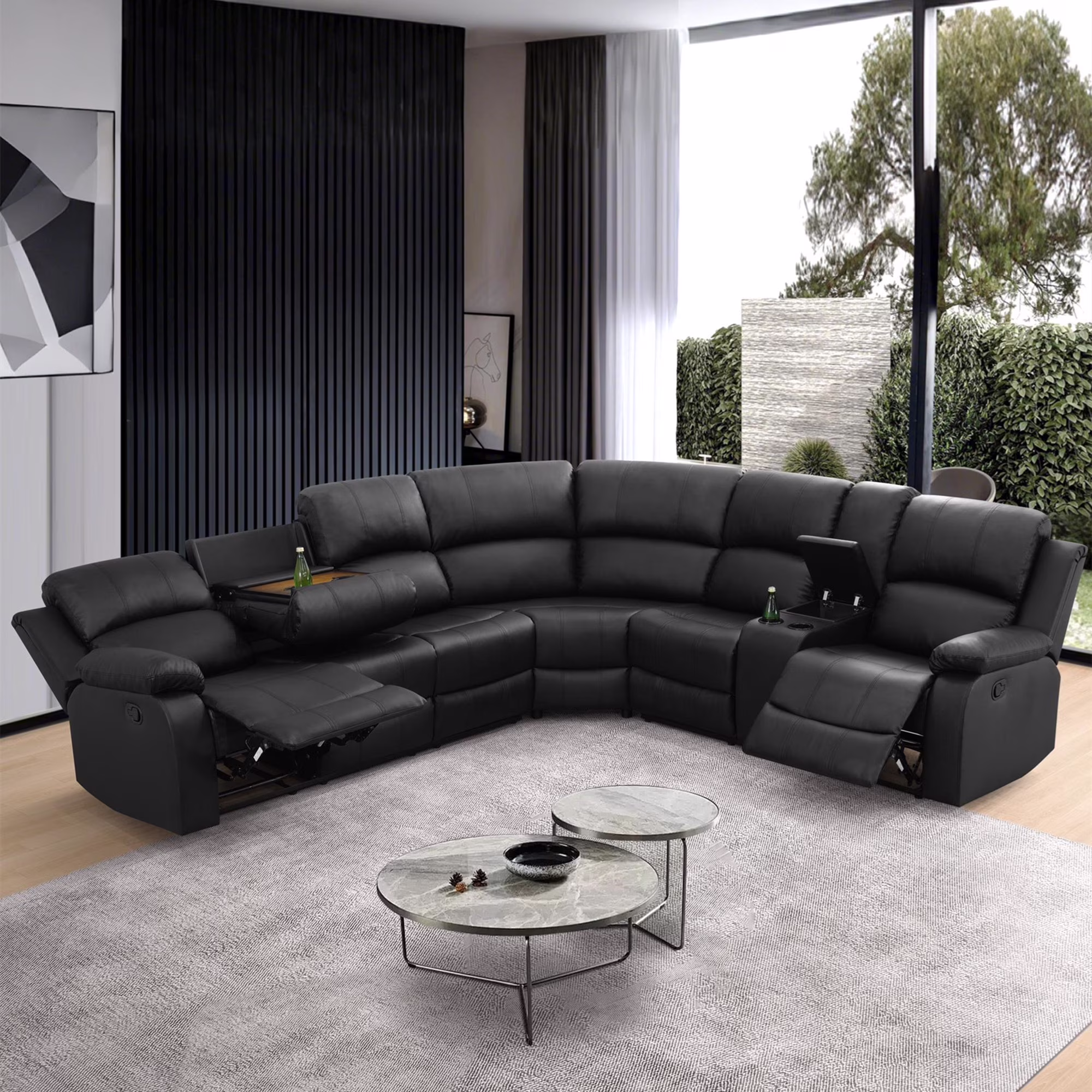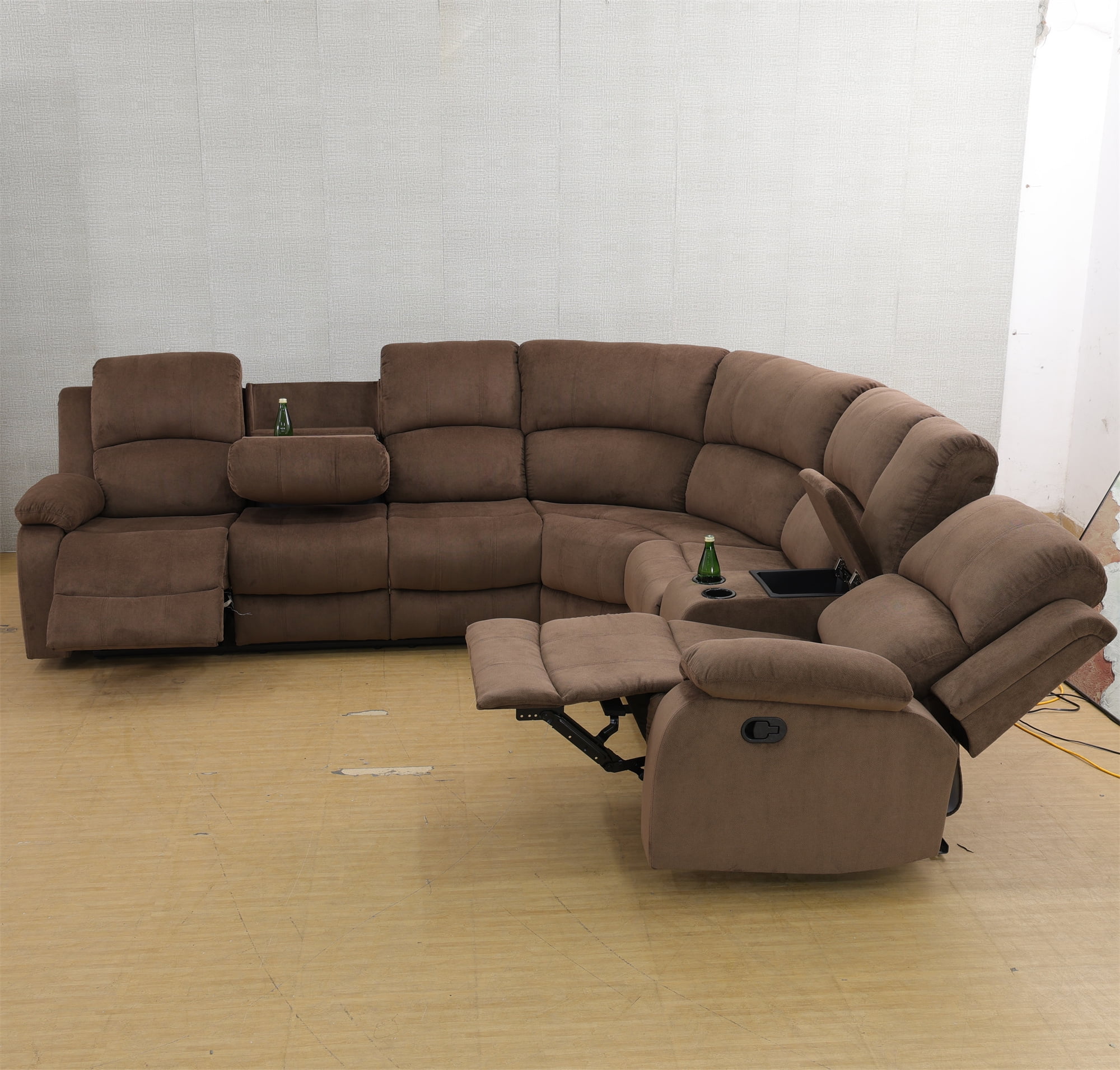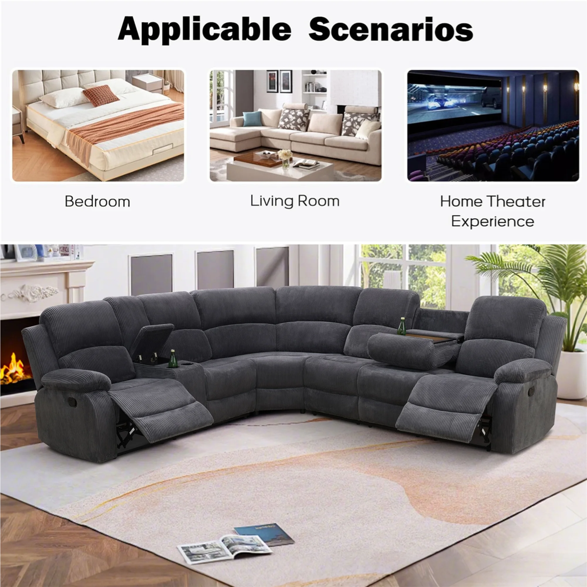 - INTIMATE DESIGN BRINGS YOU MORE - The reclining loveseat has dual cupholders in the middle and a middle storage console for storing sundries such as remotes, books, etc., greatly enhancing recliner space utilization. The 3 seater recliner sofa has a flip down table, which is the backrest of the middle seat, containing dual cup holders to hold coffee, drinks as well as books for enjoying your leisure time.