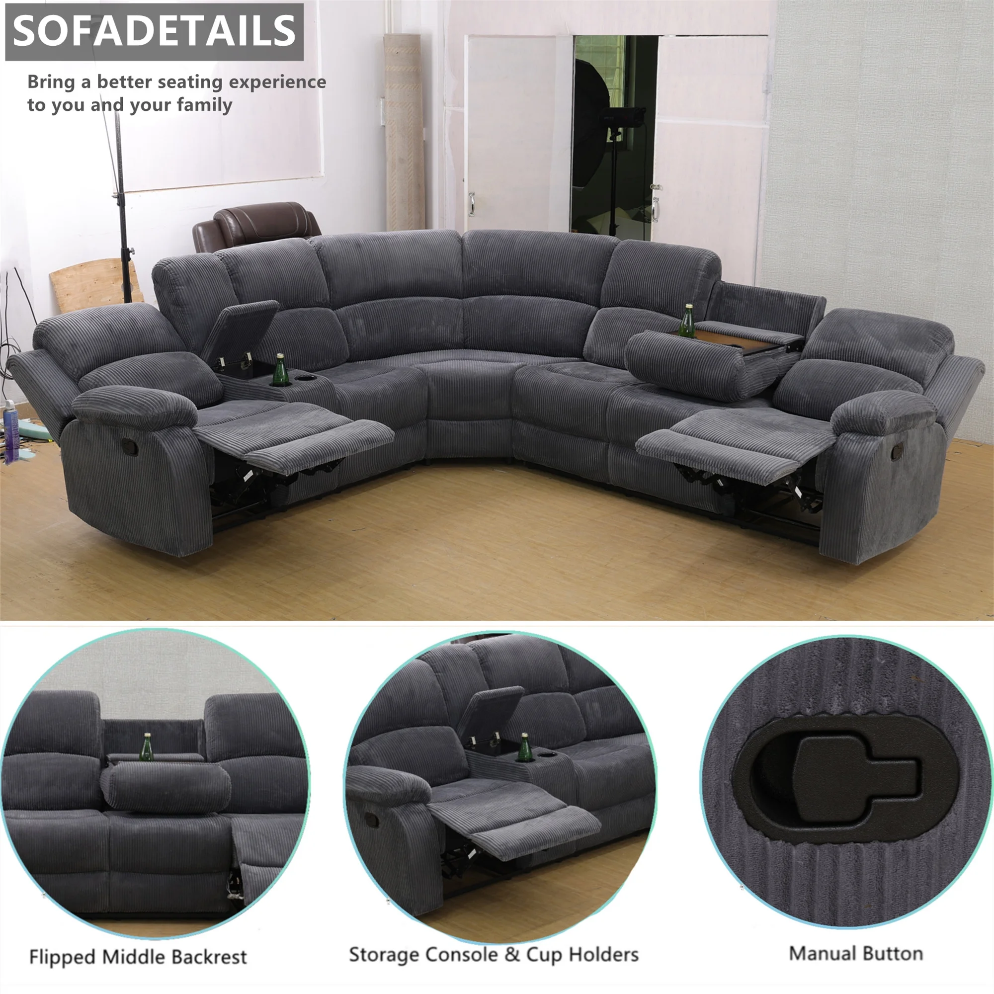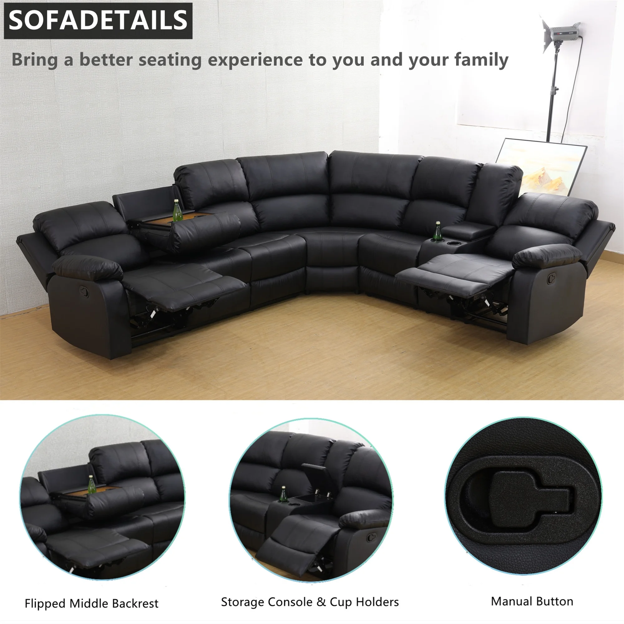 - MANUAL RECLINING MECHANISM - When you want to recline, gently pull the switch on the side of the reclining sofa and the footrest will pop out. Use the strength of your back to lean back, the backrest can be adjusted between 90�� to 150�� allowing you to choose your favorite and most comfortable position to relax.